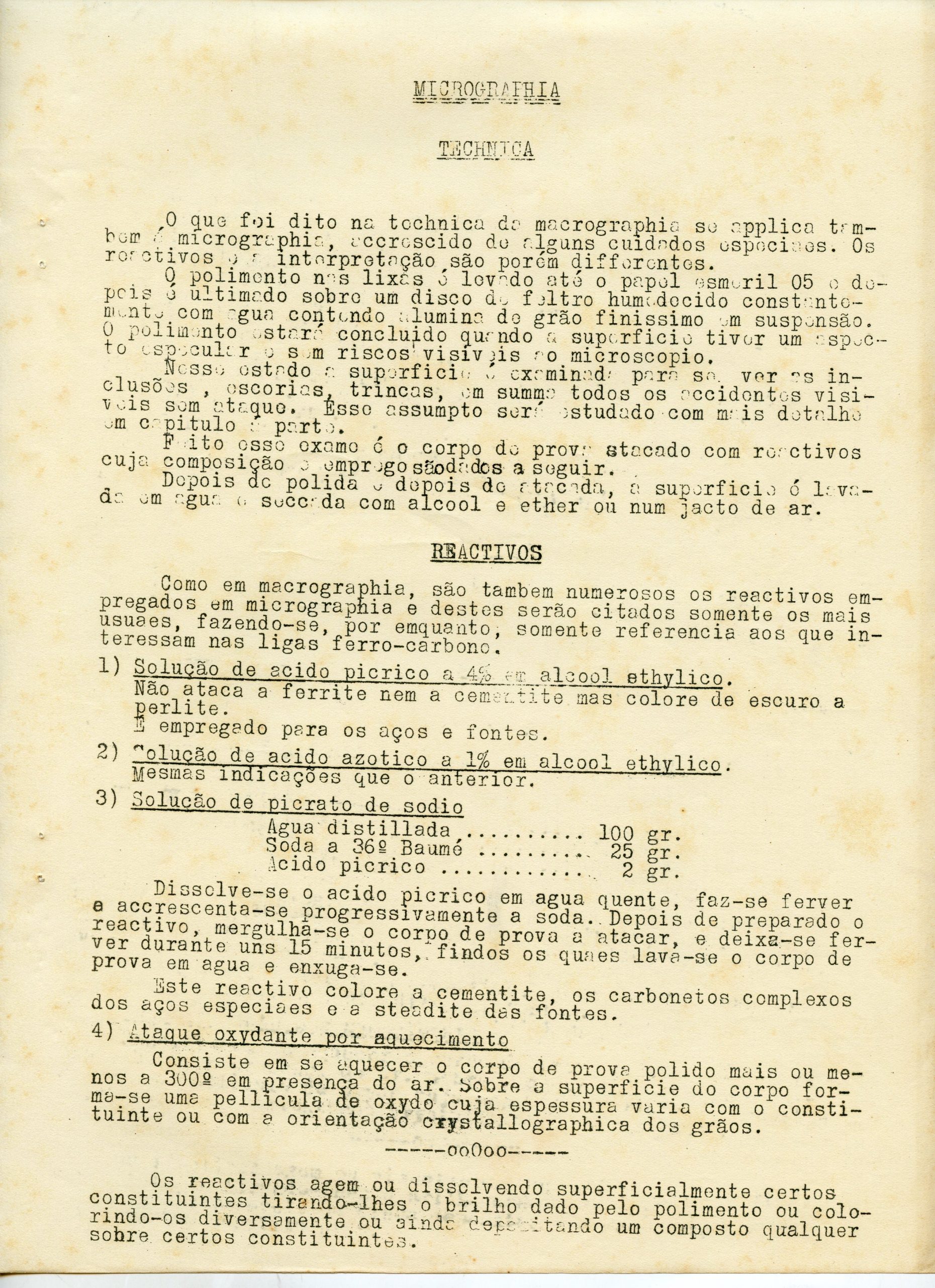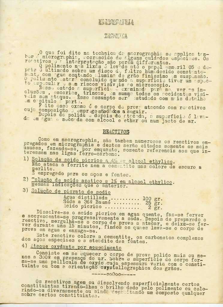 Fascículo " Noções elementares para o exercício prático de micrografia: aços comuns esfriados lentamente".