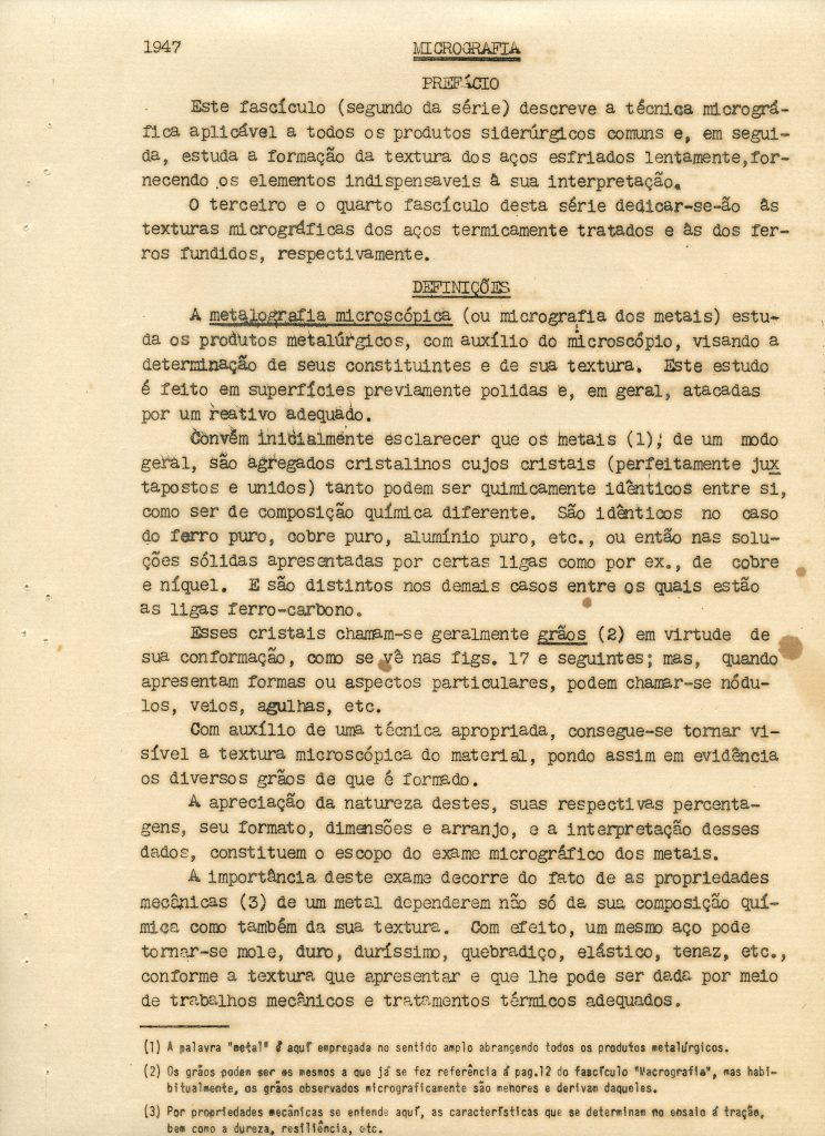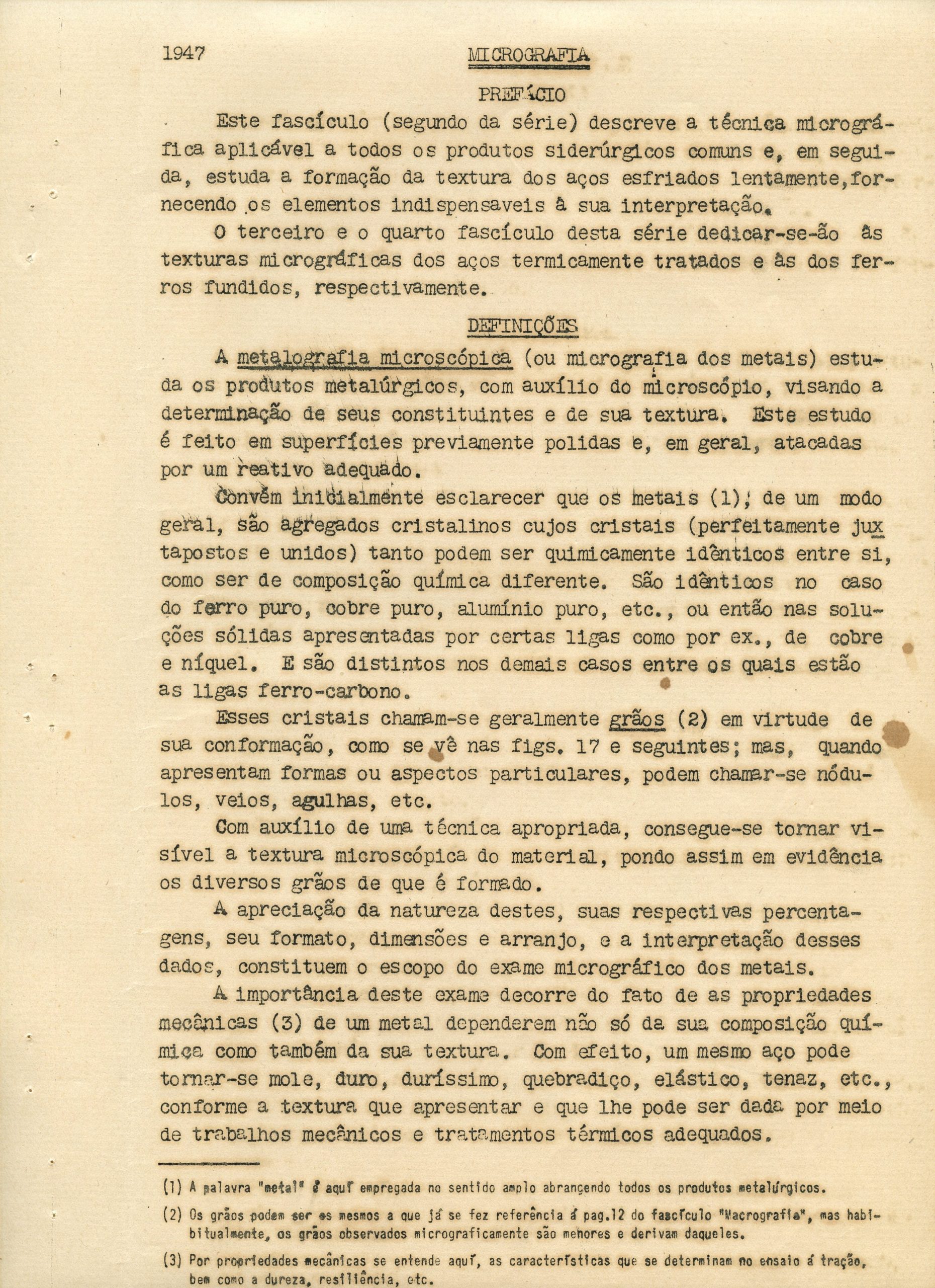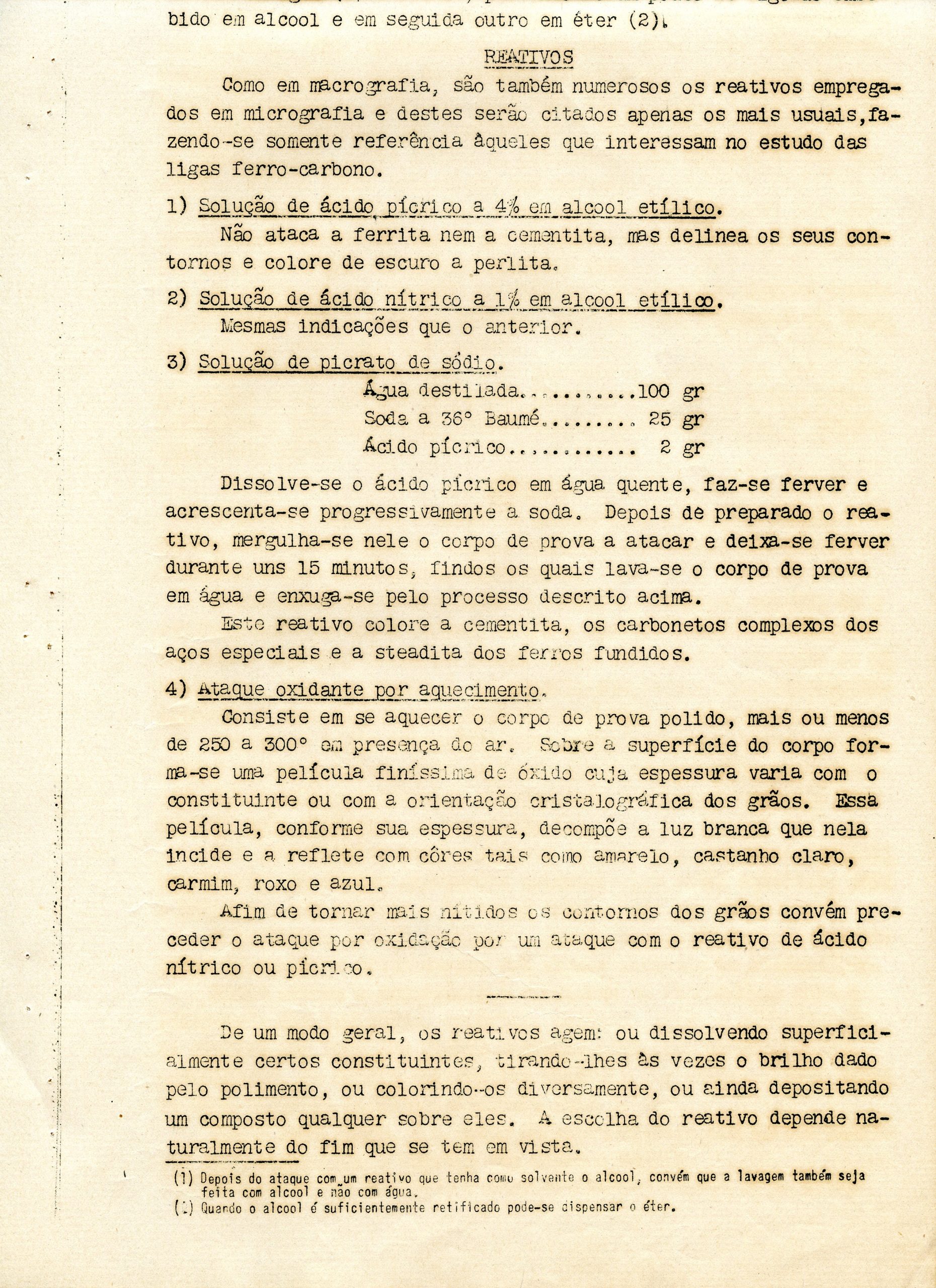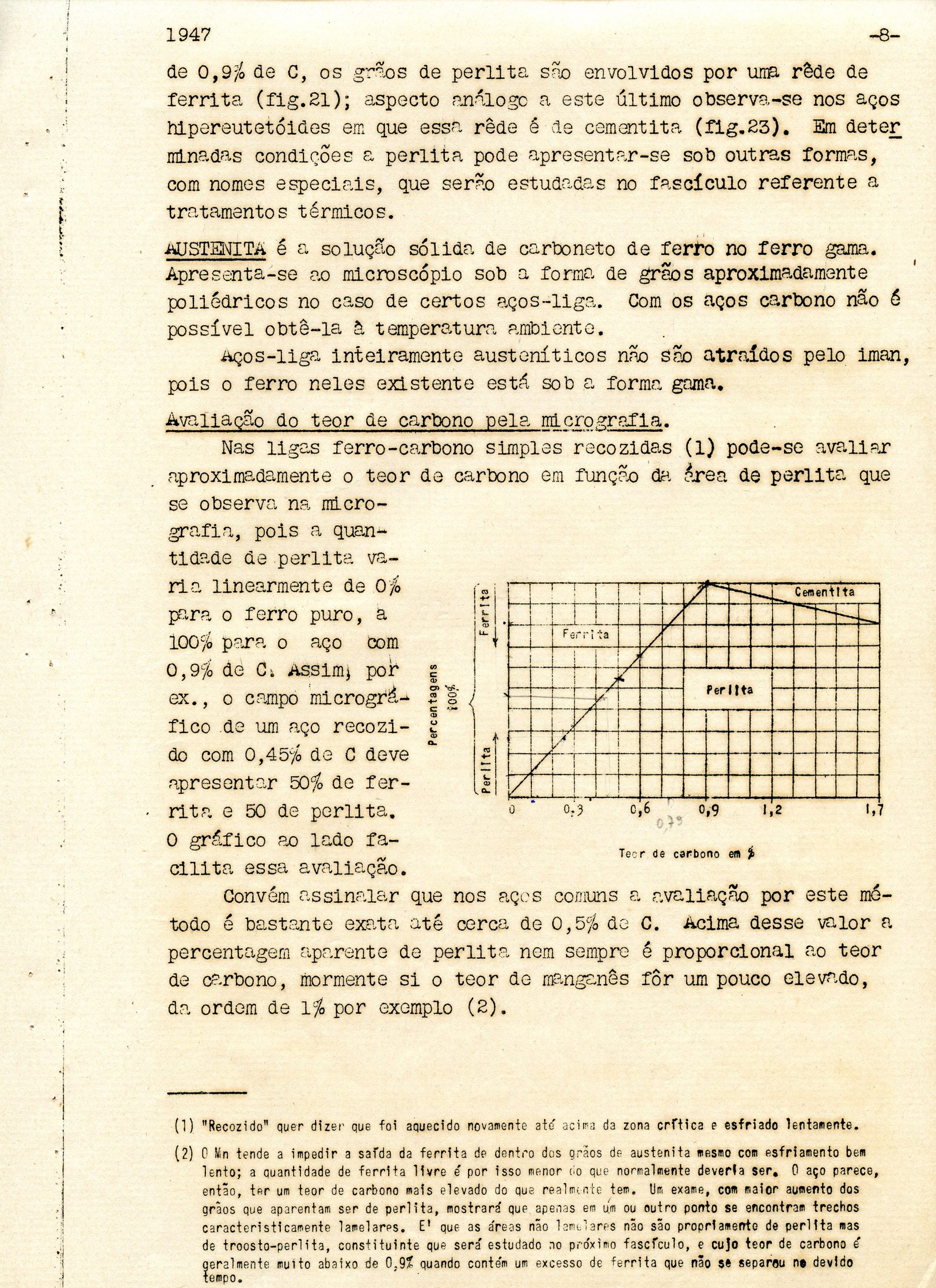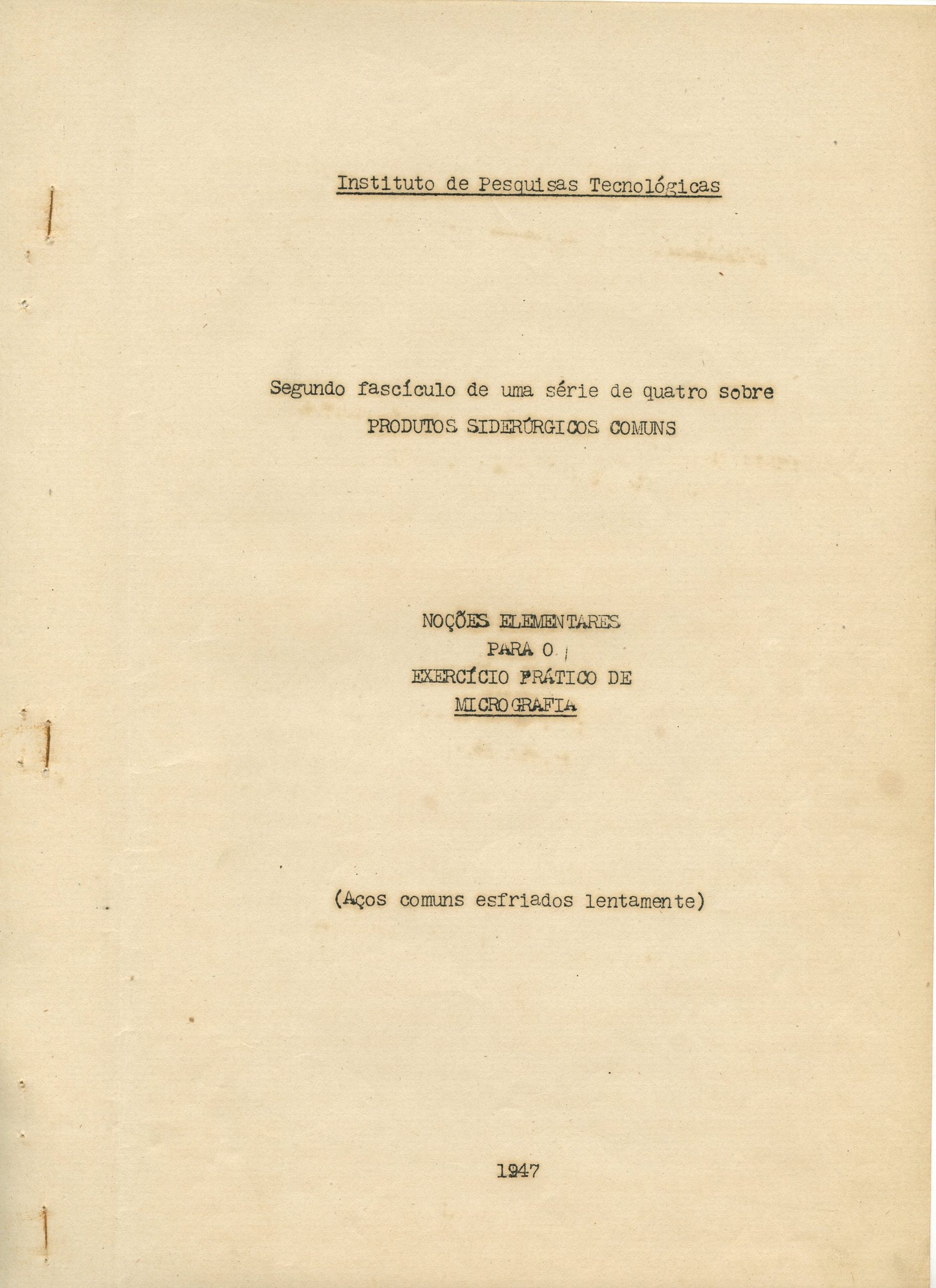 Fascículo sobre Produtos siderúrgicos comuns. Noções elementares para o exercício prático de micrografia: aços comuns esfriados lentamente. Segundo de uma série de quatro fascículos.