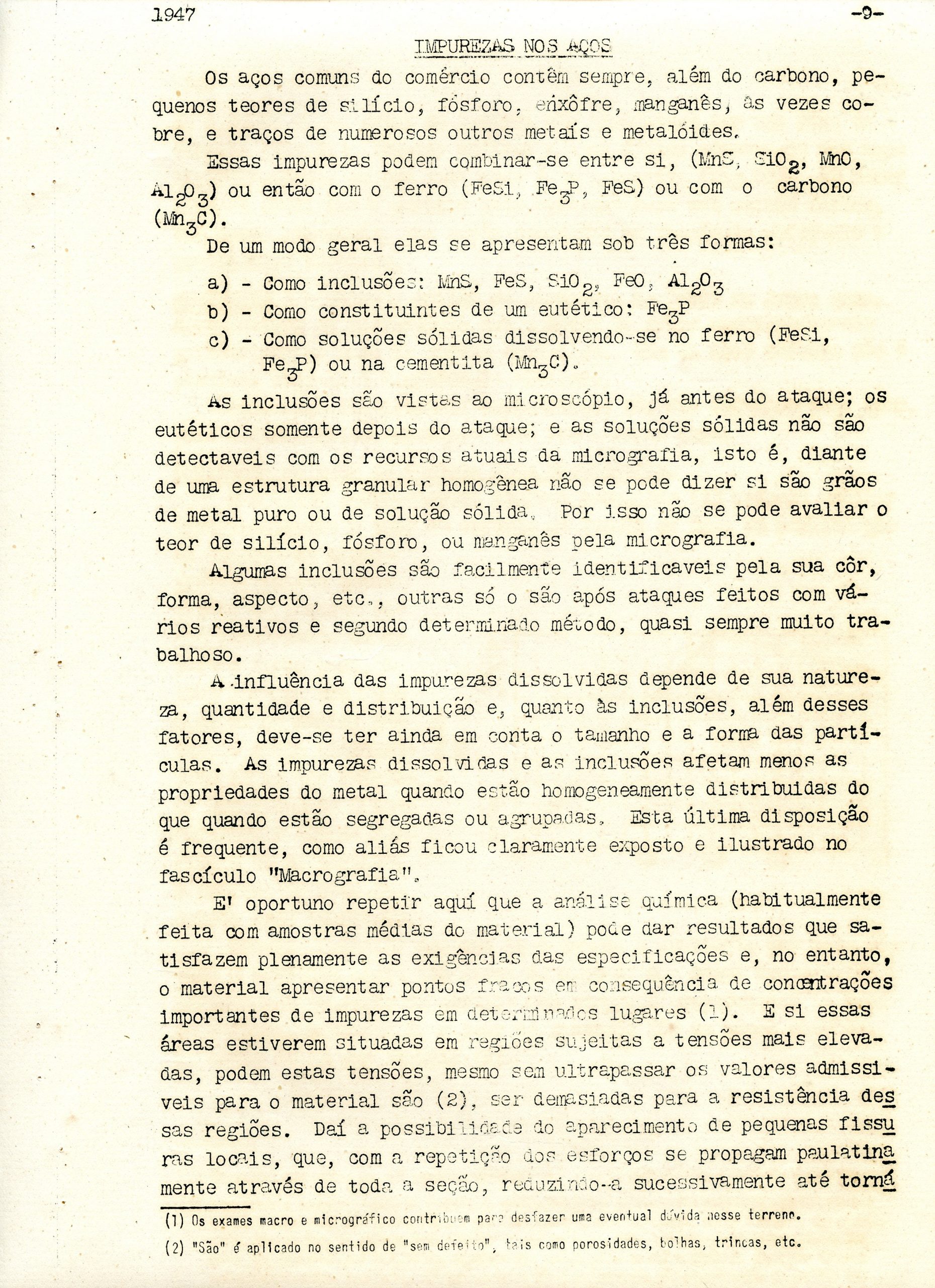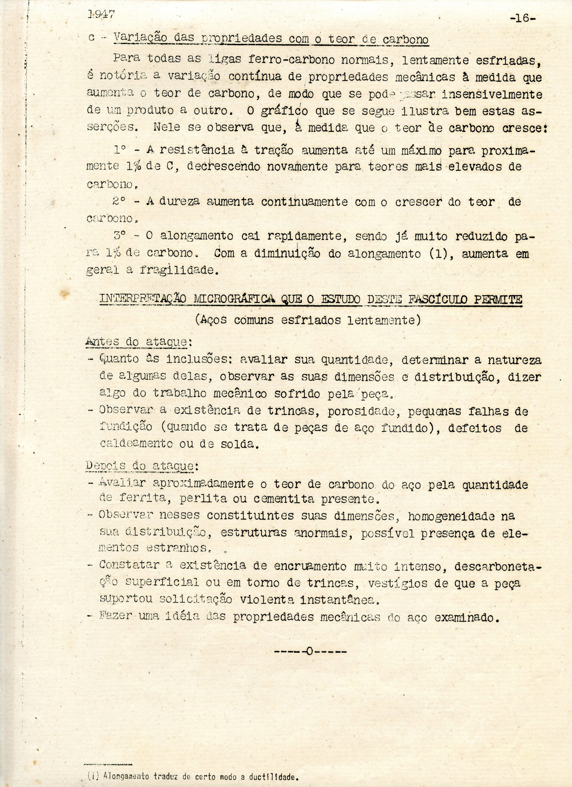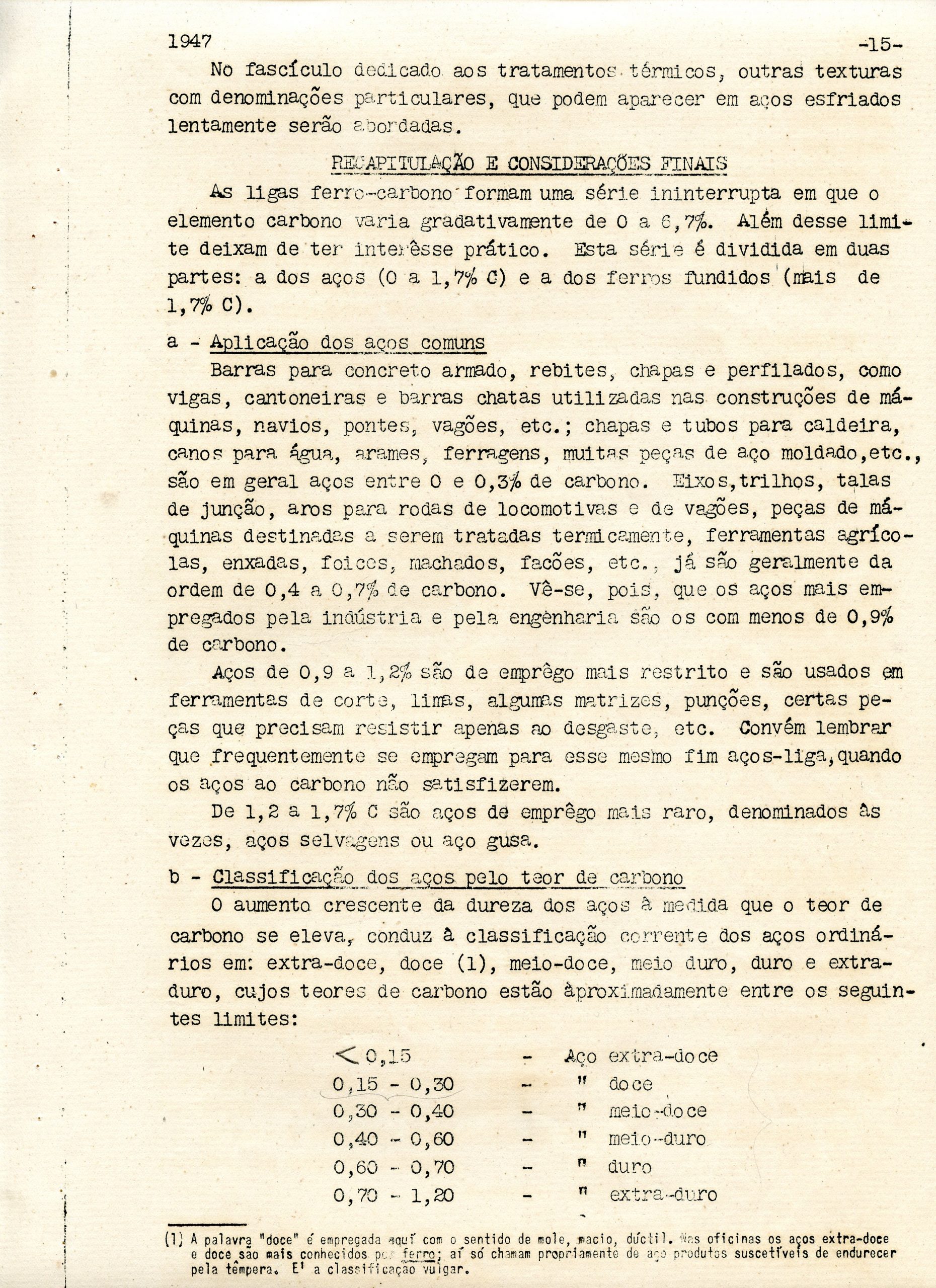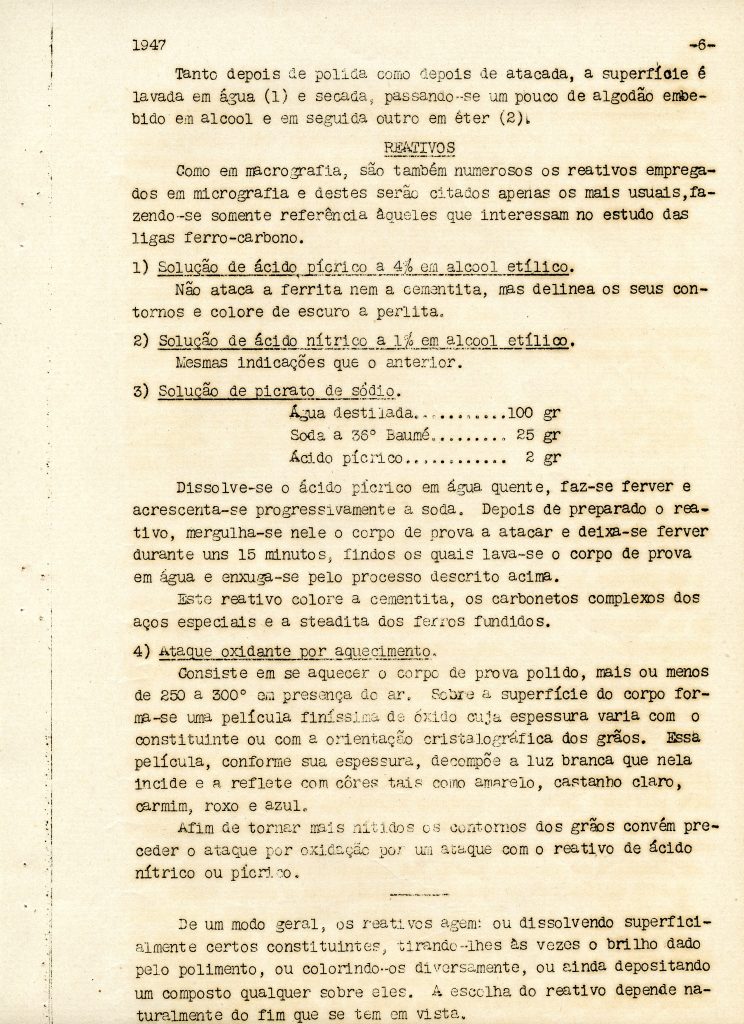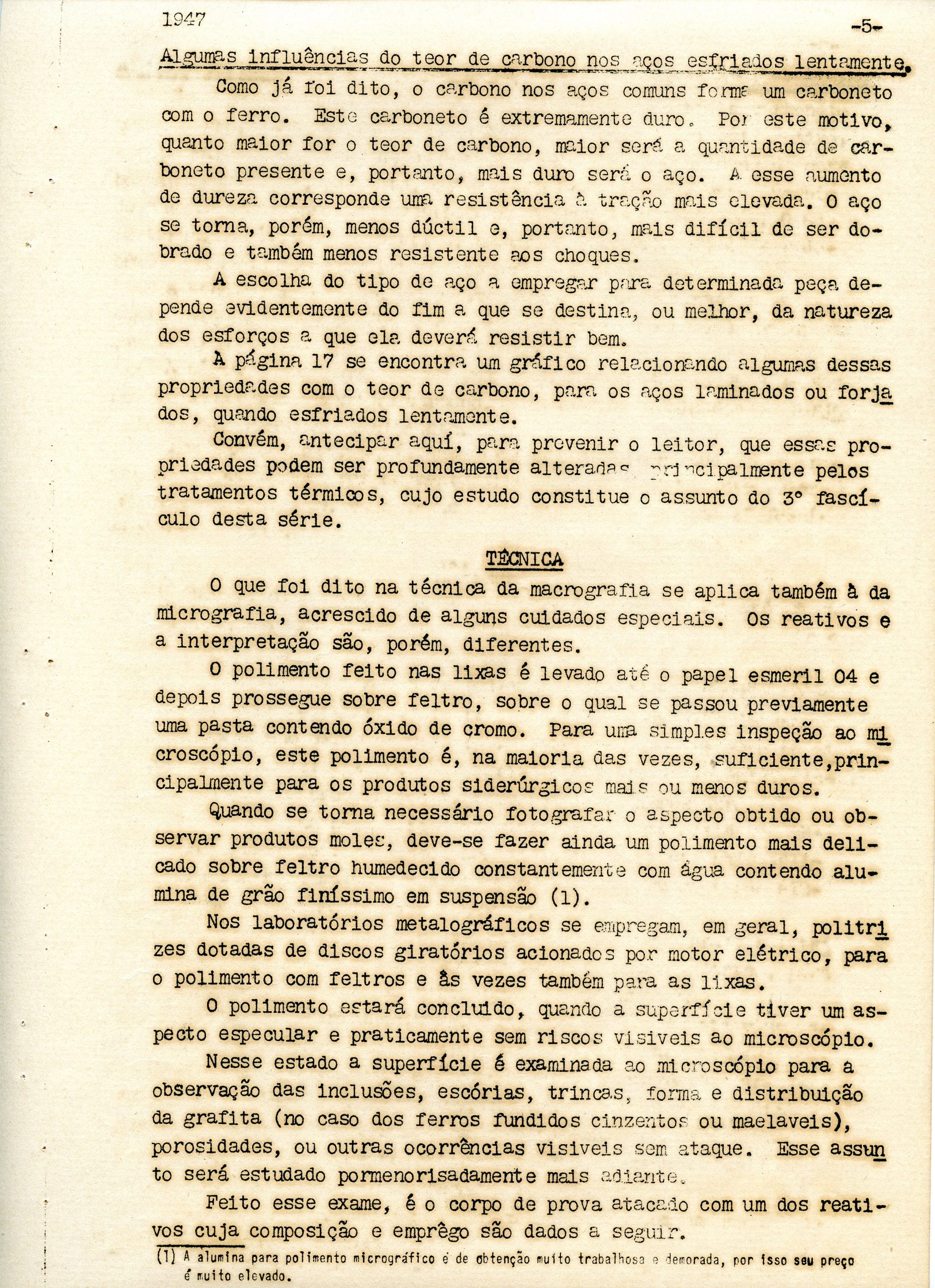 Fascículo sobre Produtos siderúrgicos comuns. Noções elementares para o exercício prático de micrografia: aços comuns esfriados lentamente. Segundo de uma série de quatro fascículos.