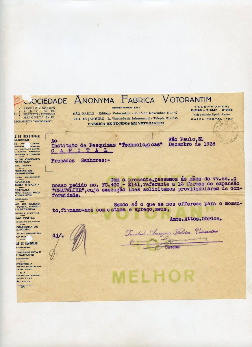Home Acervo Histórico do Instituto de Pesquisas Tecnológicas Carta