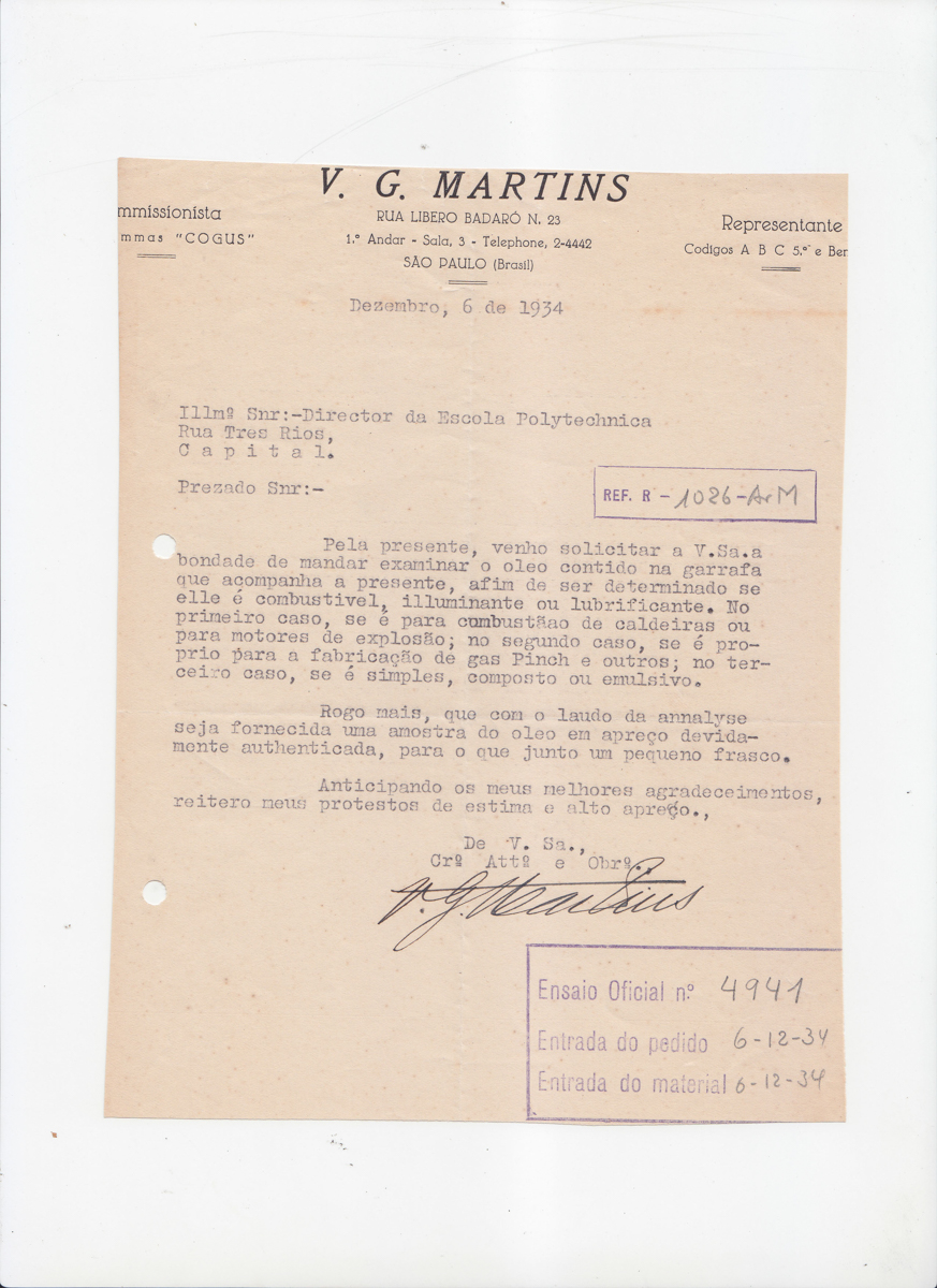 Documentos 01.001.0115.0017 Baixar ApresentaçãoNúmero de registro01.001.0115.0017ConteúdoFuncional; V.G. Martins; solicitação de ensaioGrupoMemória InstitucionalSubgrupoMemória da ciênciaSérieDossiêsSuportePapelGêneroTextualData[06/12/1934]Nível de descriçãoIndividual Metadados TipologiaCartaTécnica de registroImpressão | ManuscritoFormatoFolhaQuantidade de documentosA4, 1 folhaNúmero de Itens do conjunto001Materialpapel de cartaIdiomaPortuguêsProcedênciaMemória Histórica IPT Conservação Estado de conservaçãoBomOutros aspectos físicosApresenta dobrasAcondicionamentoCaixa Filifold | Papel glassine Item anteriorCarta Próximo itemCarta
