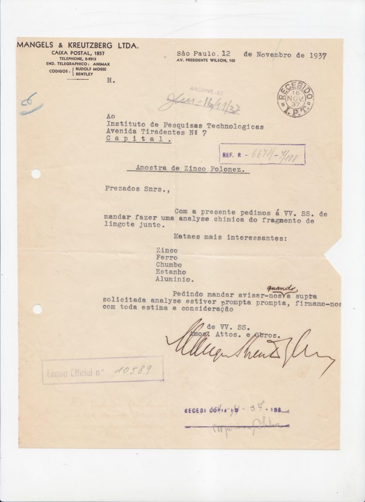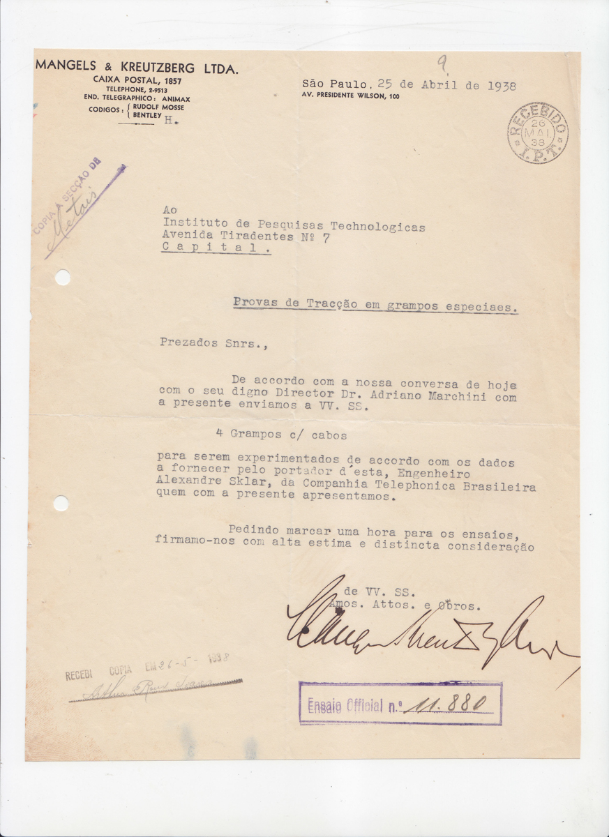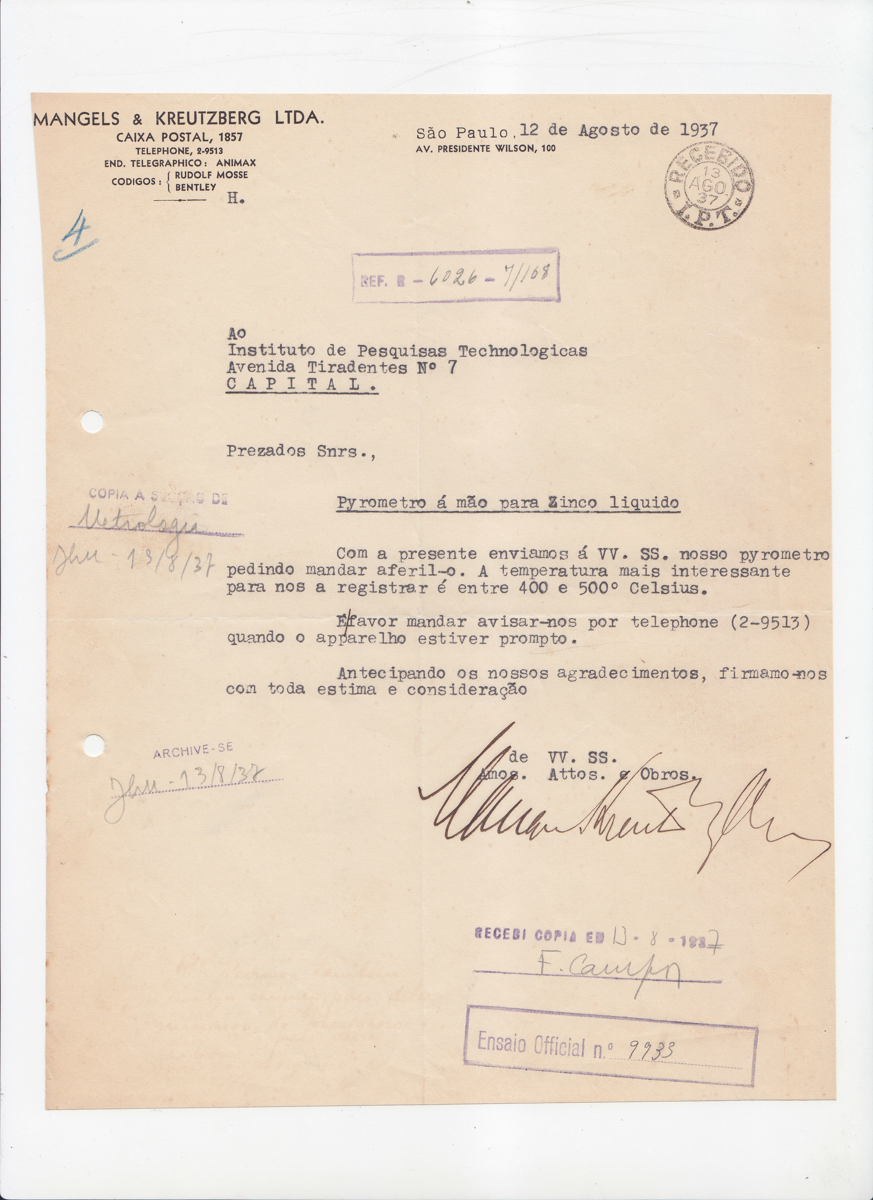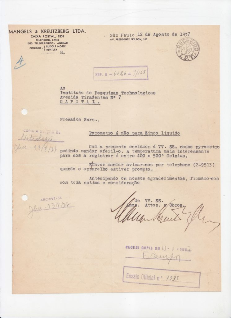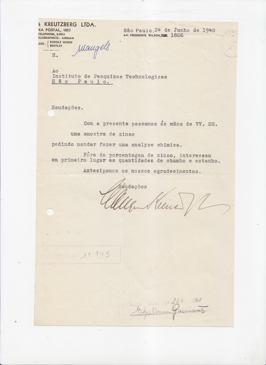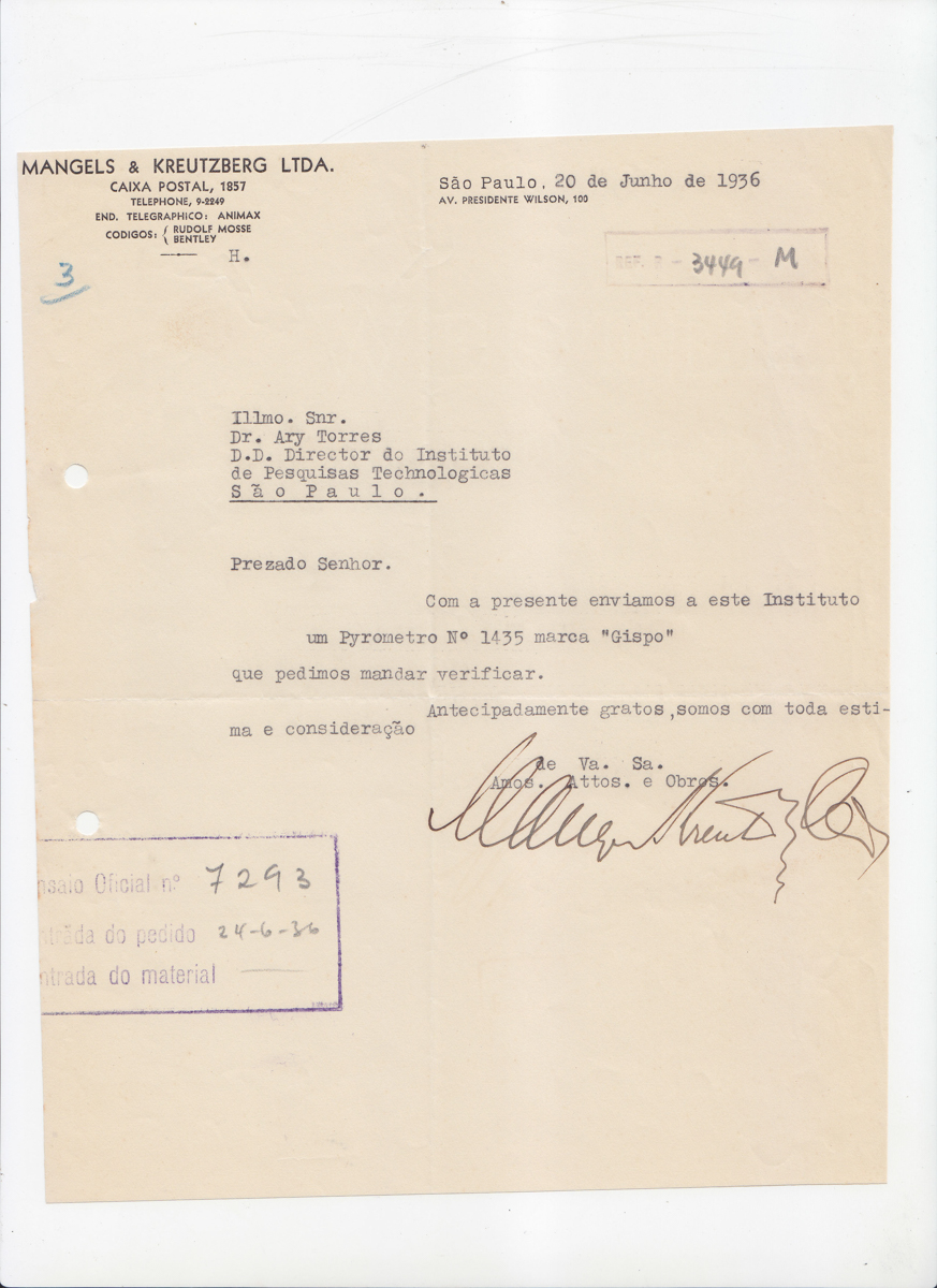 Home Acervo Histórico do Instituto de Pesquisas Tecnológicas Carta