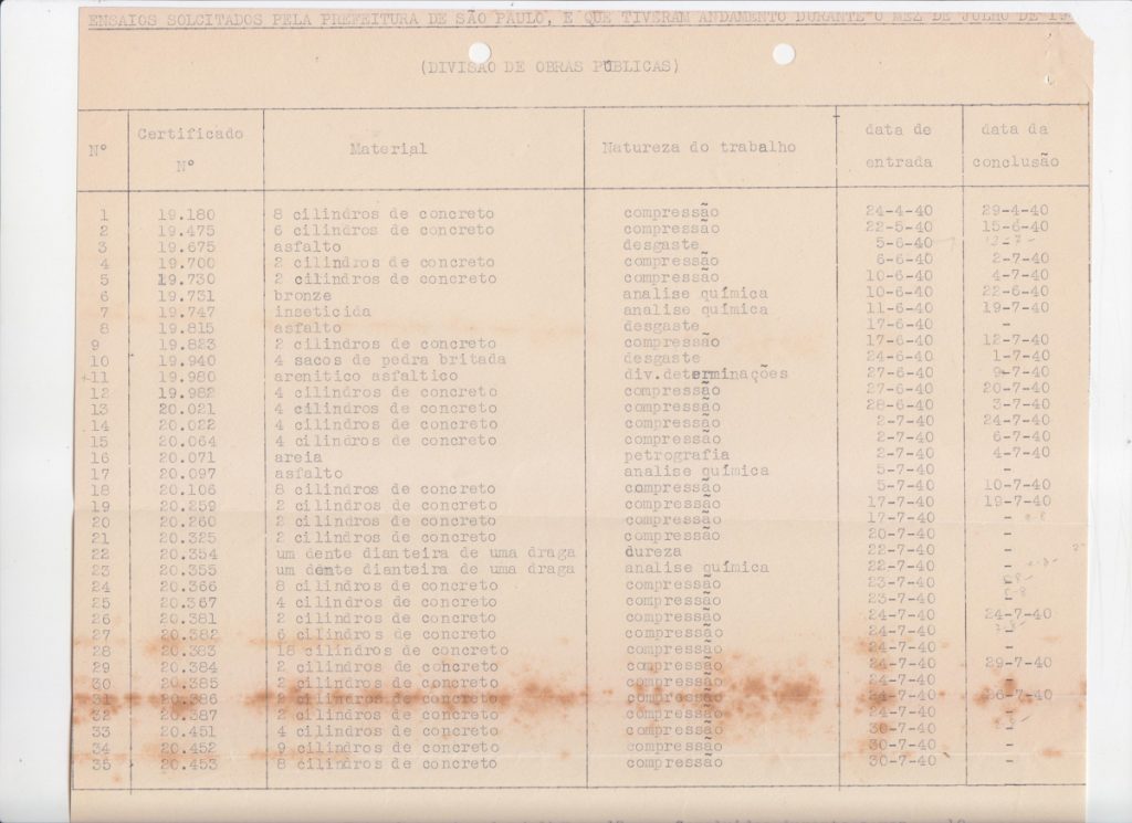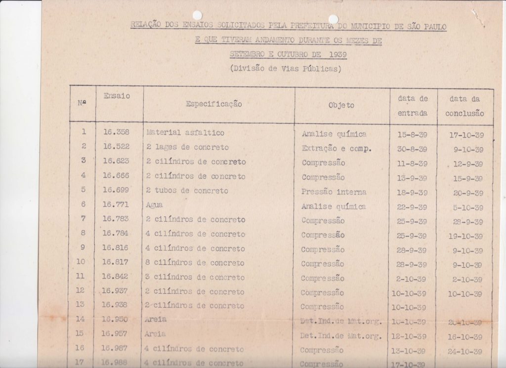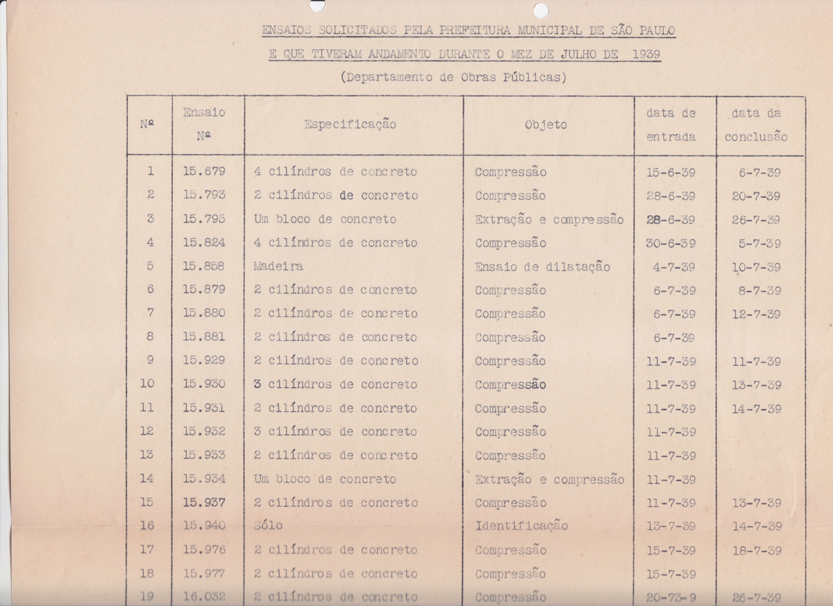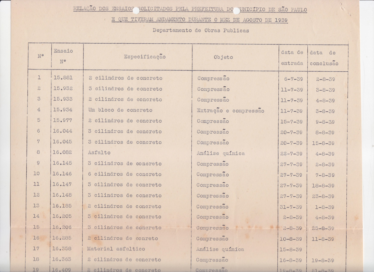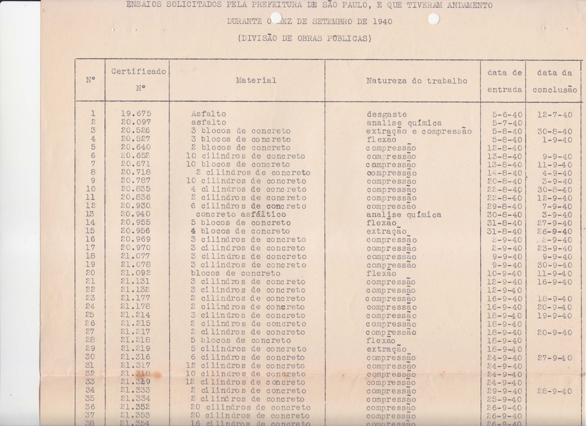 Funcional; Prefeitura do Município de São Paulo – Divisões: Obras Públicas e Compras; envio de publicações, solicitação de ensaios, relatórios de ensaios,