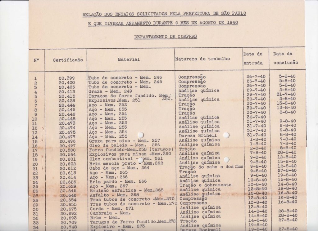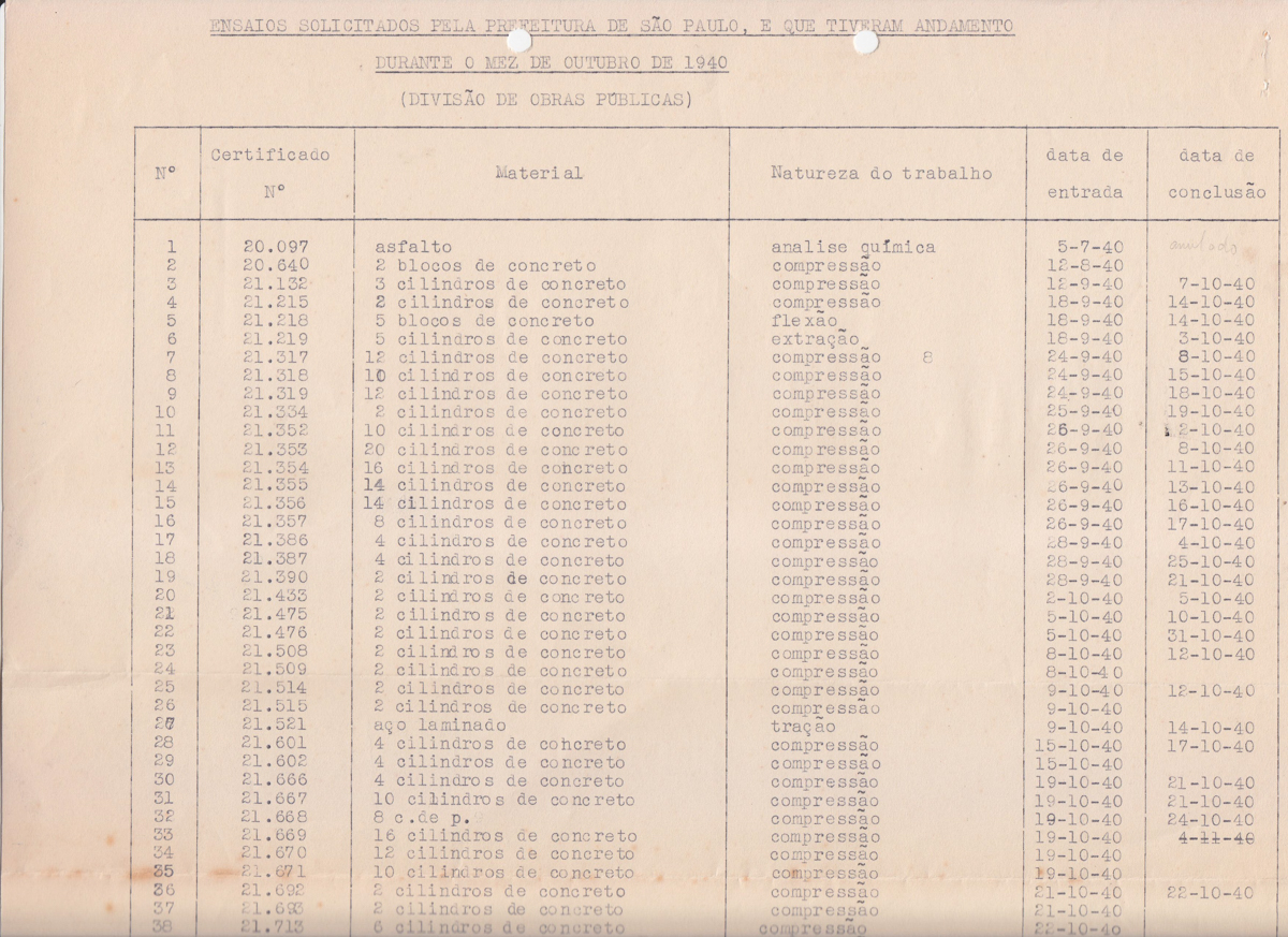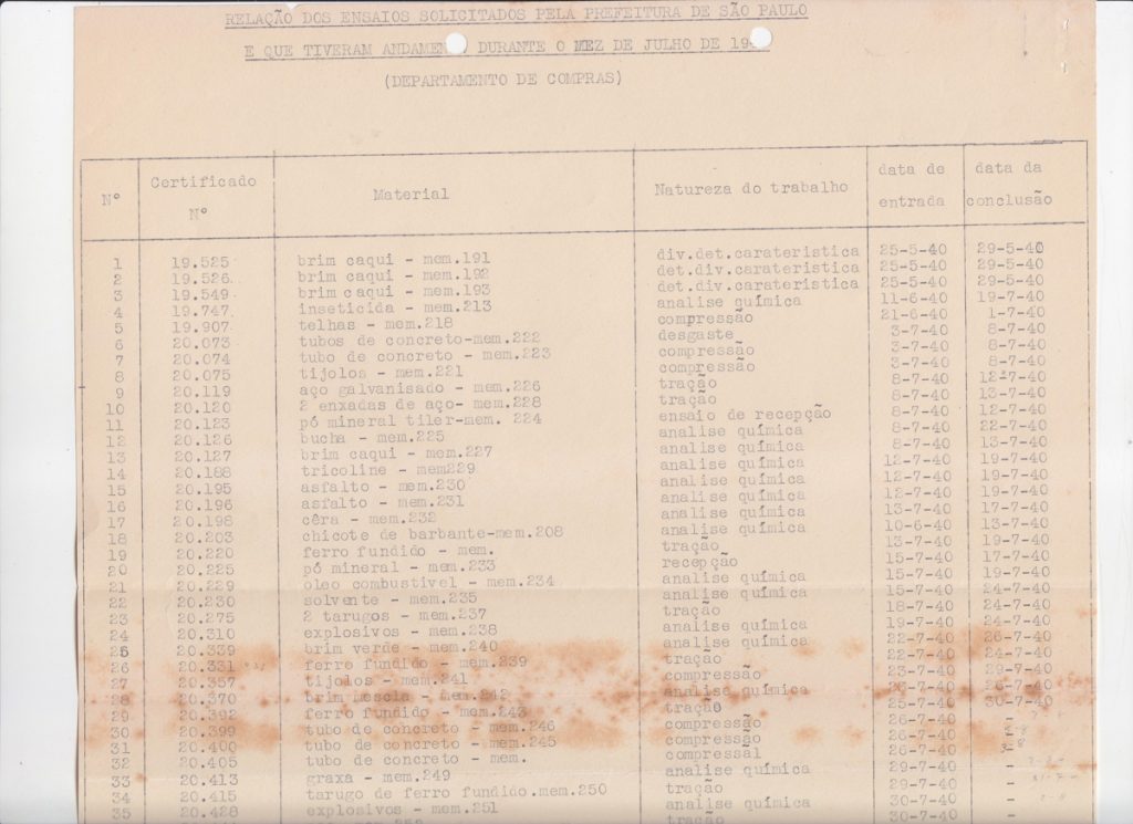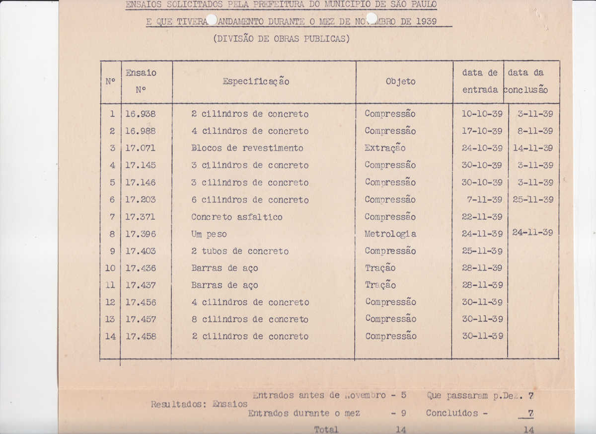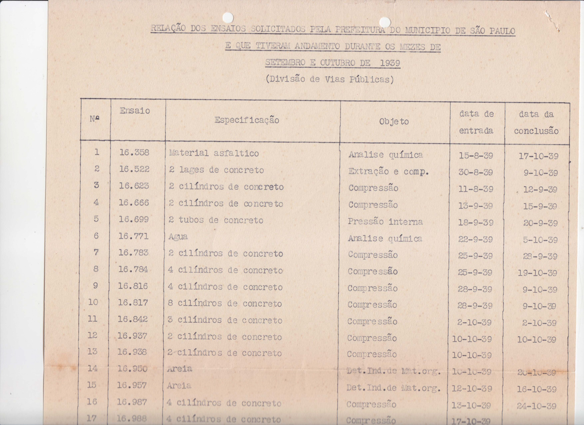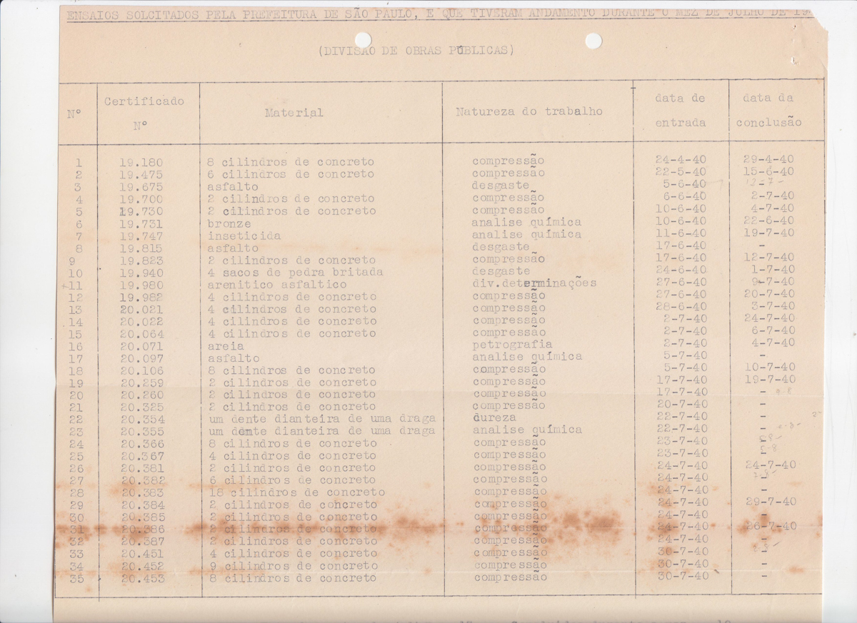 Funcional; Prefeitura do Município de São Paulo – Divisões: Obras Públicas e Compras; envio de publicações, solicitação de ensaios, relatórios de ensaios,