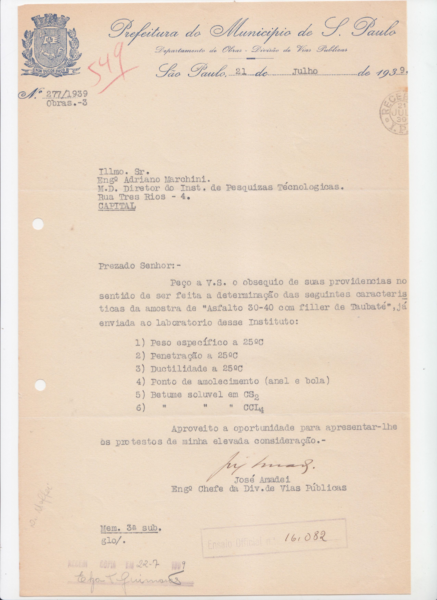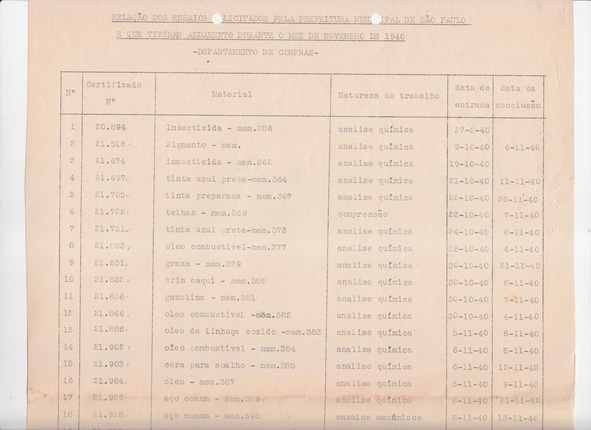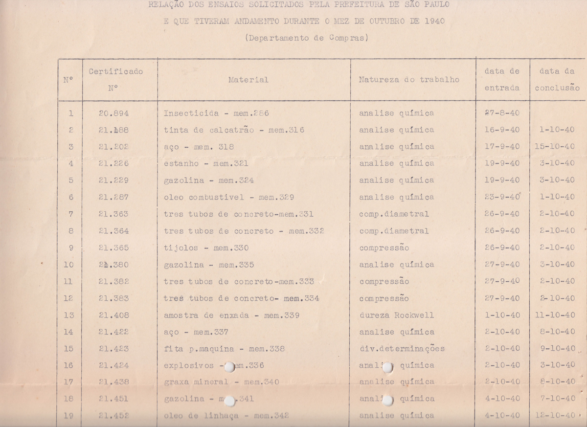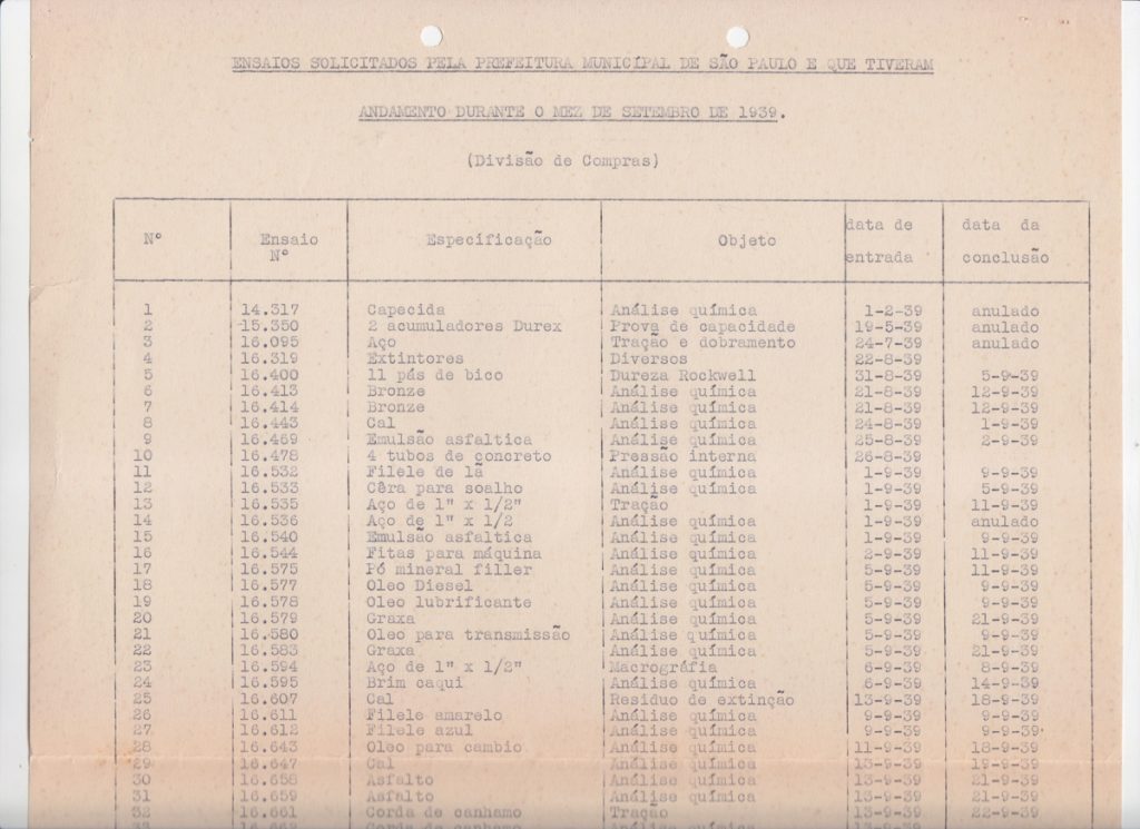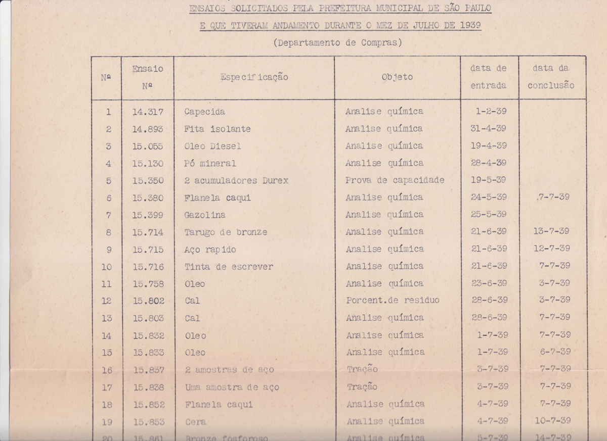 Funcional; Prefeitura do Município de São Paulo – Divisões: Obras Públicas e Compras; envio de publicações, solicitação de ensaios, relatórios de ensaios,