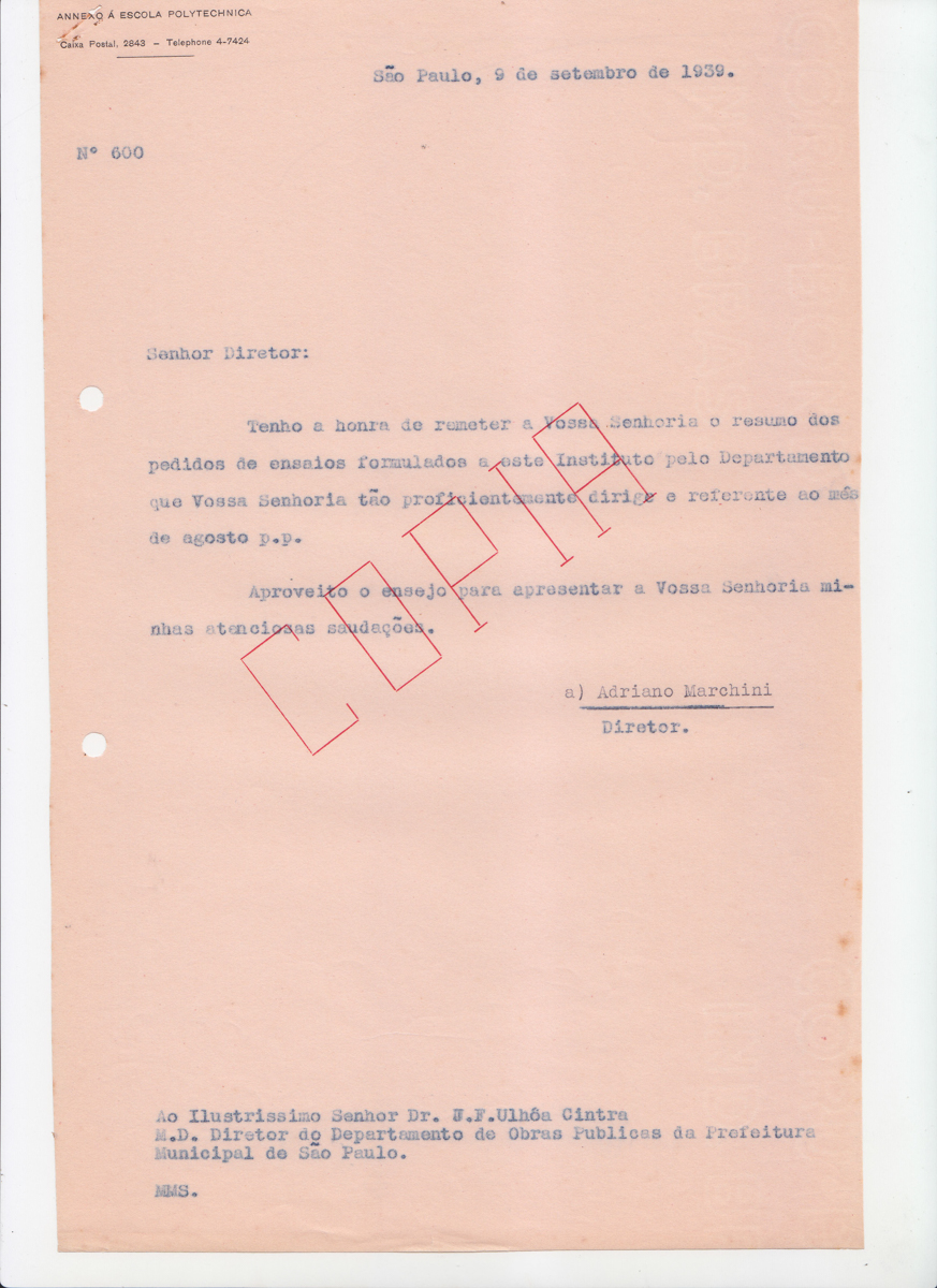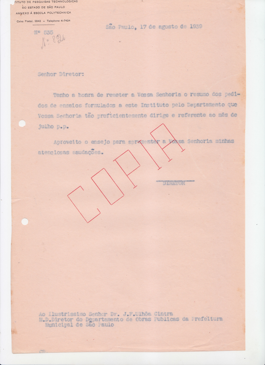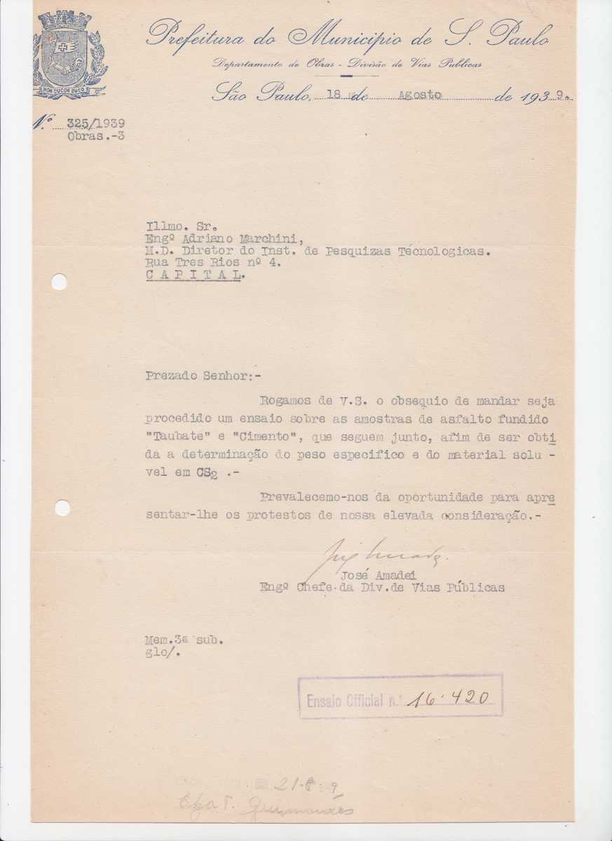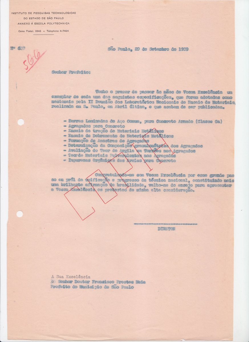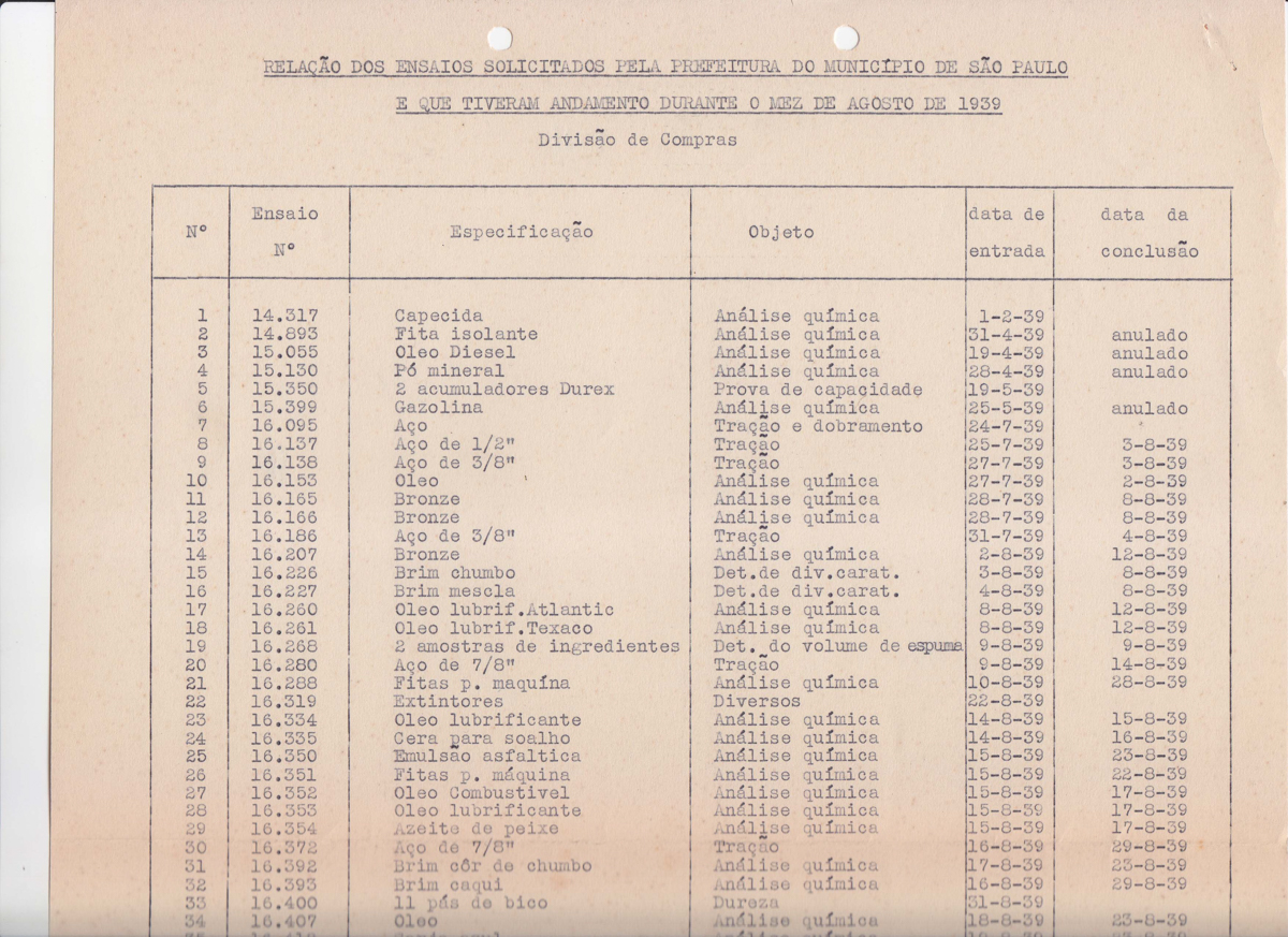 Funcional; Prefeitura do Município de São Paulo – Divisões: Obras Públicas e Compras; envio de publicações, solicitação de ensaios, relatórios de ensaios,