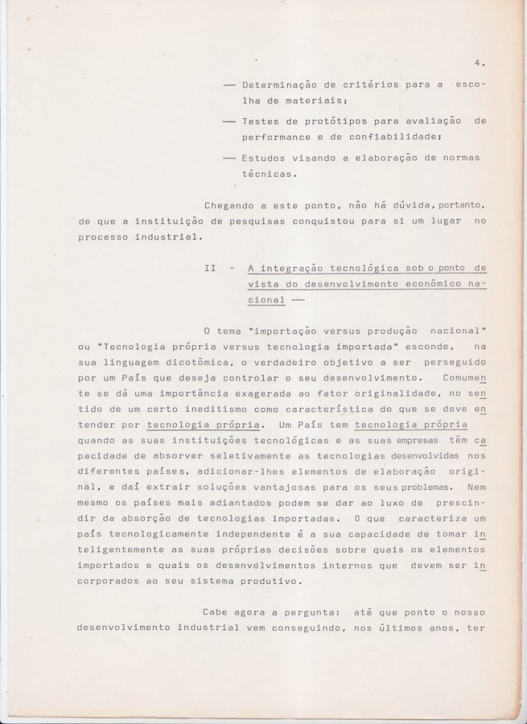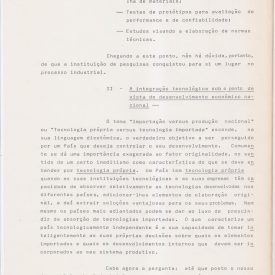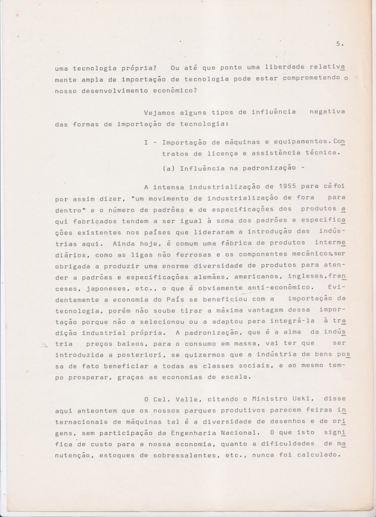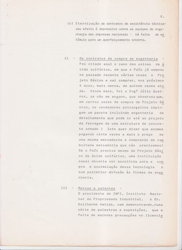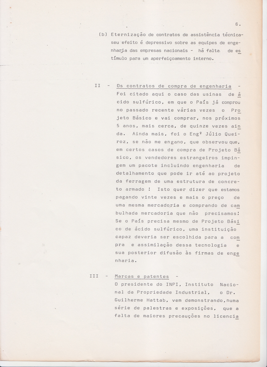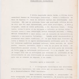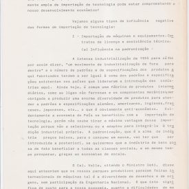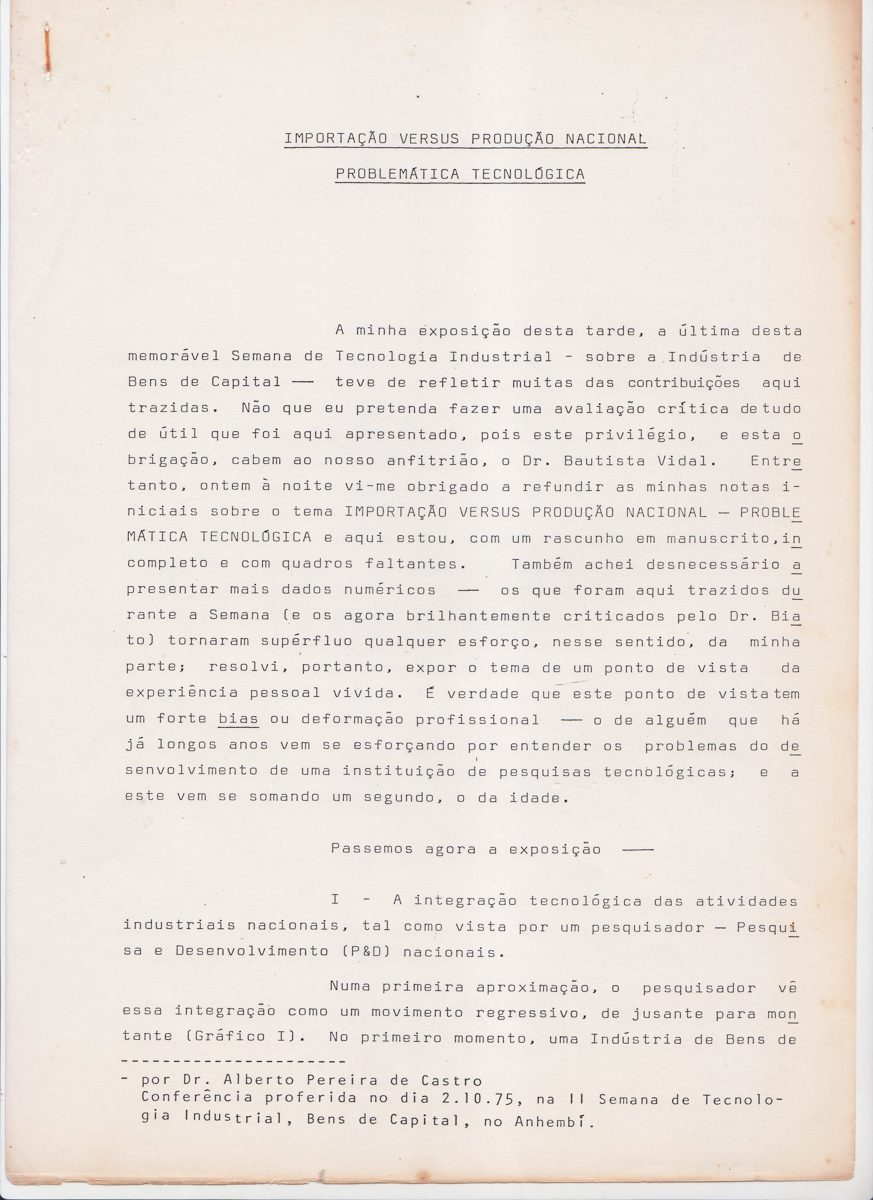 Conferência proferida por Dr. Alberto Pereira de Castro, na II Semana de Tecnologia Industrial, bens de Capital, no Anhembi. Título: "Importação Versus Produção Nacional - Problemática Tecnológica".