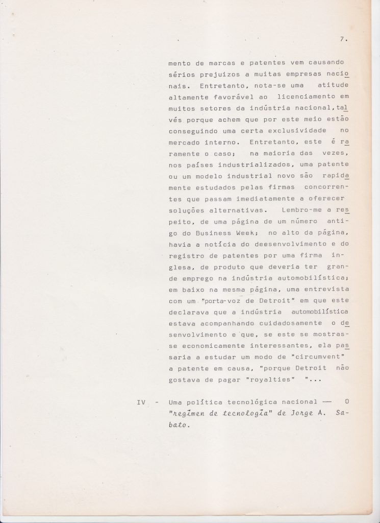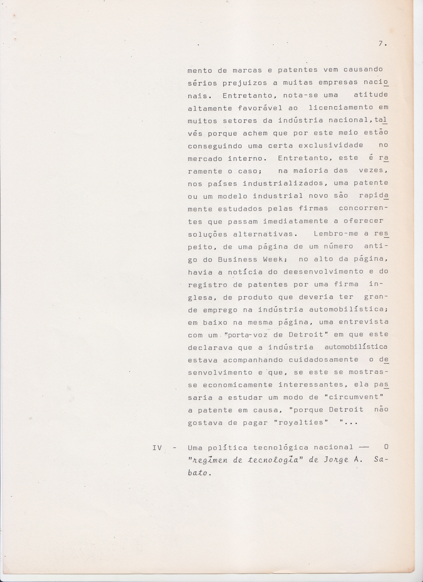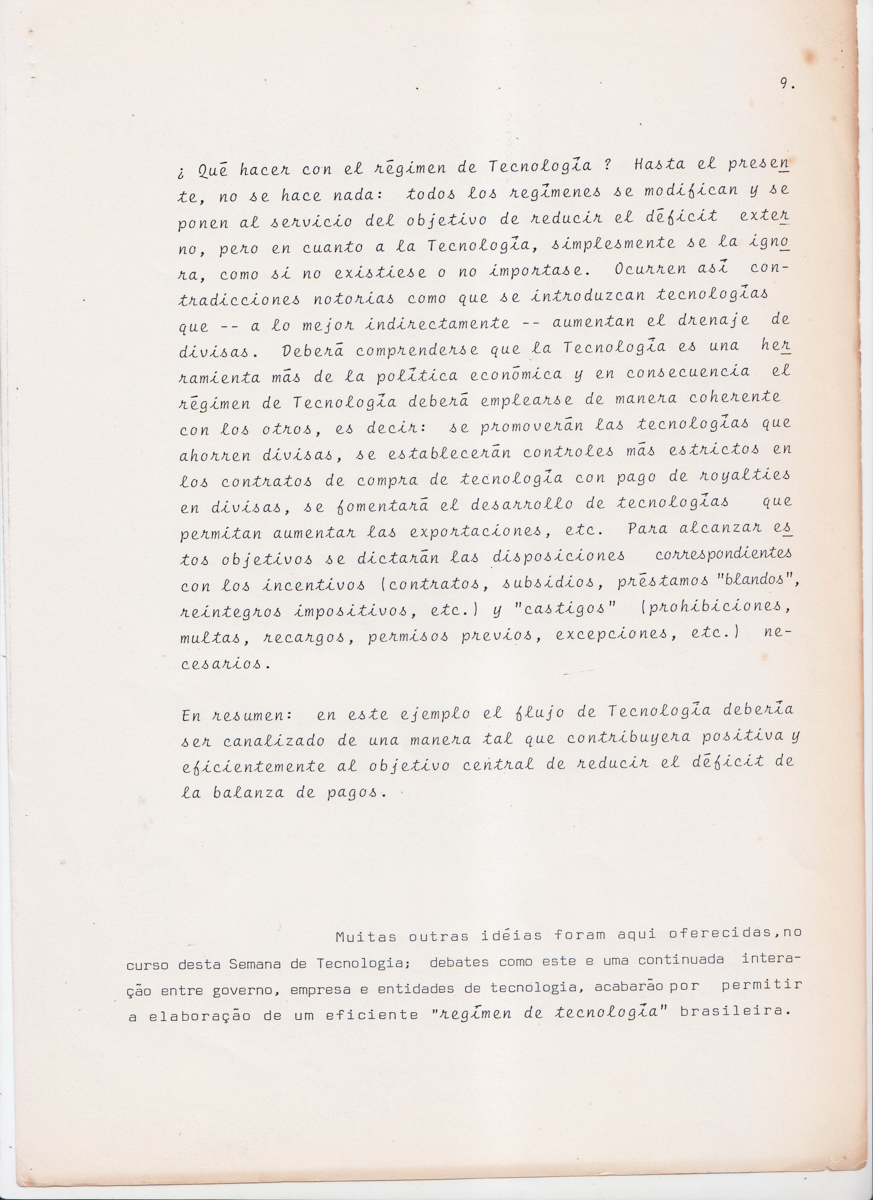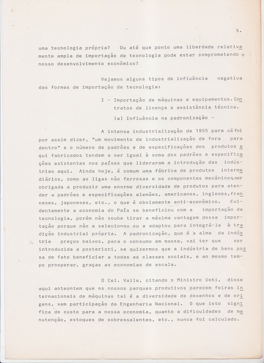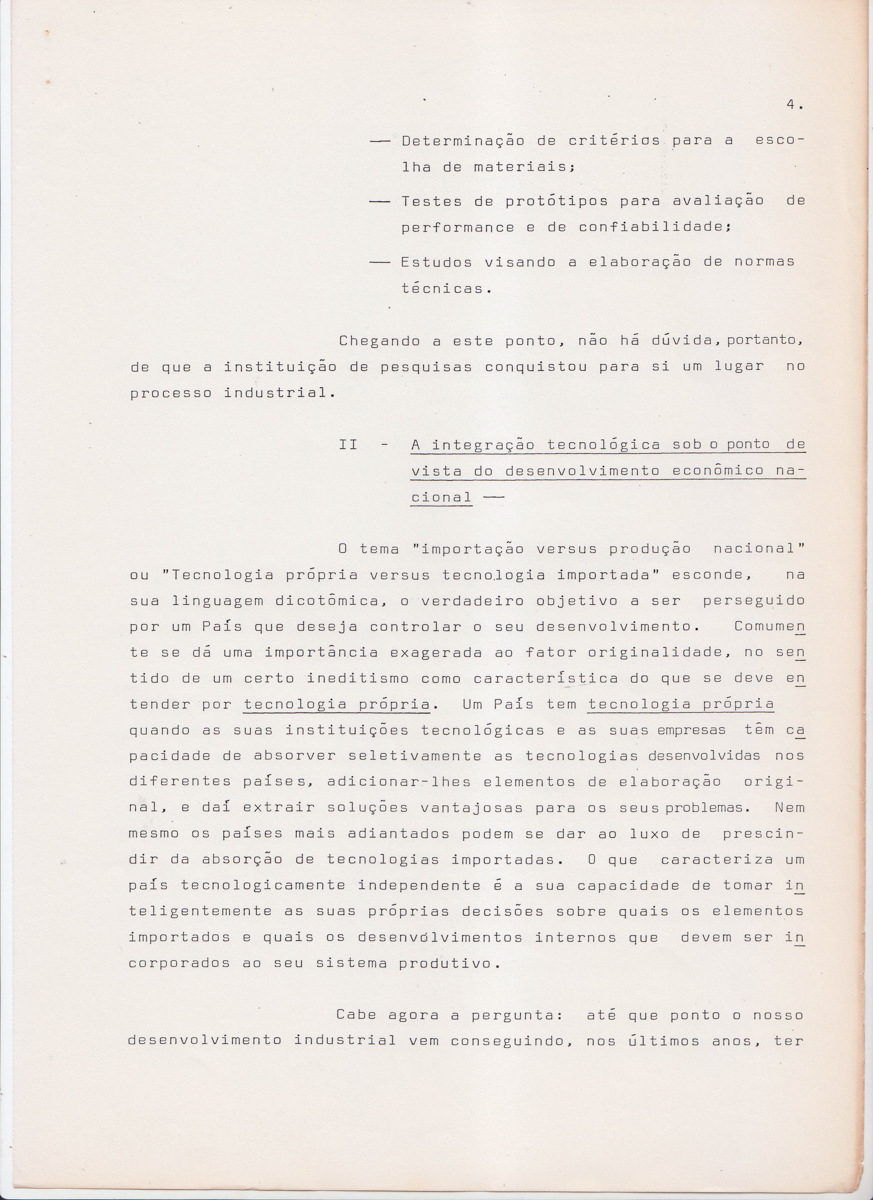 Conferência proferida por Dr. Alberto Pereira de Castro, na II Semana de Tecnologia Industrial, bens de Capital, no Anhembi. Título: "Importação Versus Produção Nacional - Problemática Tecnológica".