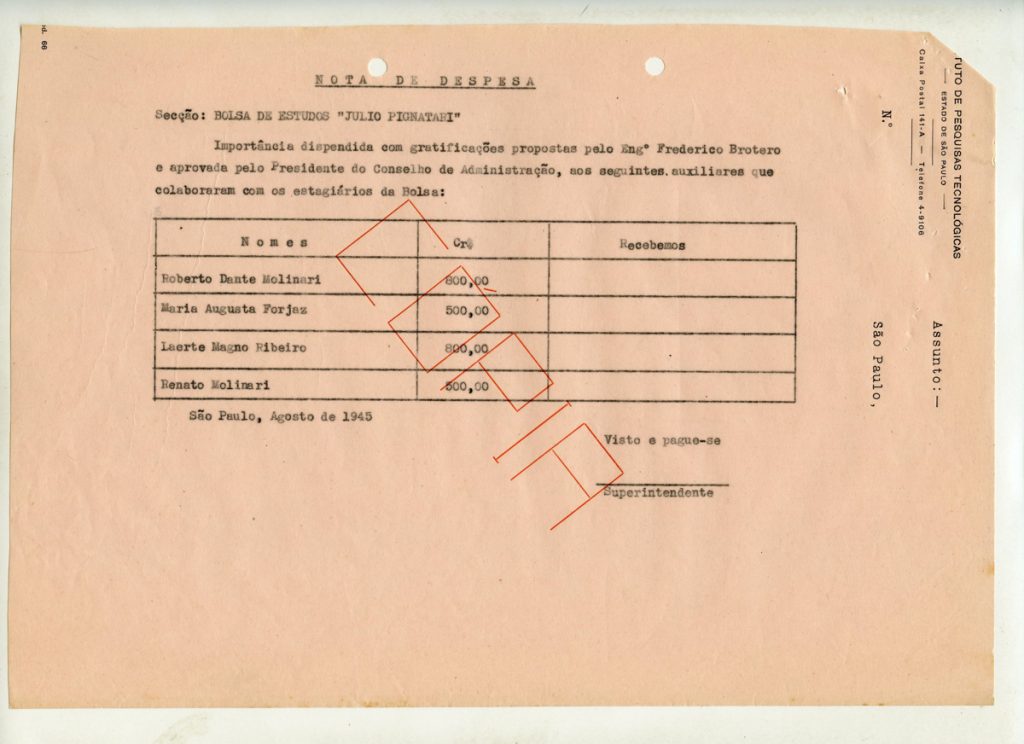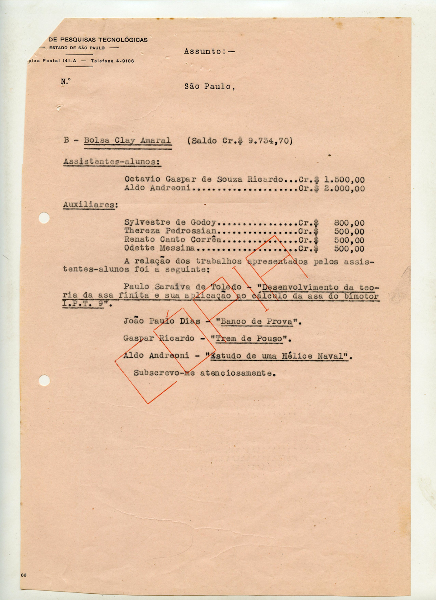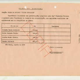 Correspondência relativa a Bolsa de Estudos Julio Pignatari e Clay Amaral, incluindo nota de despesa