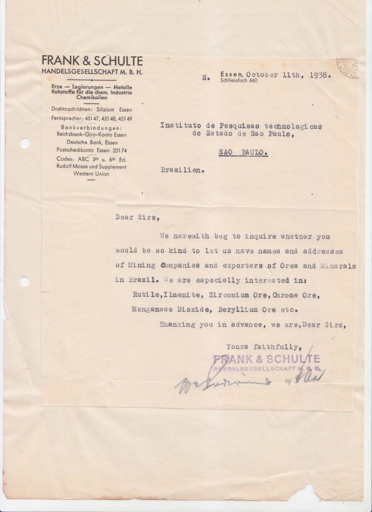 Documentos 01.001.0113.0005_28129 Baixar 01.001.0113.0005_28229 Baixar 01.001.0113.0005_28329 Baixar 01.001.0113.0005_28429 Baixar 01.001.0113.0005_28529 Baixar 01.001.0113.0005_28629 Baixar 01.001.0113.0005_28129 01.001.0113.0005_28229 01.001.0113.0005_28329 01.001.0113.0005_28429 01.001.0113.0005_28529 01.001.0113.0005_28629 ApresentaçãoNúmero de registro01.001.0113.0005ConteúdoFuncional; Frank Schulte ao Sr. Ary F. Torres; Solicitação fornecedores minériosGrupoMemória InstitucionalSubgrupoMemória da ciênciaSérieDossiêsSuportePapelGêneroTextualData08/08/1938 e __/10/1938Nível de descriçãoIndividual Metadados TipologiaCorrespondência | Gráfico | TabelaTécnica de registroImpressão | ManuscritoFormatoFolhaQuantidade de documentosA4, 5 folhasNúmero de Itens do conjunto001Materialpapel de cartaProcedênciaMemória Histórica IPT Conservação Estado de conservaçãoA definirAcondicionamentoCaixa Filifold | Papel glassine Item anteriorComunicado Próximo itemMemorial descritivo