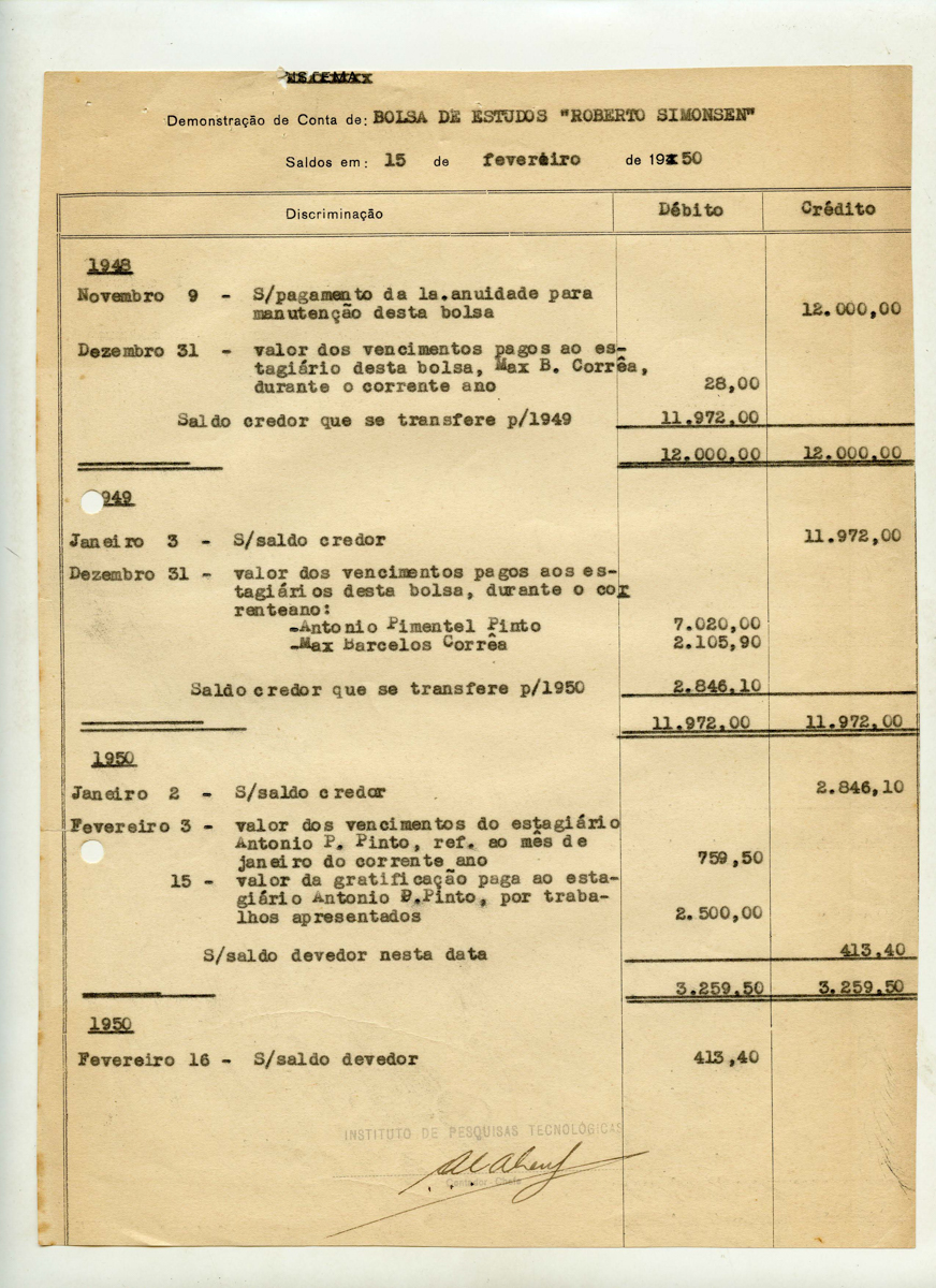 Documentos 01.001.0017.0140 Baixar ApresentaçãoNúmero de registro01.001.0017.0140ConteúdoDemonstrativo de conta de Bolsa de Estudos Roberto SimonsenGrupoGestão Orçamentária e FinanceiraSubgrupoExecução orçamentária e financeiraSérieRecursos financeirosSuportePapelGêneroTextualData__/__/1950Nível de descriçãoIndividual Metadados TipologiaDemonstrativo de contaTécnica de registroDatilografiaFormatoFolhaQuantidade de documentos1 documento, 1 folhaNúmero de Itens do conjunto001MaterialpapelIdiomaPortuguêsProcedênciaDAIT - Departamento de Acervo e Informação Tecnológica Conservação Estado de conservaçãoBomAcondicionamentoCaixa Filifold | Caixa poliondas | Papel glassine Item anteriorOfício Próximo itemRelatório/Informe