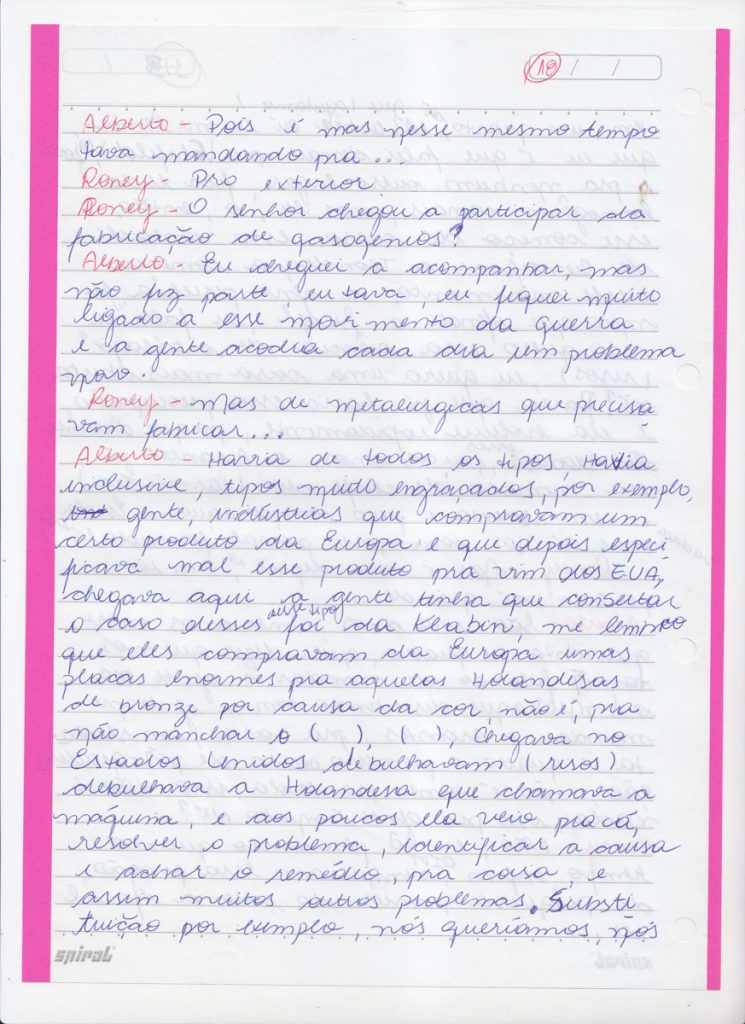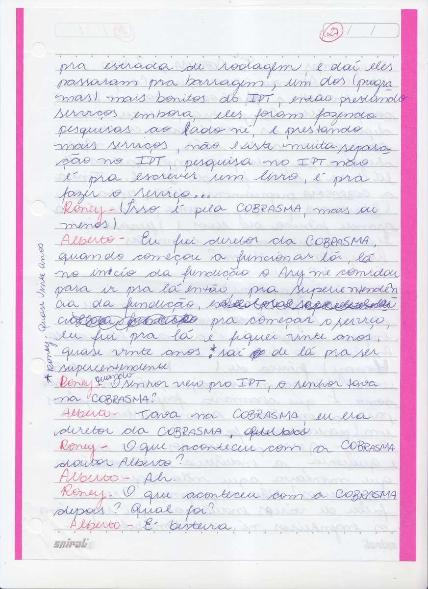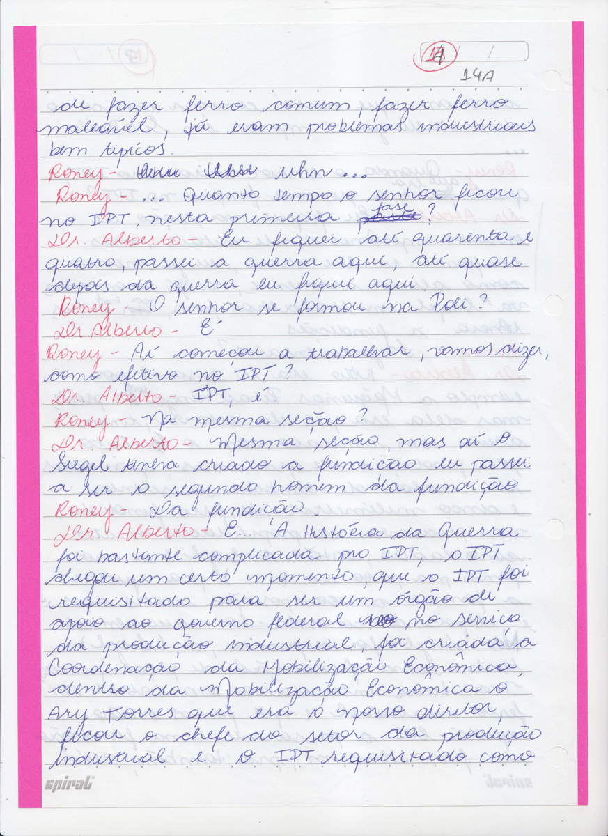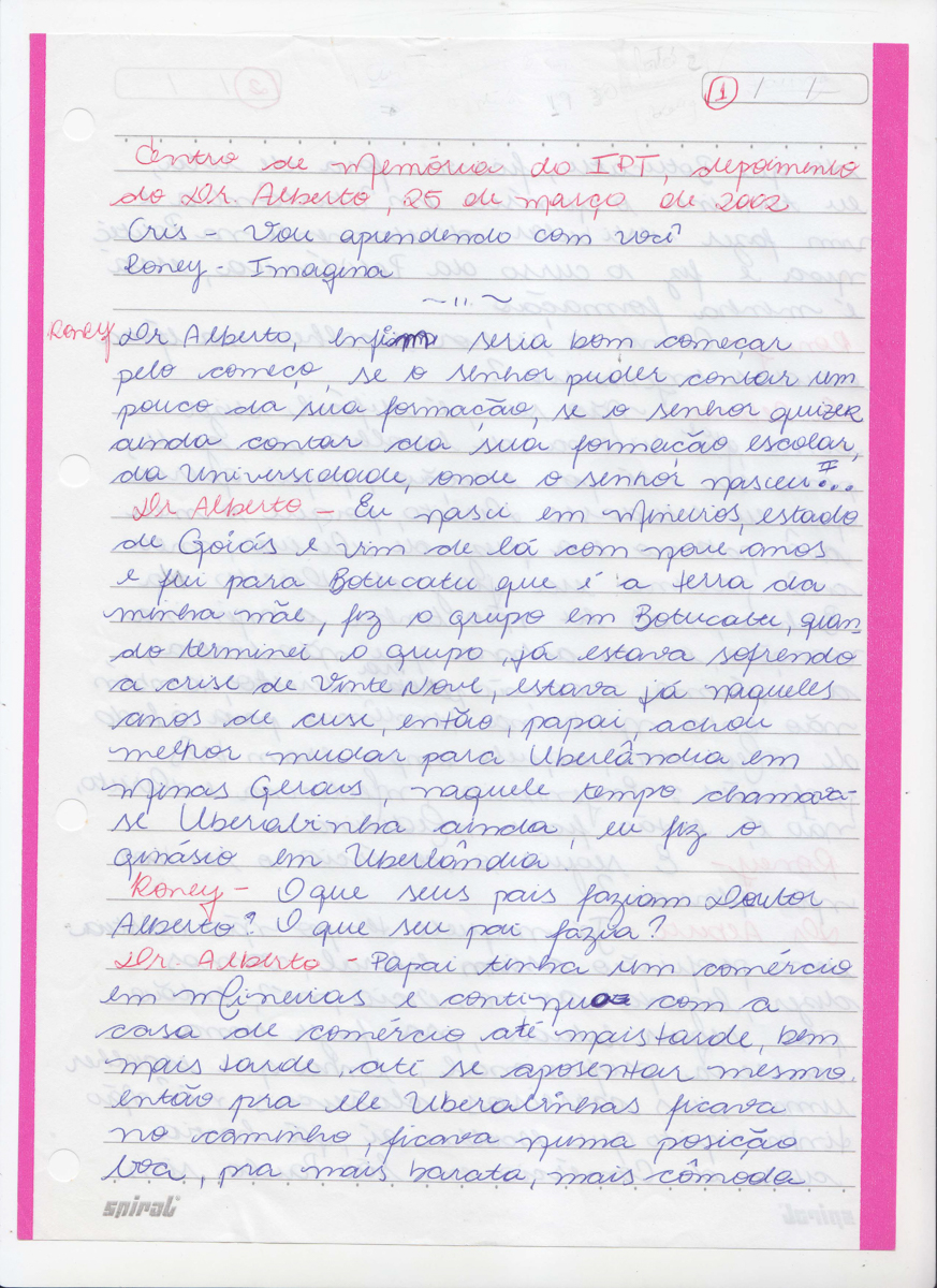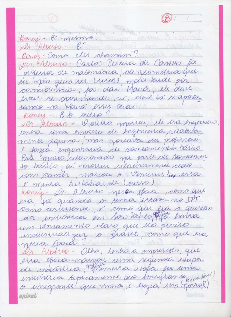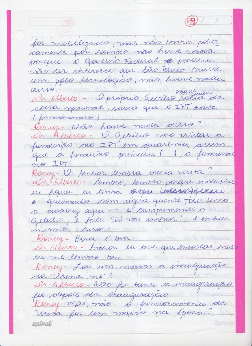 Entrevista com Alberto Pereira de Castro, feita por Roney e Cristiane dos Alves Souza, no centro de memória do IPT.