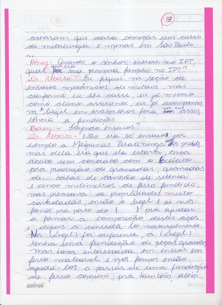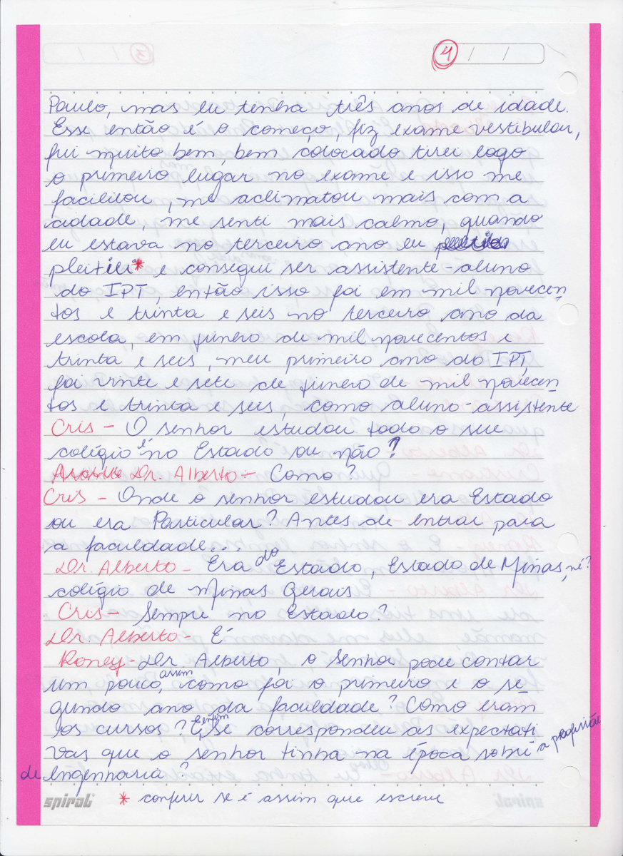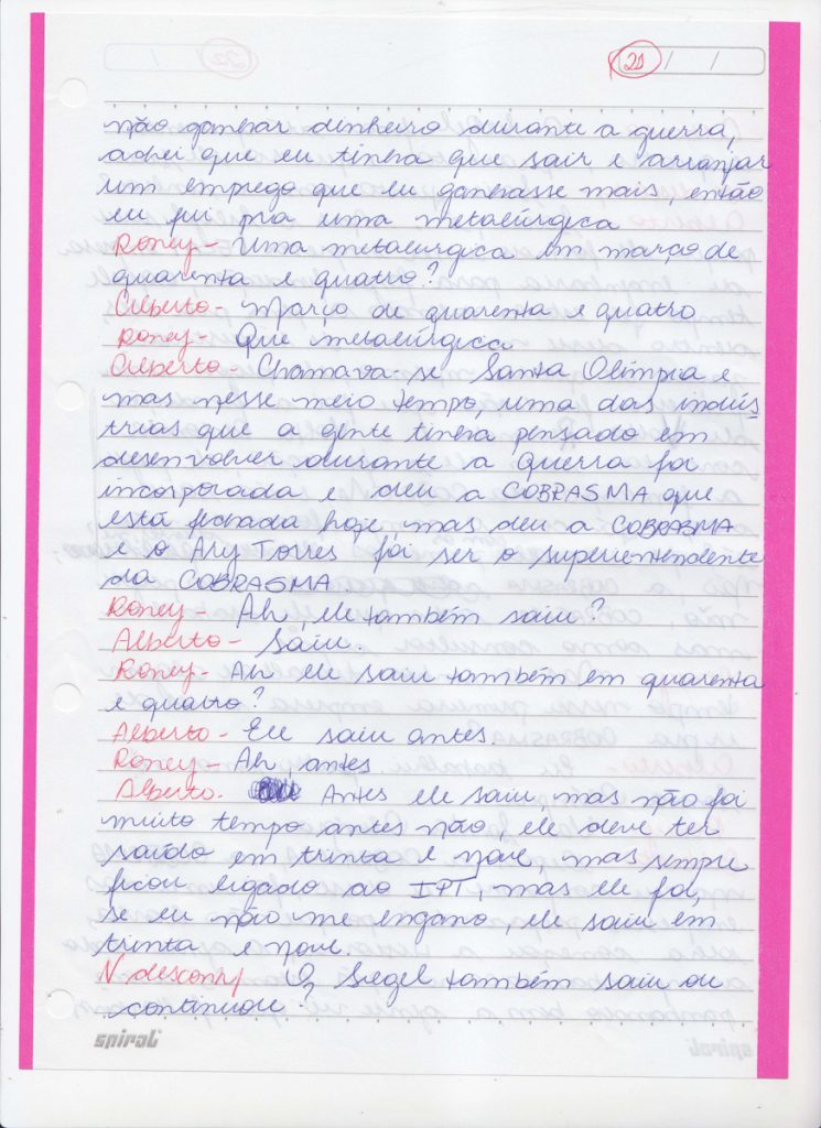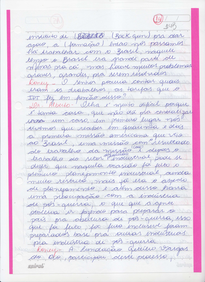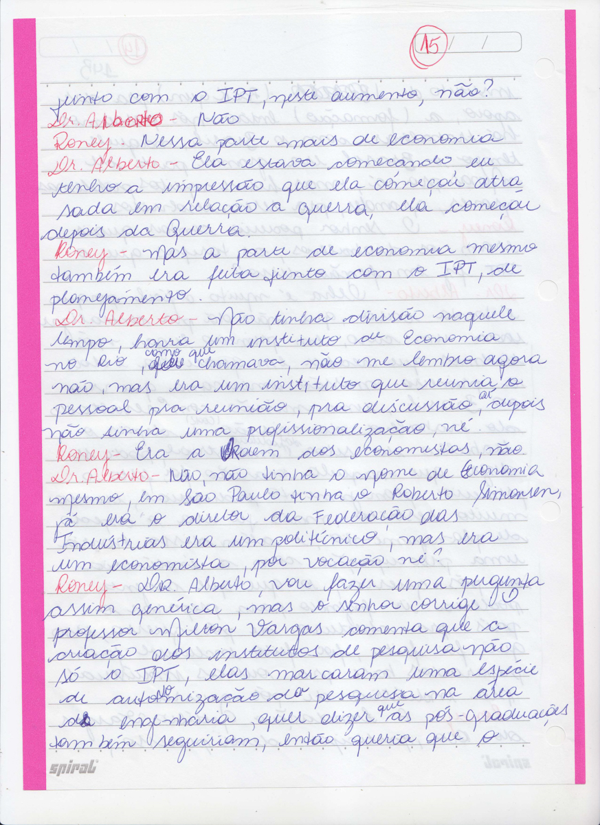 Entrevista com Alberto Pereira de Castro, feita por Roney e Cristiane dos Alves Souza, no centro de memória do IPT.