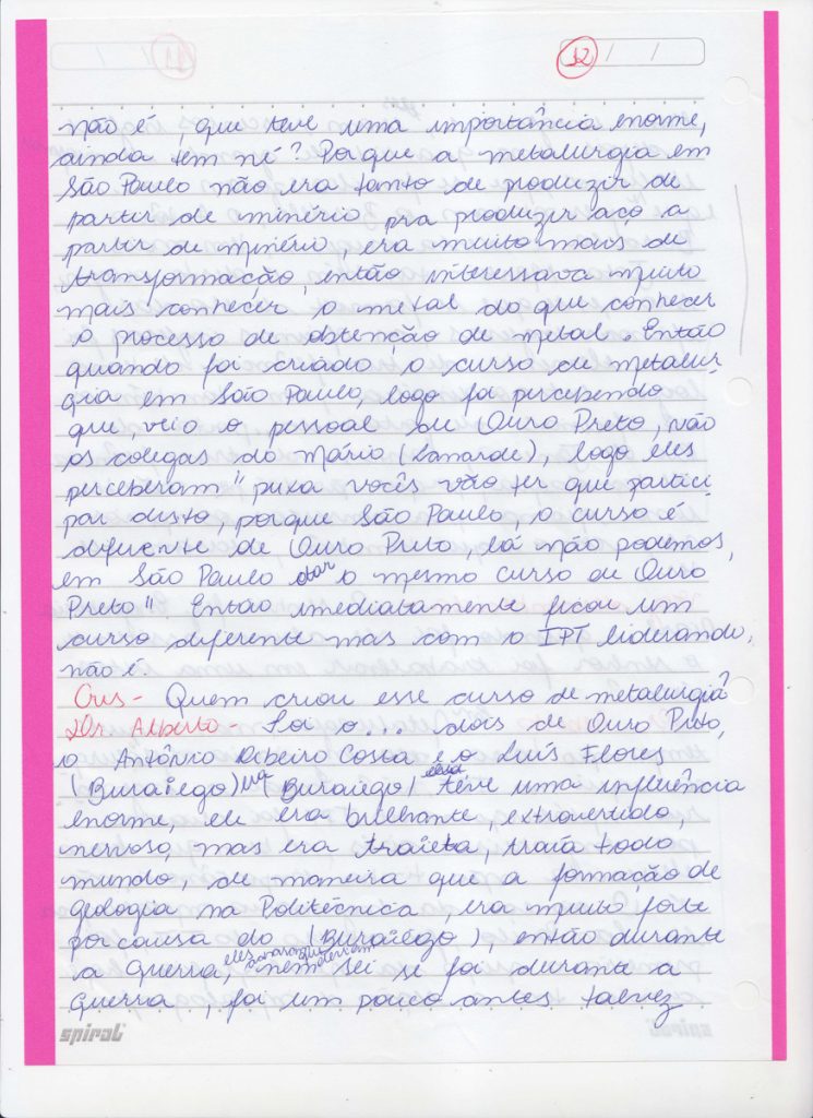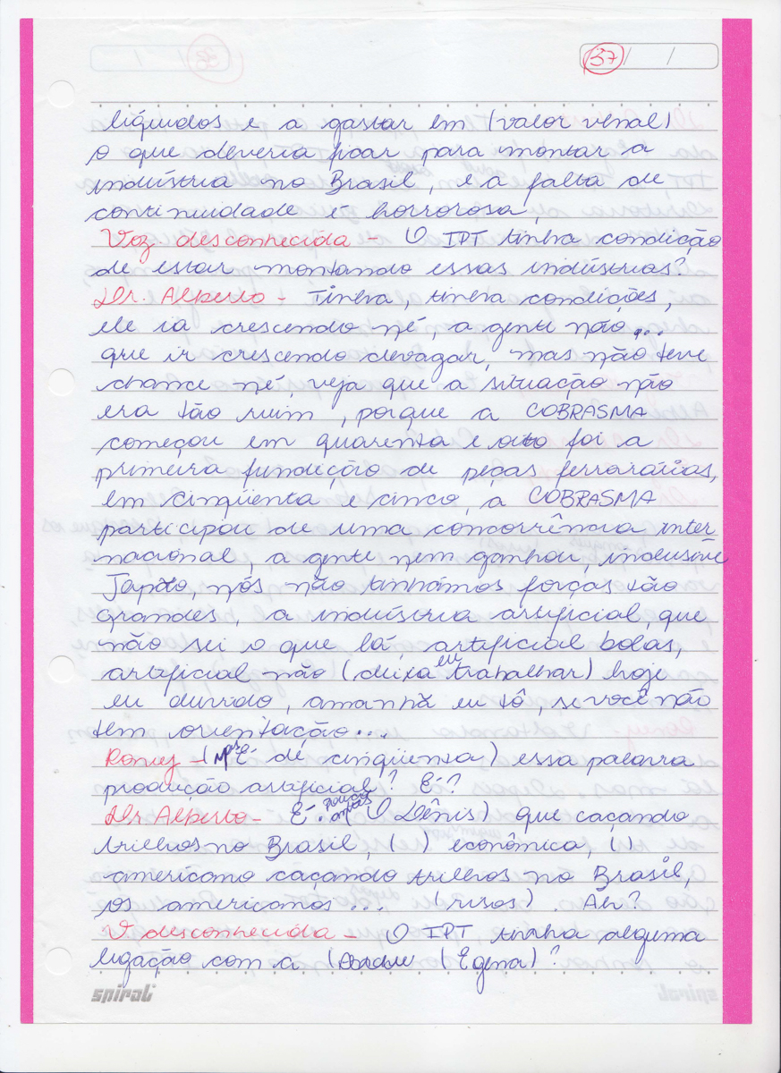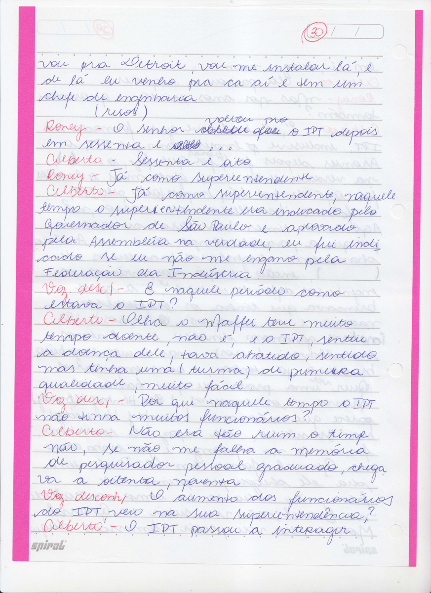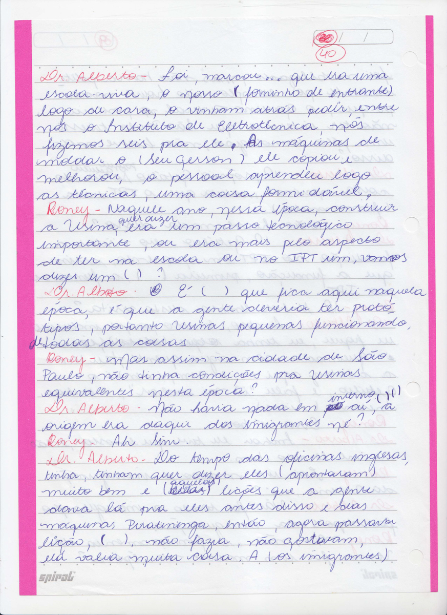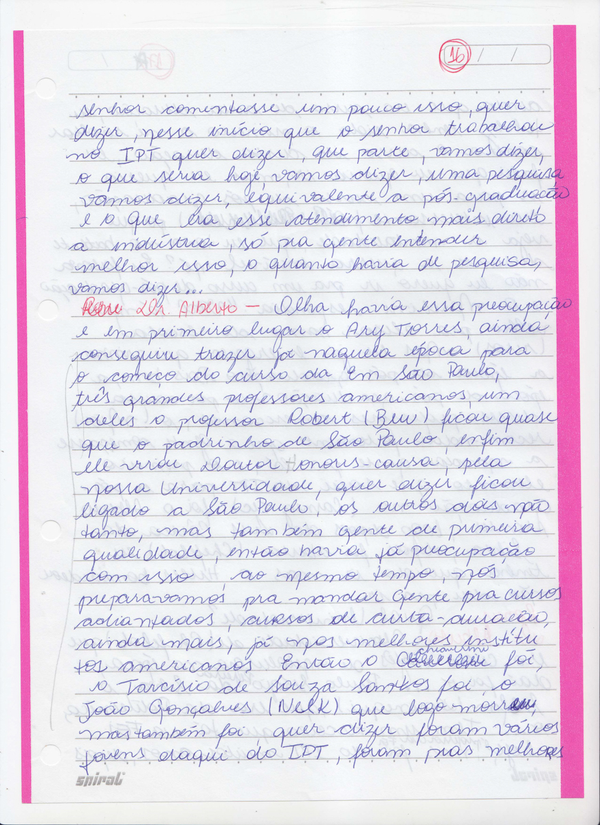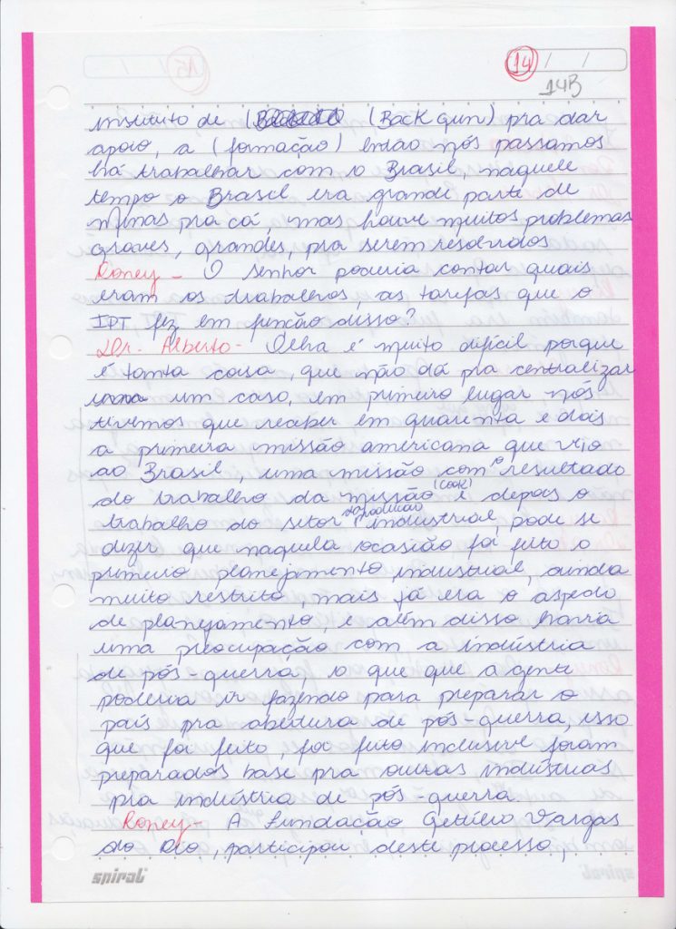 Entrevista com Alberto Pereira de Castro, feita por Roney e Cristiane dos Alves Souza, no centro de memória do IPT.