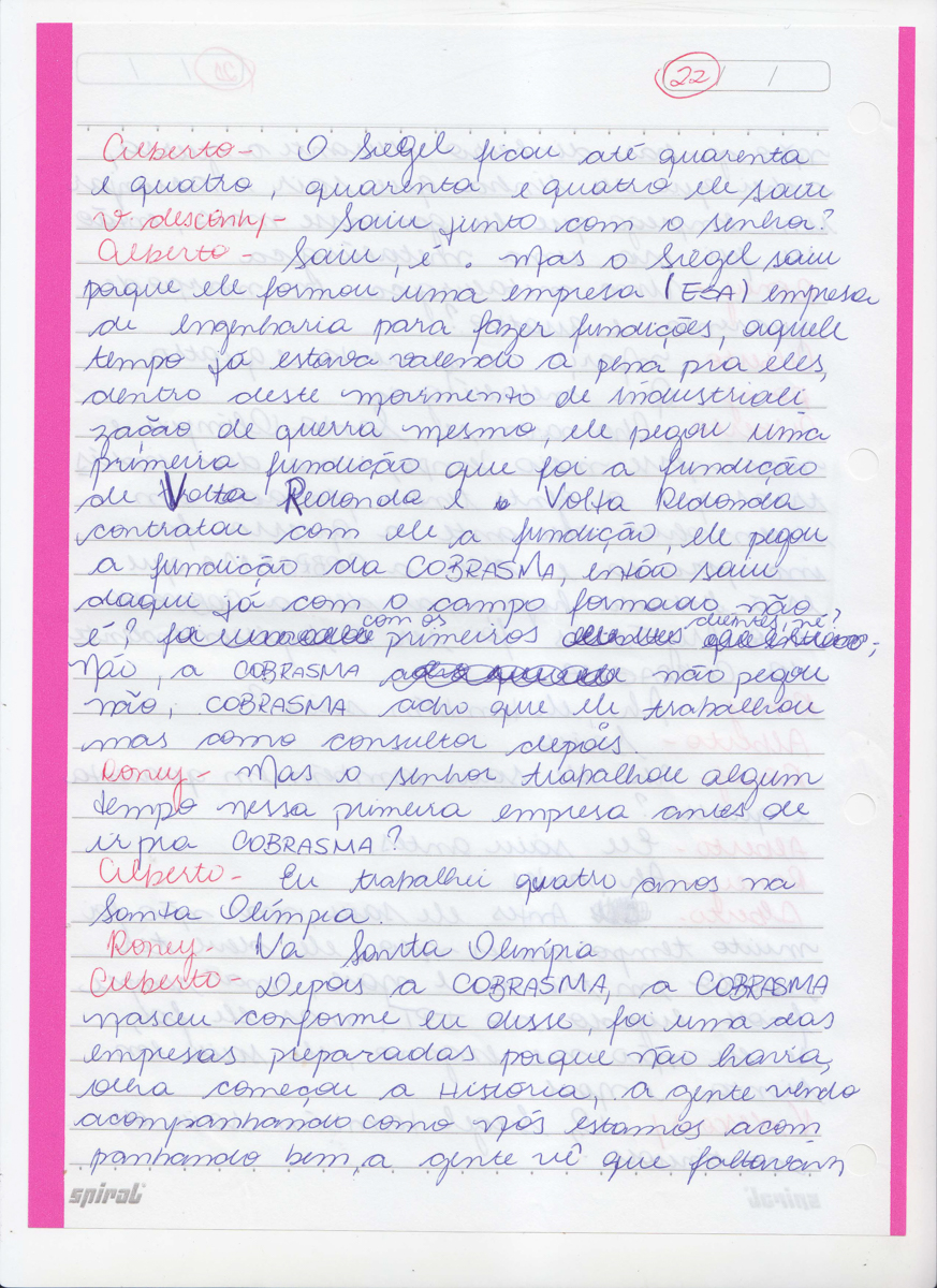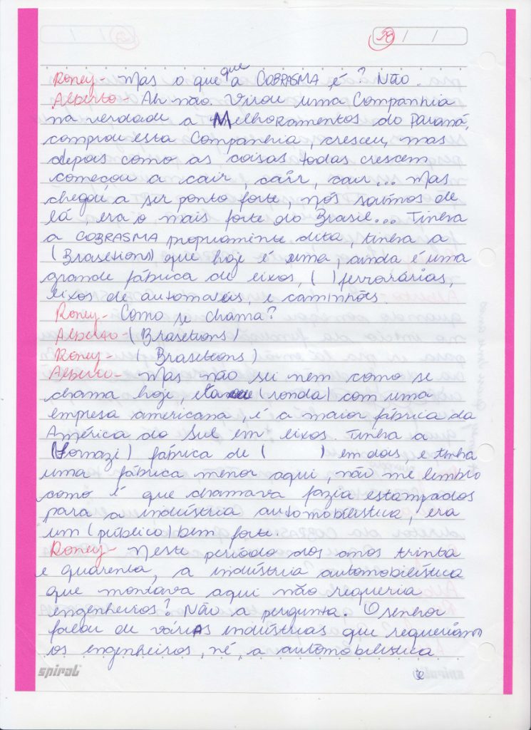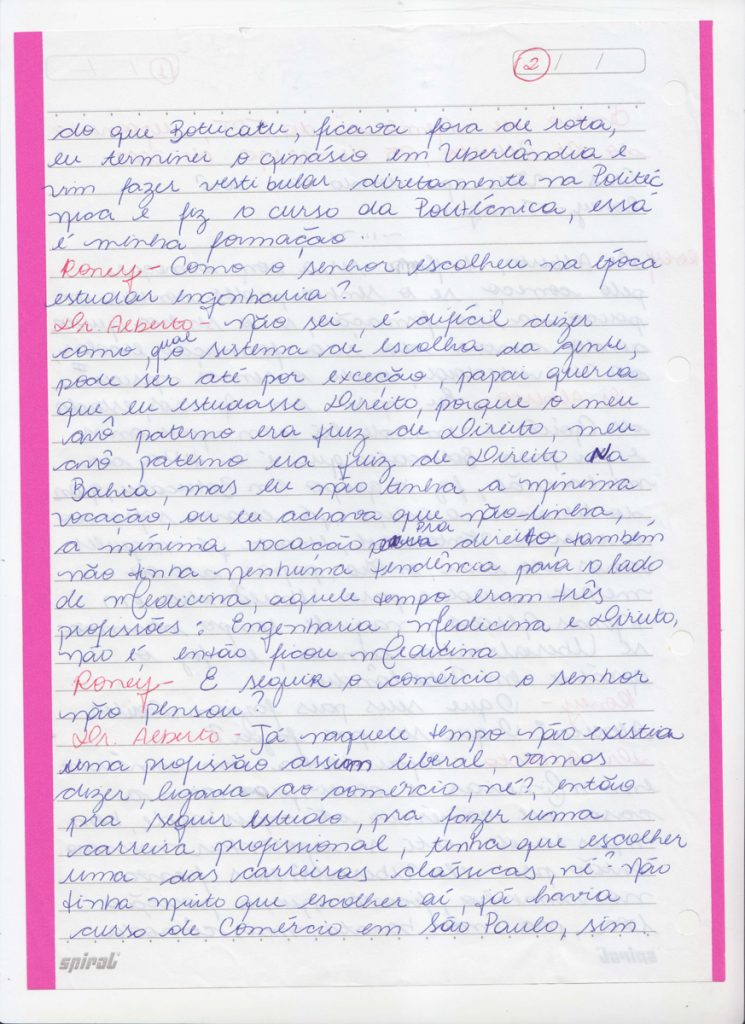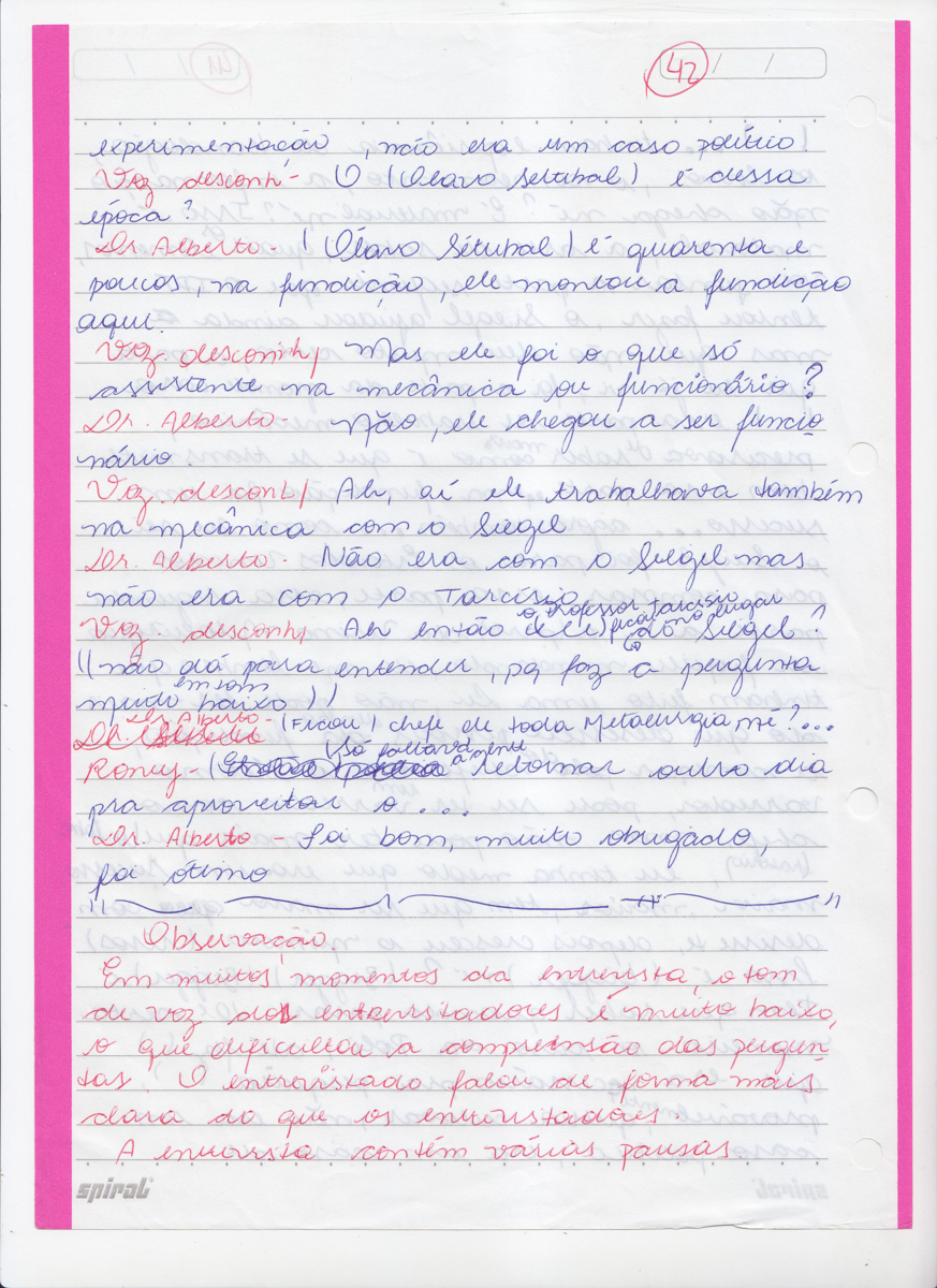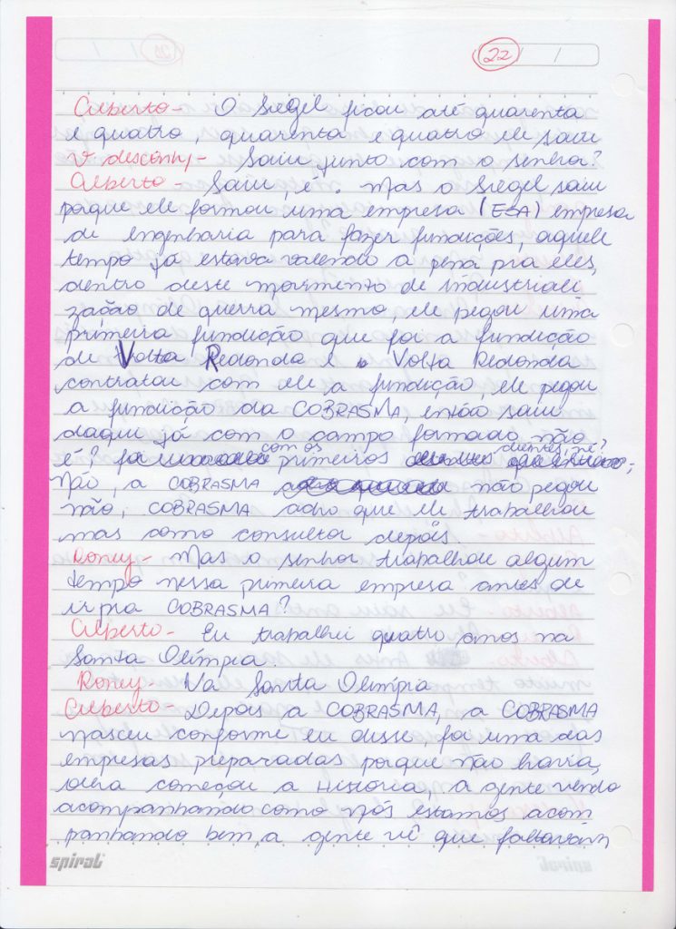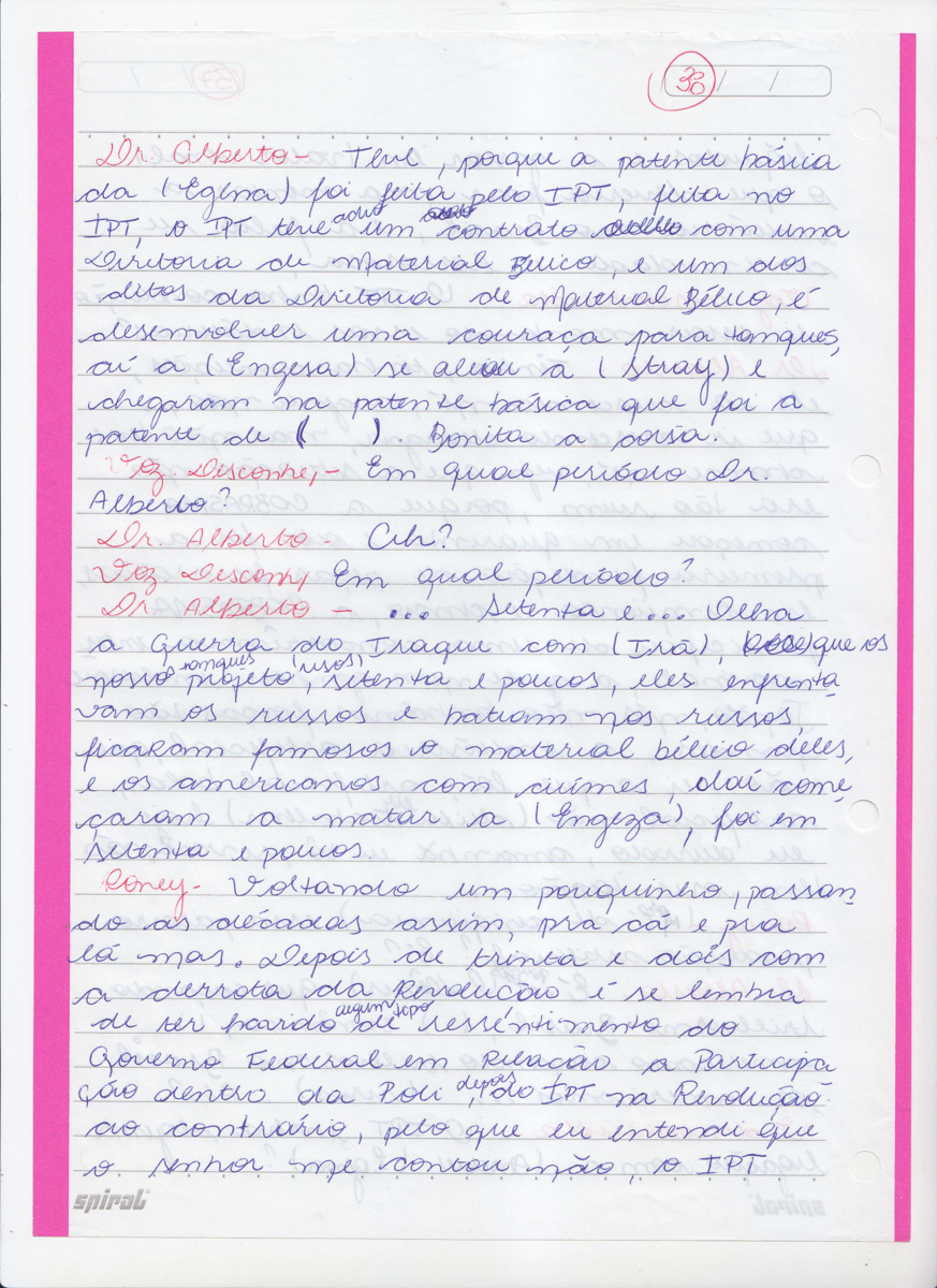 Entrevista com Alberto Pereira de Castro, feita por Roney e Cristiane dos Alves Souza, no centro de memória do IPT.