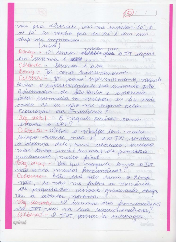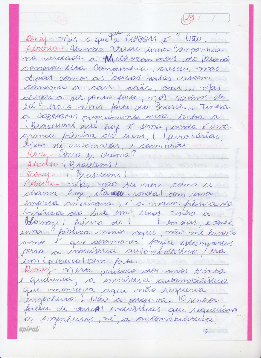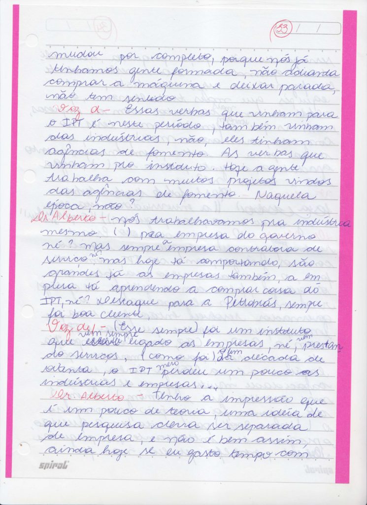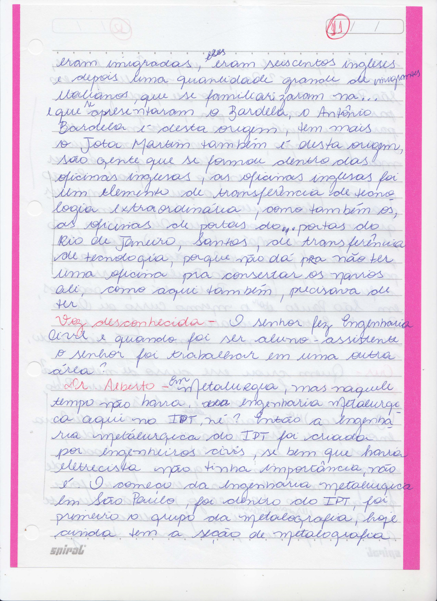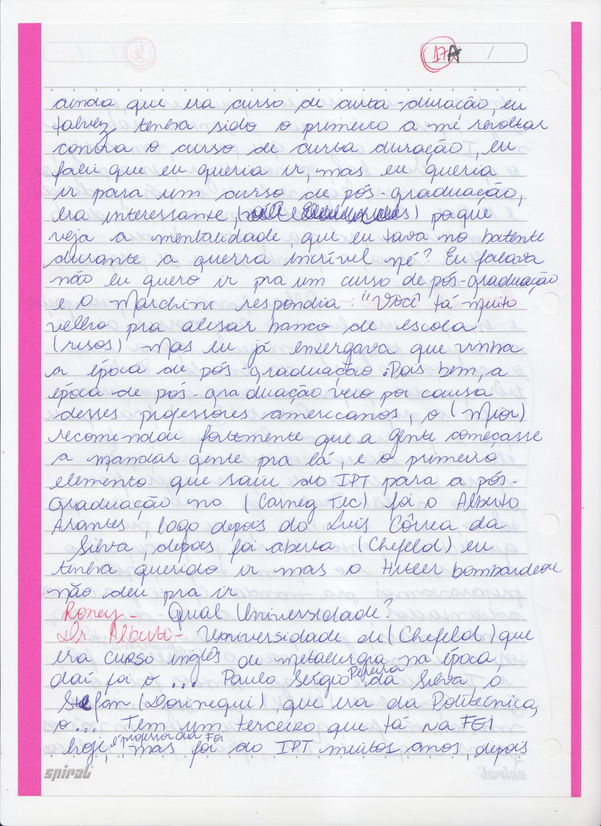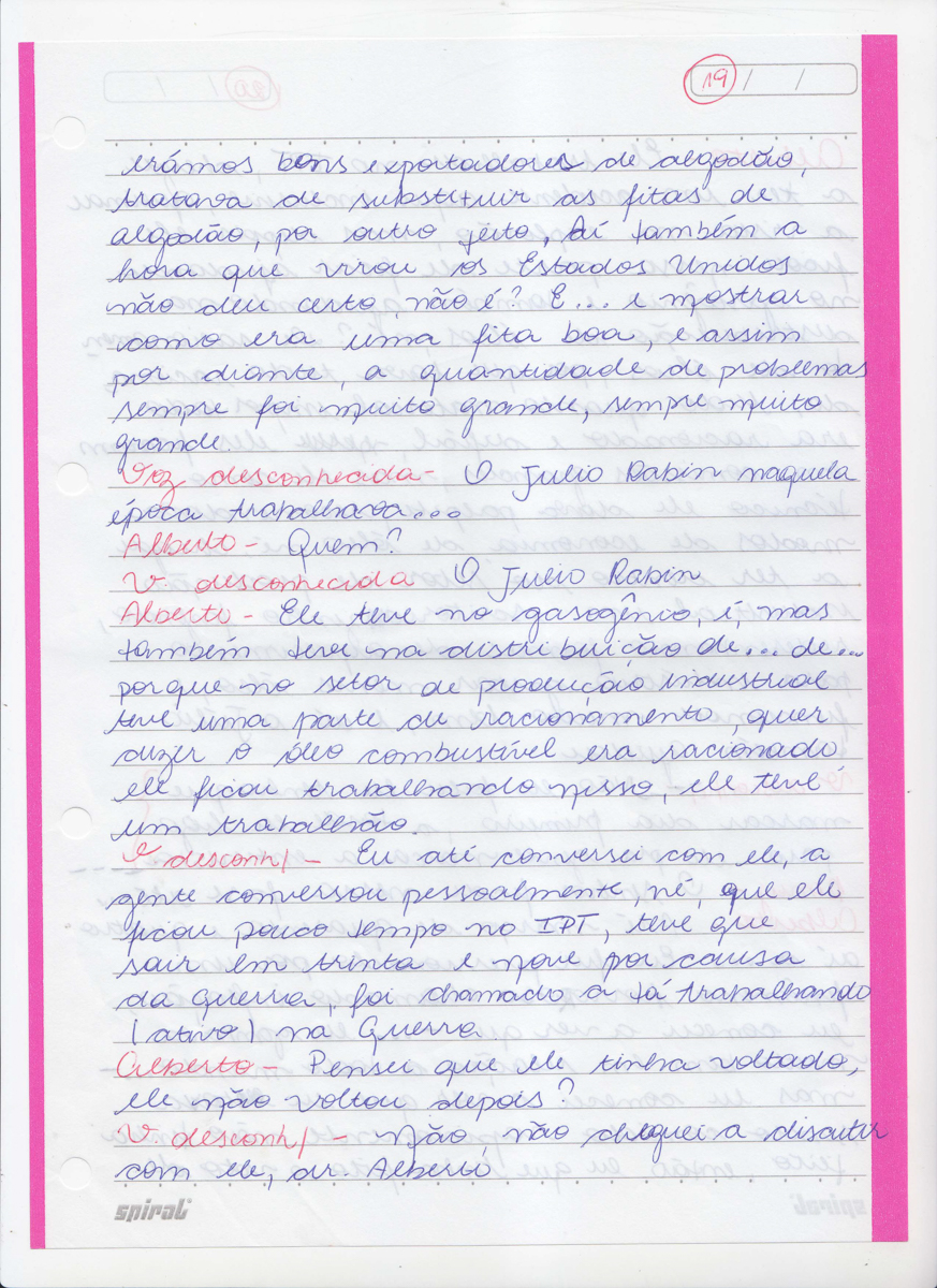 Entrevista com Alberto Pereira de Castro, feita por Roney e Cristiane dos Alves Souza, no centro de memória do IPT.