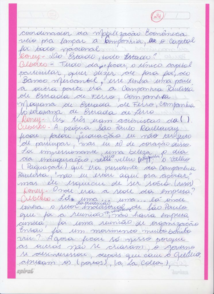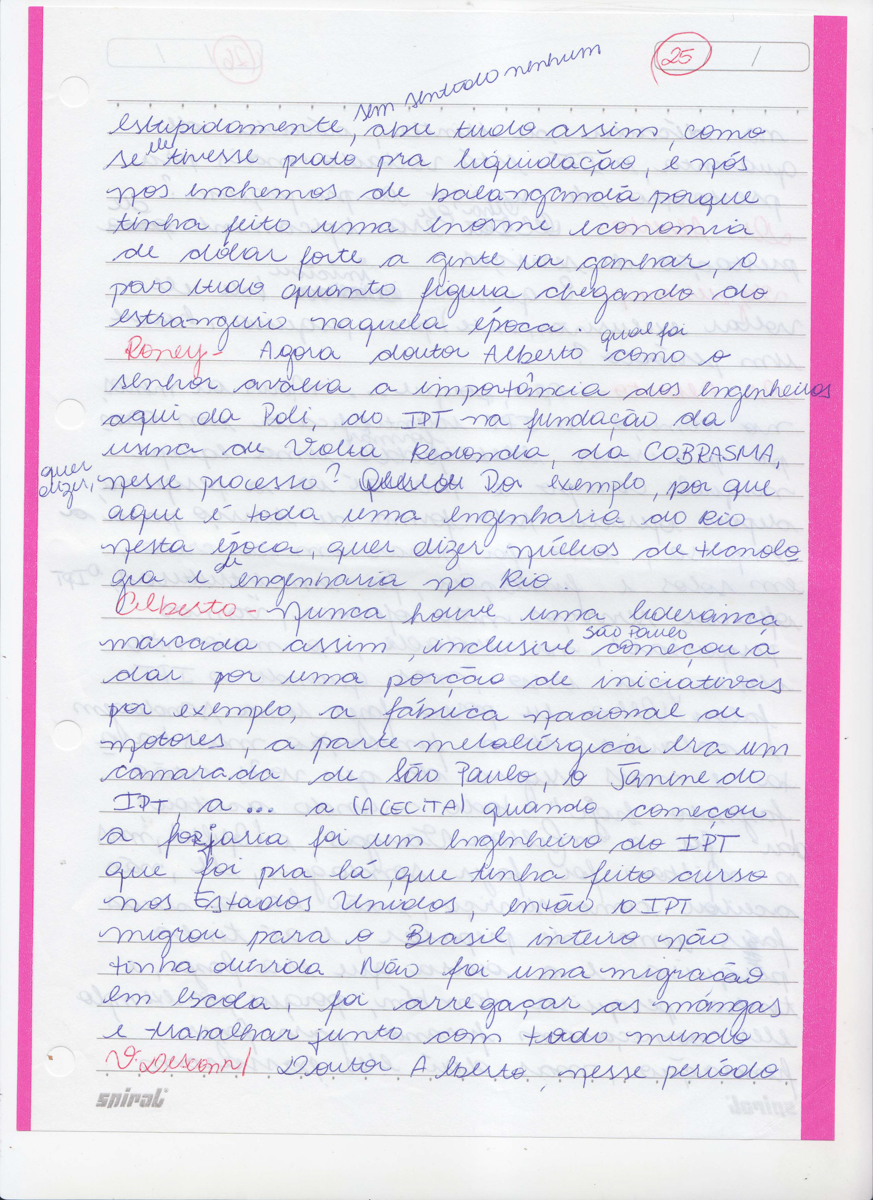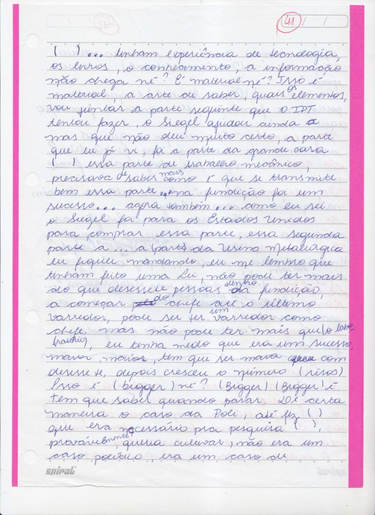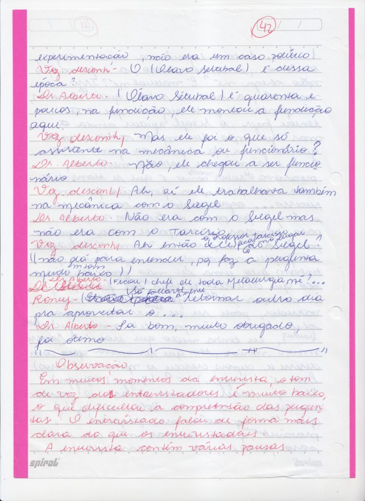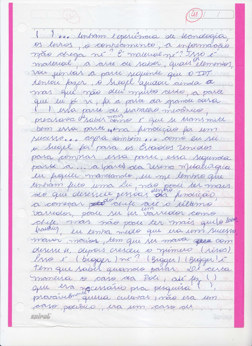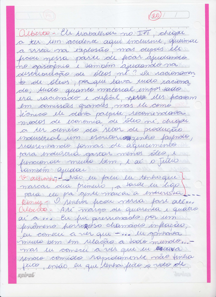 Entrevista com Alberto Pereira de Castro, feita por Roney e Cristiane dos Alves Souza, no centro de memória do IPT.