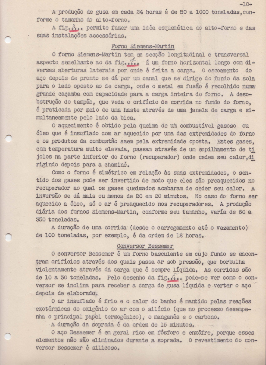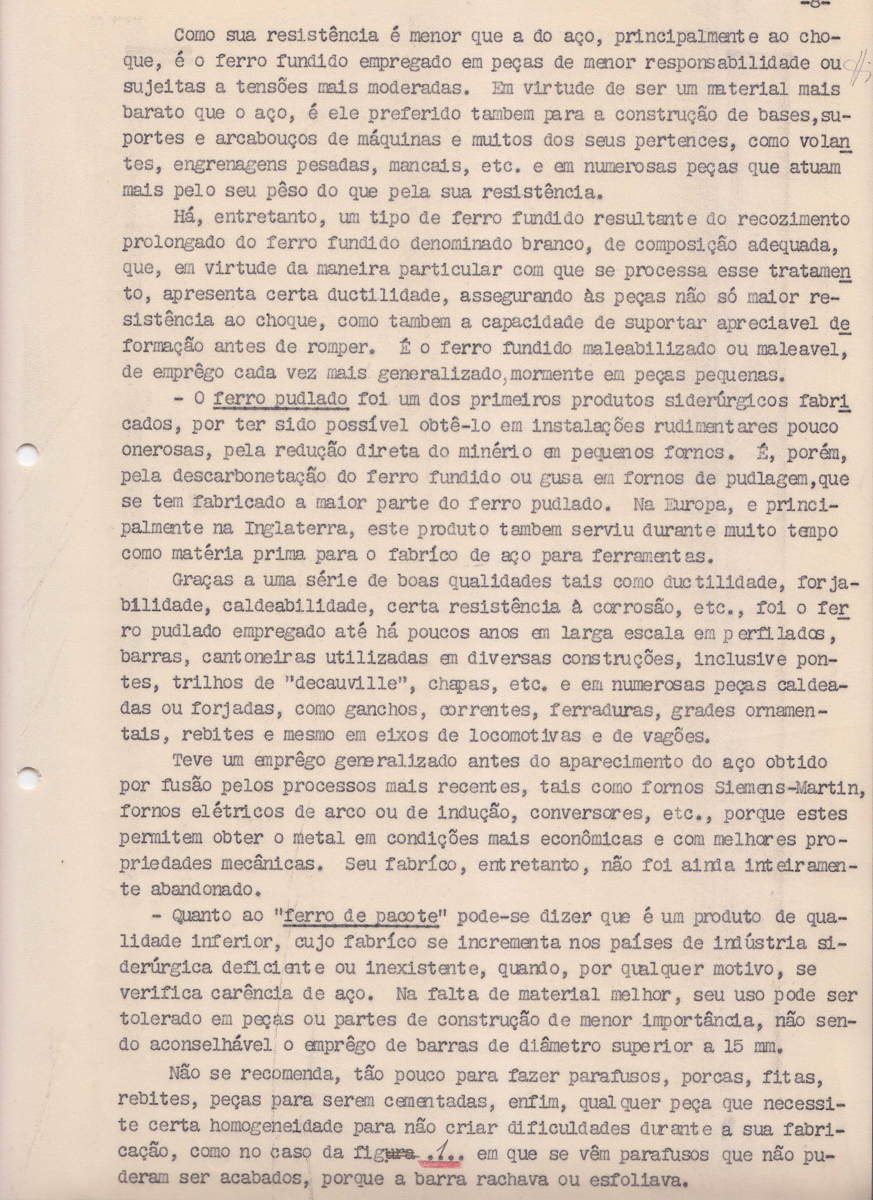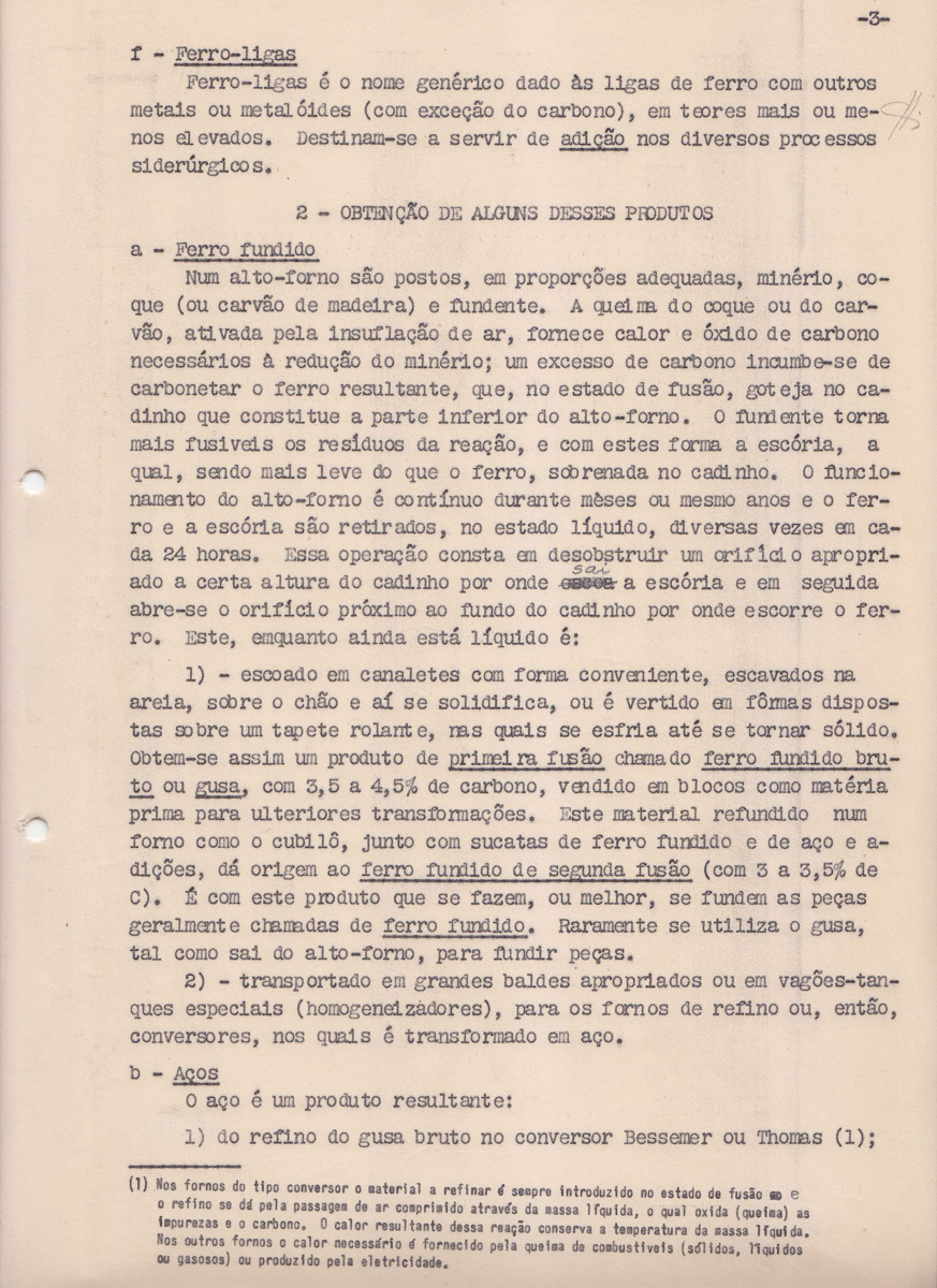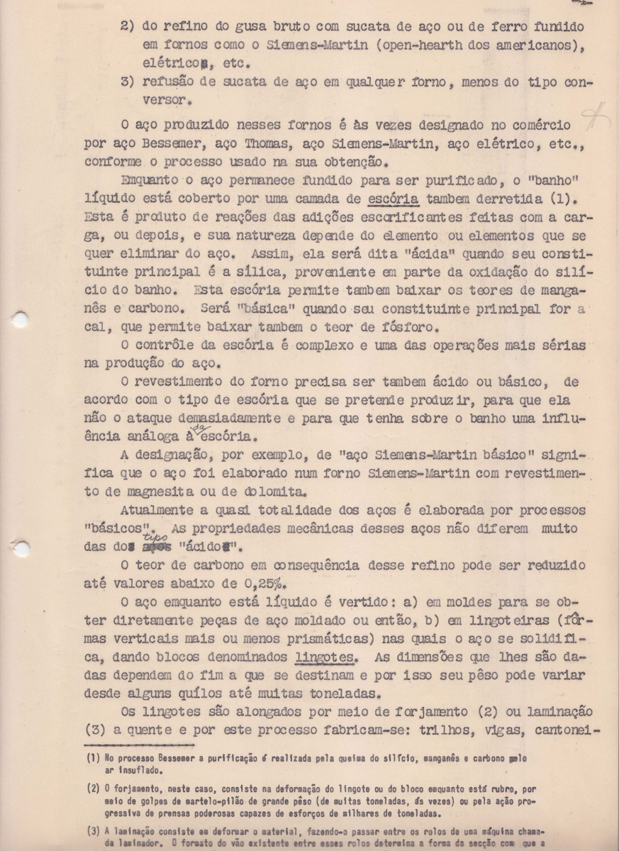 Estudo científico sobre metais (ferro) e processos siderúrgicos, realizado por H. Colpaert. Versão com apontamentos anteriores corrigidos. Não contém ilustrações e fotografias