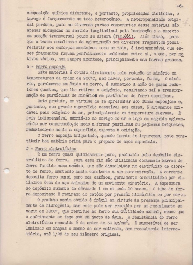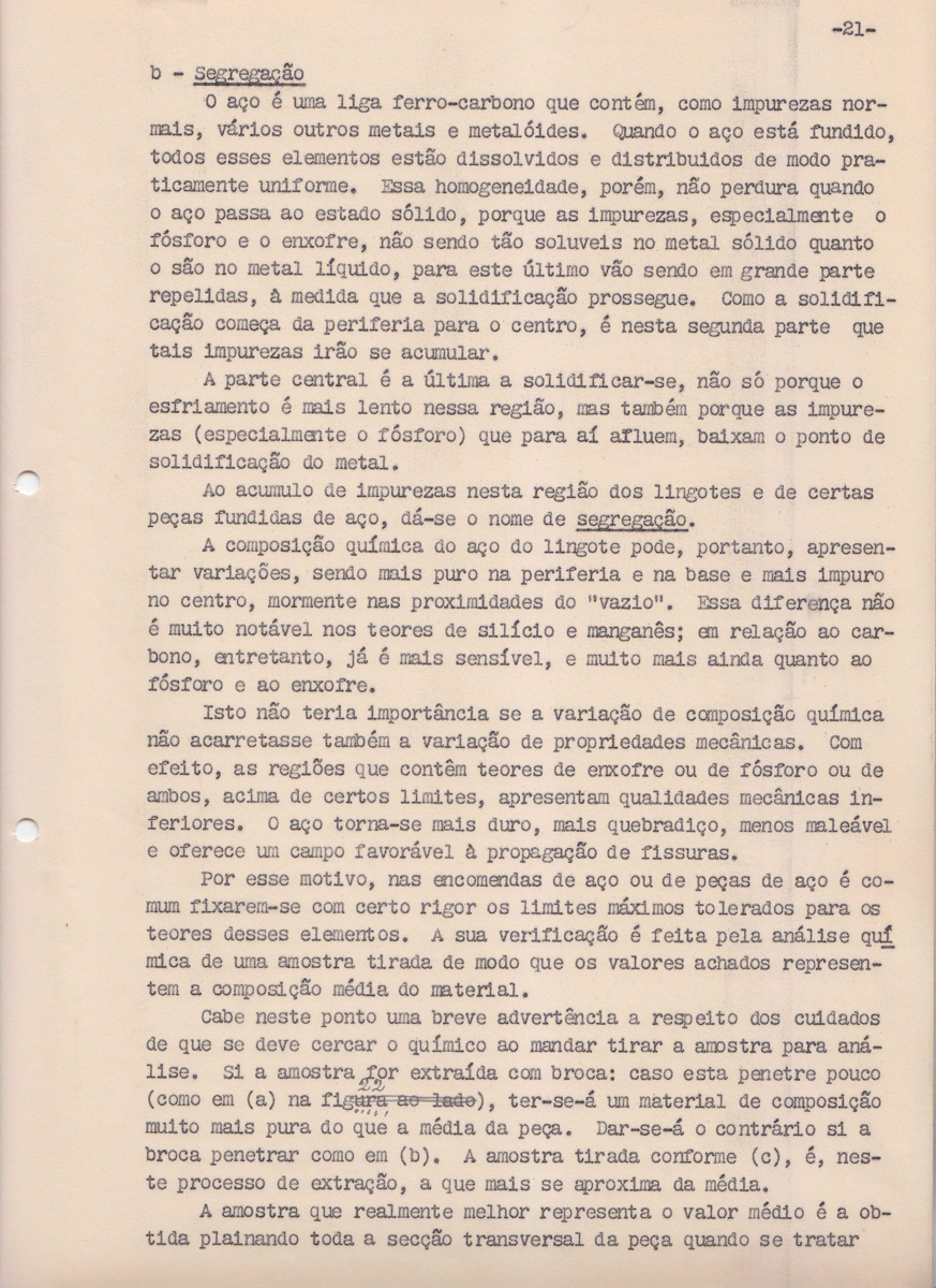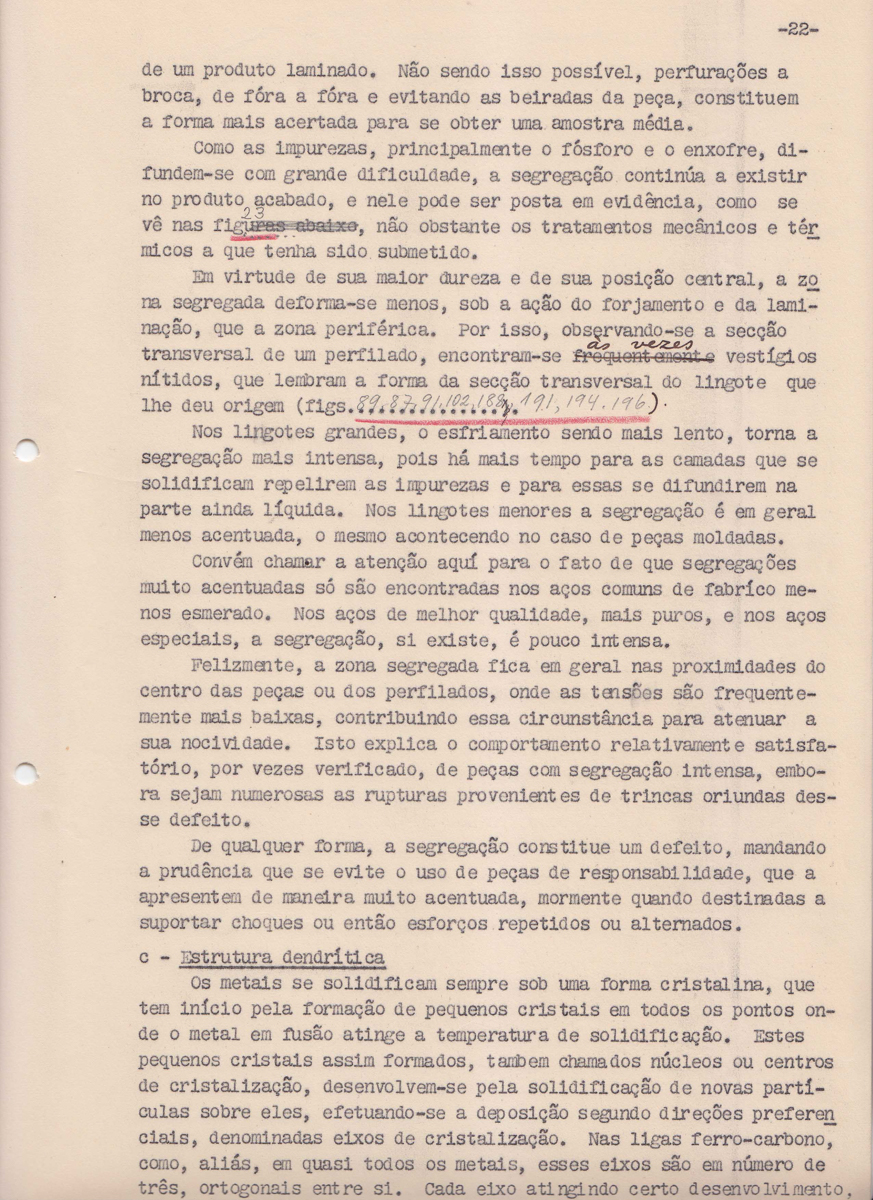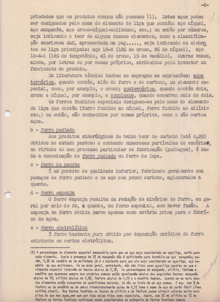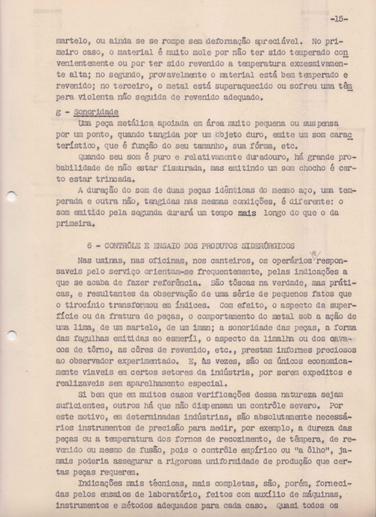 Estudo científico sobre metais (ferro) e processos siderúrgicos, realizado por H. Colpaert. Versão com apontamentos anteriores corrigidos. Não contém ilustrações e fotografias