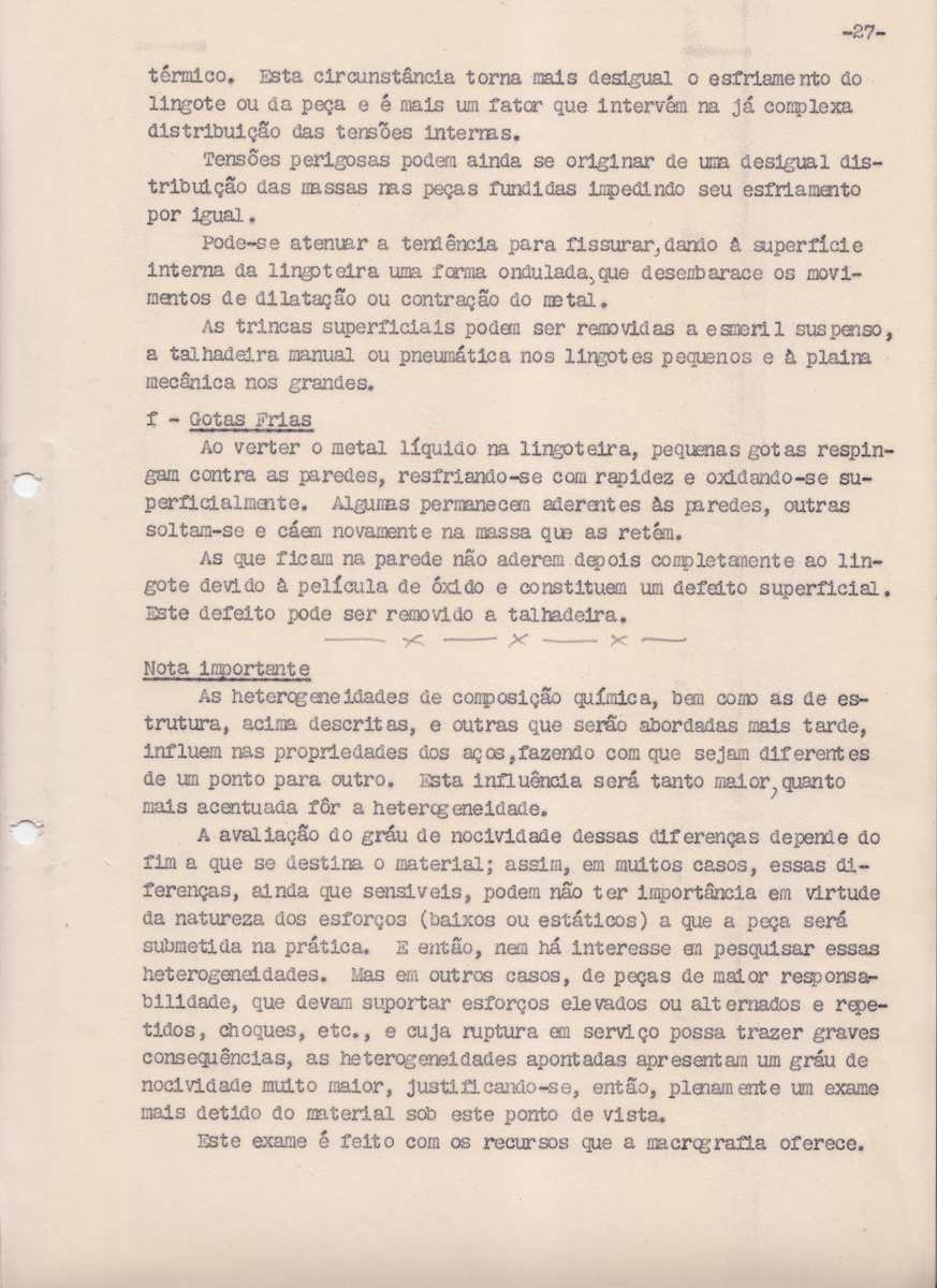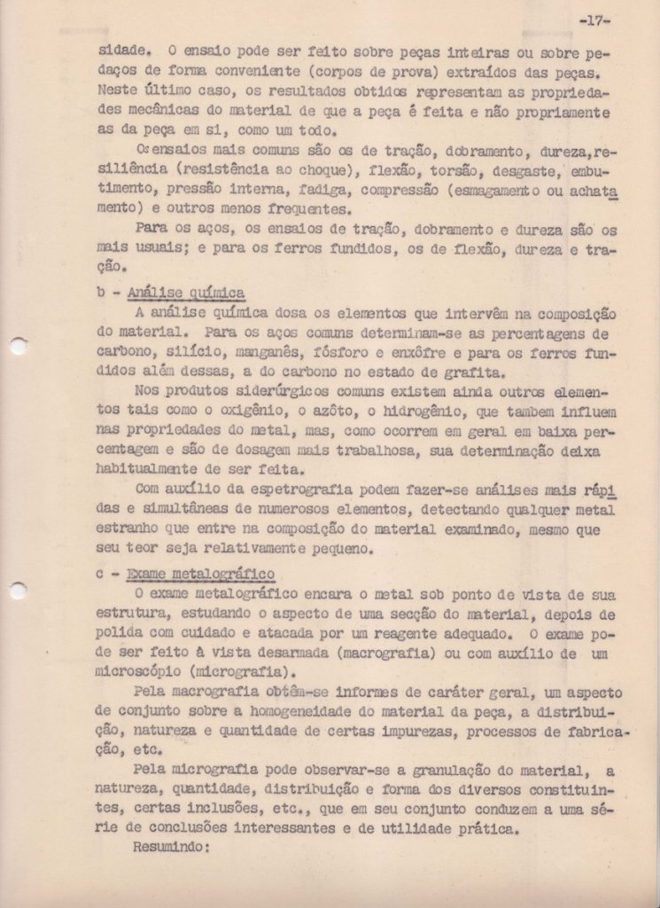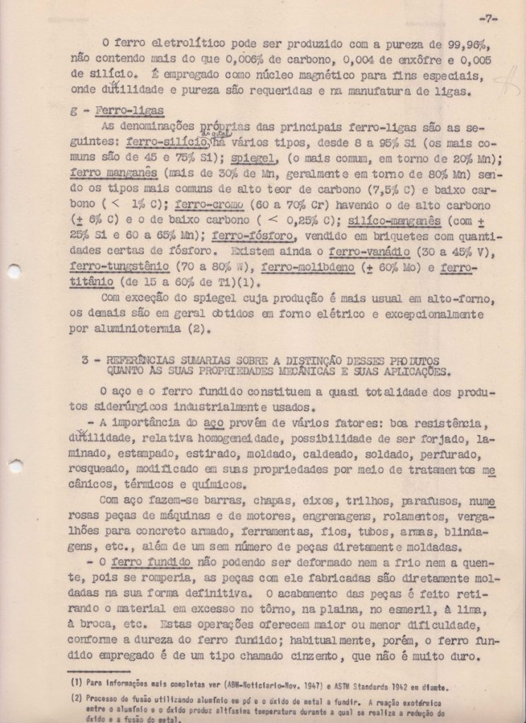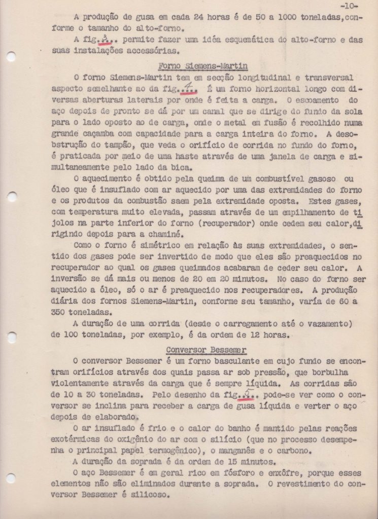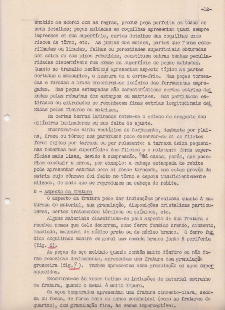 Estudo científico sobre metais (ferro) e processos siderúrgicos, realizado por H. Colpaert. Versão com apontamentos anteriores corrigidos. Não contém ilustrações e fotografias
