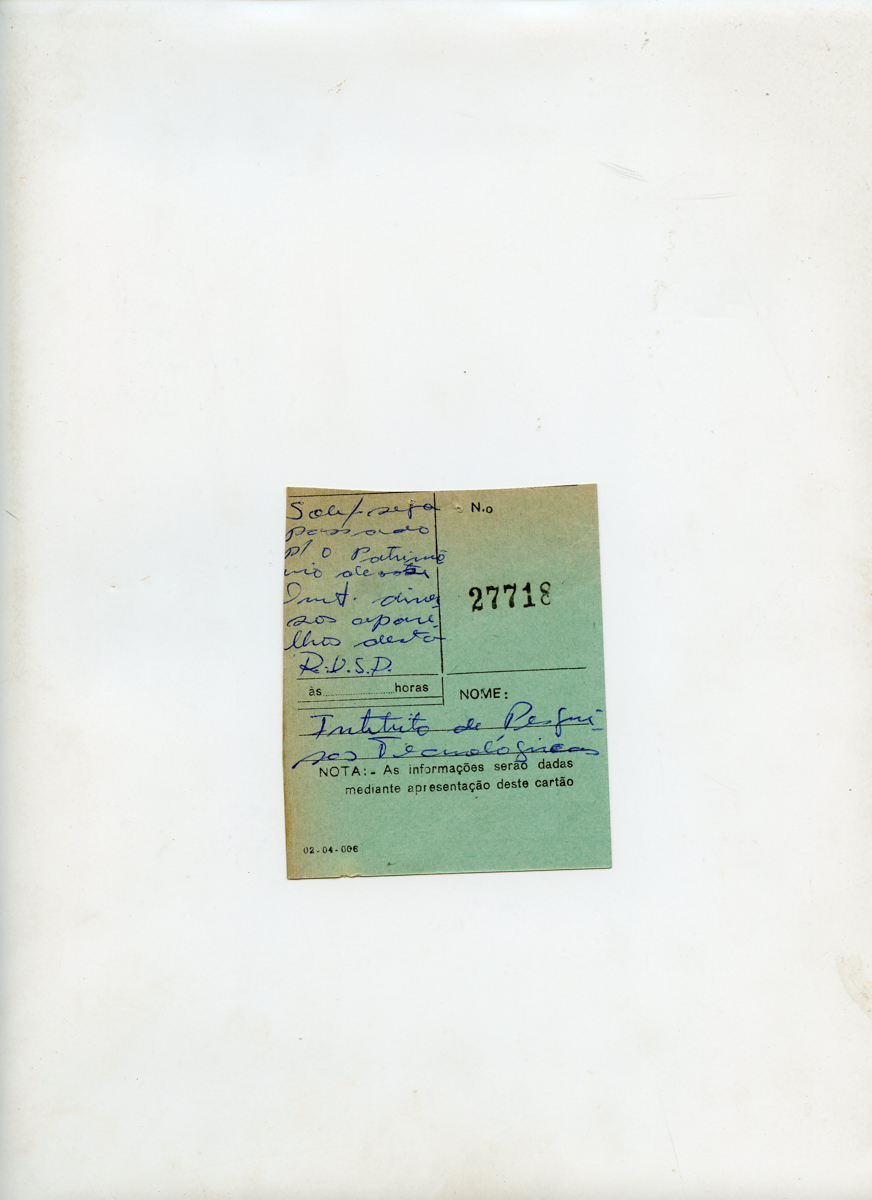 Documentos 01.001.0016.0114_28129 Baixar 01.001.0016.0114_28229 Baixar 01.001.0016.0114_28129 01.001.0016.0114_28229 ApresentaçãoNúmero de registro01.001.0016.0114ConteúdoSolicitação para que sejam passados aparelhos diversos para o patrimônio do IPTGrupoGestão InstitucionalSubgrupoCoordenação e controle de atividadesSérieCartas, correspondências, bilhetes, ofícios e memorandosSuportePapelGêneroTextualData__/__/1966Nível de descriçãoIndividual Metadados TipologiaMemorandoTécnica de registroImpressão | ManuscritoFormatoCartãoQuantidade de documentos1 documentos, 1 itemNúmero de Itens do conjunto001MaterialpapelIdiomaPortuguêsProcedênciaMemória Histórica IPT Conservação Estado de conservaçãoBomAcondicionamentoCaixa Filifold | Caixa poliondas | Papel glassine Item anteriorHistórico Próximo itemMemorando
