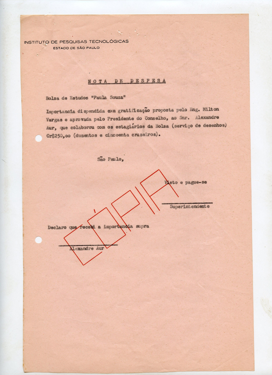 Home Acervo Histórico do Instituto de Pesquisas Tecnológicas Nota de despesa