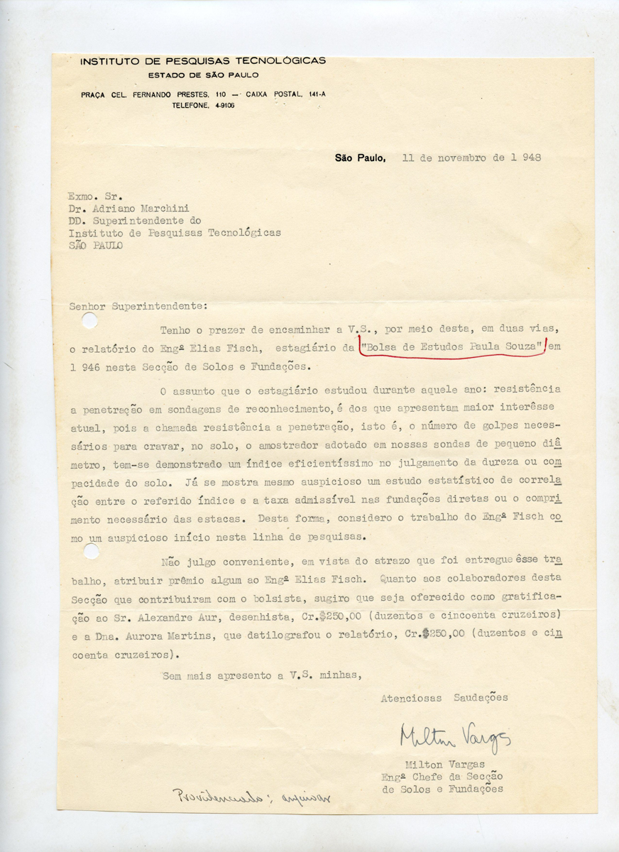 Documentos 01.001.0017.0097 Baixar ApresentaçãoNúmero de registro01.001.0017.0097ConteúdoCorrespondência enviada a Adriano Marchini pelo Eng. Milton Santos relativa a Bolsa de Estudos Paula SouzaGrupoGestão Orçamentária e FinanceiraSubgrupoExecução orçamentária e financeiraSérieCartas, correspondências, bilhetes, ofícios e memorandosSuportePapelGêneroTextualData__/__/1948Nível de descriçãoIndividual Metadados TipologiaOfícioTécnica de registroDatilografiaFormatoFolhaQuantidade de documentos1 documento, 1 folhaNúmero de Itens do conjunto001MaterialpapelIdiomaPortuguêsProcedênciaDAIT - Departamento de Acervo e Informação Tecnológica Conservação Estado de conservaçãoBomAcondicionamentoCaixa Filifold | Caixa poliondas | Papel glassine Item anteriorOfício Próximo itemQuadro de gratificações