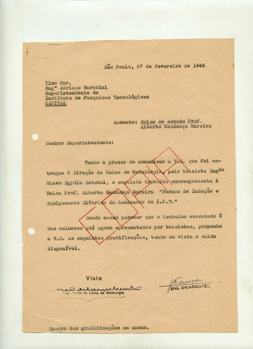 Documentos 01.001.0017.0007 Baixar ApresentaçãoNúmero de registro01.001.0017.0007ConteúdoCorrespondência do eng. Chefe da Usina de Metalurgia a Adriano Marchini sobre trabalho apresentado por Olavo Egydio Setubal correspondente a Bolsa de Estudos Alberto Mendonça Moreira.GrupoGestão Orçamentária e FinanceiraSubgrupoExecução orçamentária e financeiraSérieCartas, correspondências, bilhetes, ofícios e memorandosSuportePapelGêneroTextualData__/__/1946Nível de descriçãoIndividual Metadados TipologiaOfícioTécnica de registroDatilografiaFormatoFolhaQuantidade de documentos1 documento, 1 folhaNúmero de Itens do conjunto001MaterialpapelIdiomaPortuguêsProcedênciaDAIT - Departamento de Acervo e Informação Tecnológica Conservação Estado de conservaçãoBomAcondicionamentoCaixa Filifold | Caixa poliondas | Papel glassine Item anteriorNota de despesa/Informe Próximo itemRecibo
