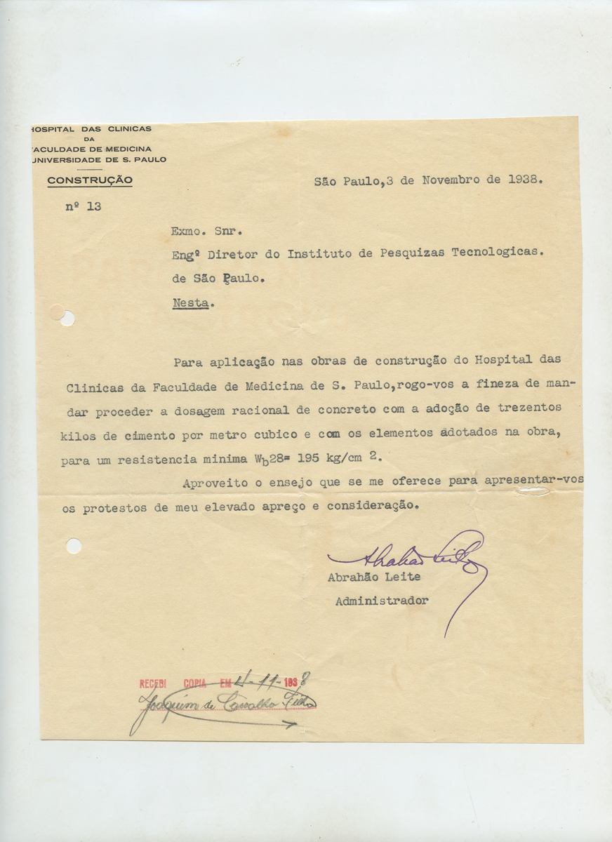 Documentos 01.001.0045.0010 Baixar ApresentaçãoNúmero de registro01.001.0045.0010 | 01.001.0045.0011 | 01.001.0045.0012 | 01.001.0045.0013 | 01.001.0045.0014 | 01.001.0045.0015 | 01.001.0045.0016ConteúdoOfício recebido do Hospital das Clínicas da Faculdade de Medicina de São Paulo referente à obras de construção do mesmo; Ofícios recebidos pela Gustavo Fuechsel Minérios e Metais Químicos sobre análises químicasGrupoGestão InstitucionalSubgrupoRelações InstitucionaisSérieCartas, correspondências, bilhetes, ofícios e memorandosSuportePapelGêneroTextualData__/__/1939 - __/__/1940Nível de descriçãoConjunto Metadados TipologiaOfícioTécnica de registroImpressãoFormatoFolhaQuantidade de documentos7 documentos, 7 folhasNúmero de Itens do conjunto007MaterialpapelIdiomaPortuguêsProcedênciaMemória Histórica IPT Conservação Estado de conservaçãoBomAcondicionamentoCaixa Filifold | Caixa poliondas | Papel glassine Itens deste conjunto Mídias dos conjuntosConjunto de itens Ver todos os 7 itens relacionados Item anteriorCarta/Bilhete Próximo itemCarta Outros itens deste Grupo Relatório Deliberação Deliberação Deliberação