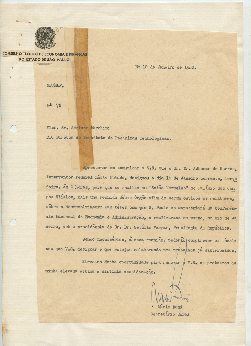 Documentos 01.001.0046.0163 Baixar ApresentaçãoNúmero de registro01.001.0046.0163 | 01.001.0046.0164 | 01.001.0046.0165 | 01.001.0046.0166 | 01.001.0046.0167 | 01.001.0046.0168 | 01.001.0046.0169ConteúdoOfícios referentes ao Conselho Técnico Econômico e de Finanças do Palácio do Governo; Contém Ata da Conferência Nacional de Economia e AdministraçãoGrupoGestão InstitucionalSubgrupoRelações InstitucionaisSérieCartas, correspondências, bilhetes, ofícios e memorandosSuportePapelGêneroTextualData__/__/1940Nível de descriçãoConjunto Metadados TipologiaOfícioTécnica de registroImpressãoFormatoFolhaQuantidade de documentos7 documentos, 22 folhasNúmero de Itens do conjunto007MaterialpapelIdiomaPortuguêsProcedênciaMemória Histórica IPT Conservação Estado de conservaçãoBomAcondicionamentoCaixa Filifold | Caixa poliondas | Papel glassine Itens deste conjunto Mídias dos conjuntosConjunto de itens Ver todos os 7 itens relacionados Item anteriorEscritura Próximo itemCarta/Ofício Outros itens deste Grupo Relatório Deliberação Deliberação Deliberação