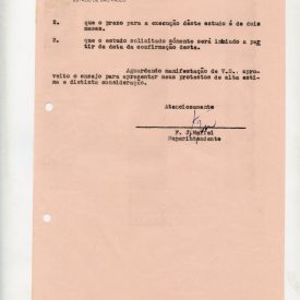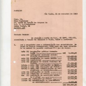Documentos 01.001.0112.0611_28129 Baixar 01.001.0112.0611_28229 Baixar 01.001.0112.0611_28129 01.001.0112.0611_28229 ApresentaçãoNúmero de registro01.001.0112.0611ConteúdoOrçamento, enviado do Superintendente F. J. Maffei a Gino Guarniero, DD. Chefe da Secção de Compras da S.A. I. R. F. Matarazzo, feito a partir da consulta da Secção de Celulose e Papel do IPTGrupoMemória InstitucionalSubgrupoMemória da ciênciaSérieDossiêsSuportePapelGêneroTextualData[11/12/1963]Nível de descriçãoIndividual Metadados TipologiaOrçamentoTécnica de registroDatilografiaFormatoFolhaQuantidade de documentosA4, 2 folhasNúmero de Itens do conjunto001MaterialpapelIdiomaPortuguêsProcedênciaMemória Histórica IPT Conservação Estado de conservaçãoBomOutros aspectos físicosApresenta furos e corrosãoAcondicionamentoCaixa Filifold | Papel glassine Item anteriorCarta Próximo itemCarta