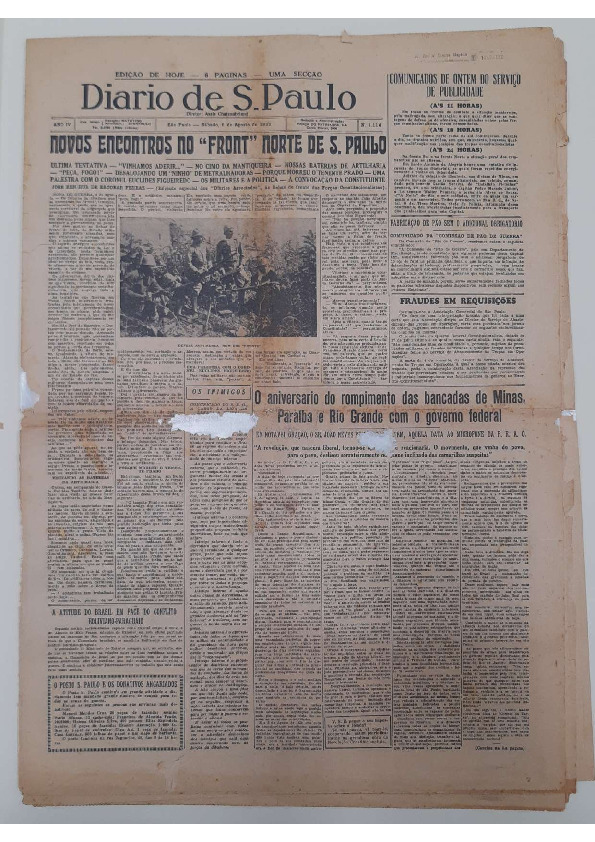 Diario de S.Paulo Ano IV. Numero 1118. 10 de Agosto de 1932. 4 páginas.
