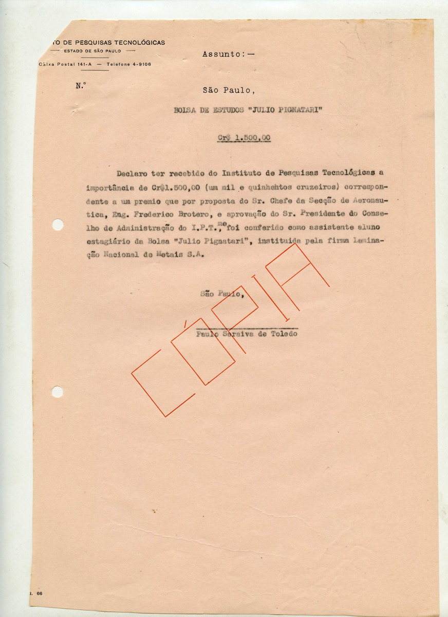 Documentos 01.001.0017.0146 Baixar ApresentaçãoNúmero de registro01.001.0017.0146 | 01.001.0017.0147ConteúdoDeclarações de recebimento de certas importâncias por Paulo Saraiva de Toledo e João Paulo Dias relativas a Bolsa de Estudos José Thomaz JuniorGrupoGestão Orçamentária e FinanceiraSubgrupoExecução orçamentária e financeiraSérieCertificados, recibos e manuaisSuportePapelGêneroTextualDataSem dataNível de descriçãoConjunto Metadados TipologiaReciboTécnica de registroDatilografiaFormatoFolhaQuantidade de documentos2 documentos, 2 folhasNúmero de Itens do conjunto002MaterialpapelIdiomaPortuguêsProcedênciaDAIT - Departamento de Acervo e Informação Tecnológica Conservação Estado de conservaçãoBomAcondicionamentoCaixa Filifold | Caixa poliondas | Papel glassine Itens deste conjunto Mídias dos conjuntosConjunto de itens Ver todos os 2 itens relacionados Item anteriorCorrespondência Próximo itemDemonstrativo de conta Outros itens deste Grupo Orçamento Proposta orçamentaria Proposta orçamentaria Orçamento