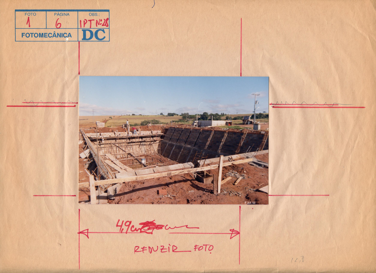 Poeira excessiva pela passagem de veículo sobre camada de partículas soltas de solos finos não coesivos, neste caso, solo soprolítico de nilito (Município de Itú -SP - DMGA); Seu Luiz, Petrologia (DMGA); Sapata Dinanométrica para Medição de Força de Freagem em vagões Ferroviários - Versão 1997 do projeto desenvolvido em 1982; Ensaios subaquáticos; Resultado do ensaio de visualização das linhas de fluxo no Tanque de Provas da Naval; Ilustração de Usina flutuante Babaçu (Naval); Ilustração de usina flutuante atracada ao cais flutuante e comboio bancaça - empurrador em viagem (Babaçu - Naval); Ensaios em laboratório do Departamento de Química; Imagens de funcionários da Naval IPT navegando em canoas; Edificações em construção; Estudo comparativo entre dois tipos de cobertura; Estabilômetro - equipamento para ensaio de materiais, para construção de estradas, aeroportos etc. (DEC); Diferentes tipo de tijolos de construção; Conjunto habitacional; Highways: Loopholib of Tunnel Excavated in Sanostone/ Emboque Norte do túnel 5V escavado em arenitos da Formação Pirambóia Central do Paraná; Trabalho em buraco escavado em via pública; Equipamentos e produtos químicos em laboratório; Equipamento realizando ensaio de pressão do tampo; Equipamentos dinanômetros em laboratório de Franca; Ensaio de arrancamento de estacas testes em Carapeba, com Instrumentação Submersa, para obtenção de subsídeos no projeto das plataformas a serem instaladas no Polo Nordeste da Bacia de Campos (DEC); Metanol - Agrupamento de segurança - Homem segurando mangueira de abastecimento de combustível em posto de gasolina da empresa "Shell" (Jornal Importante nº 15/novembro 1990); Imagem de obra em construção; Prova de carga em laje de concreto armado de edifício, com área carregada de aproximadamente 1.000m², em Santo André - SP, 1999; Controlador de semáforo utilizado pelo DEI, na Rua Pamplona - SP; Protótipo de habitação popular, com paredes constituídas de painéis de argamassa à base de escória de alto forno, reforçada com fibras (Divisão de Construção Civil); Fotografias de casas com placas contendo descrições "Sistema Garamelo de Habitação I" e "Sistema Construtivo Travablocos" (DEC - Ensaios de telha).