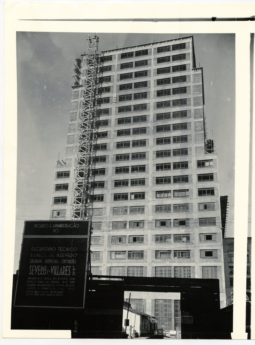 Imagem de funcionários trabalhando em obra em área externa; Imagem de ponte/Manutenção preventiva em ponte; Imagem de prédio em construção; Imagens de imóveis, com detalhes para janelas e vitrais; Estrutura de obra; Vista de edifício em construção pelo Escritório Técnico Ramos de Azevedo - Engenharia - Arquitetura - Construções - Severo e Villares S/A