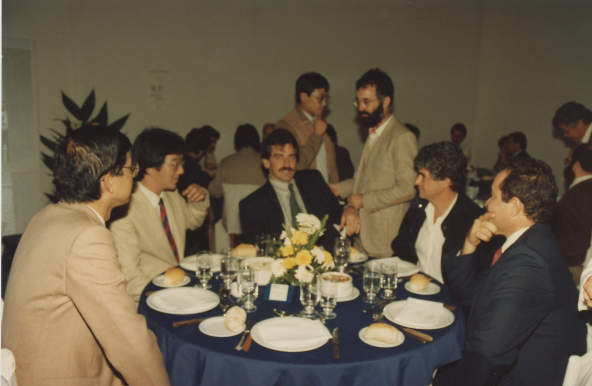 99 FOTOS - Fotos + slides Jica/ 80 anos de imigração japonesa IPT. 99 fotos (Fotos encaixadas em papel cartão com abertura para moldura. 14 cartões com 3 fotos em cada, total de 42 fotos mais 7 fotos avulsas, total de 49) . Não contém slides). Fotos 1 a 3 – 13x9cm. Coloridas. Almoço. Confraternização. “Despedida do cônsul Norio. 27/05/87”. Folha 1. Maio de 1987. Fotos 4 a 6 - 13x9cm. Coloridas. Almoço. Confraternização. “Despedida do cônsul Norio. 27/05/87”. Folha 2. Maio de 1987. Fotos 7 e 8 - 13x9cm. Coloridas. Pessoas em oficina prática. “Curso cerâmica 1989”. Folha 3. 1989. Fotos 9 e 10 - 13x9cm. Coloridas. Pessoas acompanham aula. “Curso cerâmica 1989”. Folha 4. 1989. Fotos 11 e 12 - 13x9cm. Coloridas. Homens em bancada de abertura de congresso. “Curso cerâmica 1989”. Folha 5. 1989. Fotos 13 e 14 - 13x9cm. Coloridas. Pessoas acompanham aula e mulher cumprimenta outra mulher em mesa de congresso. “Curso cerâmica 1989”. Folha 6. 1989. Foto 15 - 13x9cm. Coloridas. Homens em bancada de abertura de congresso. “Curso cerâmica 1989”. Folha 7. 1989. Fotos 16 a 18 - 13x9cm. Coloridas. Homens em bancada de abertura de congresso. Pessoas assistindo aula. Aula prática de oficina. “Curso cerâmica 1989. Jica”. Folha 8. 1989. Fotos 19 a 21 – 13x9cm. Coloridas. Fotos do almoço de confraternização. “Almoço despedida do consul Norio Kovaguchi. 27/05/87”. Folha 9. Maio de 1987. Fotos 22 e 23 – 13x9cm. Coloridas. Homenagem e despedida. “Encerramento do II curso de cerâmica IPT Jica. Hotel Nikkey. 30/06/89”. Folha 10. Junho de 1989. Fotos 24 e 25 – 13x9cm. Coloridas. Visita e aula. “Visita Dimet. Prof. Matsubala. 1991”. Folha 11. 1991. Fotos 26 e 27 - 13x9cm. Coloridas. Aulas. “Curso de cerâmica. Jica. 88”. Folha 12. 1988. Fotos 28 e 29 - 13x9cm. Coloridas. Aulas. “Curso de cerâmica. Jica. Dezembro 88”. Folha 13”. Dezembro de 1988. Fotos 30 a 32 - 13x9cm. Coloridas. “Visita DIMET. Matsubara 1991”. Folha 14. 1991. 7 fotos avulsas de funcionários no IPT e fora de fins de 1980 e inicio de 1990. 5 FOTOS - Foto 1 – 18x12cm. P&B. Homens se cumprimentam em sala de reunião. Verso: “Nabner Celestino. Jul/92”. Junho de 1992. Foto 2 – 18x12cm. P&B. Pessoas em sala de reuniões. Foto 3 – 25x9cm. Colorido. Pessoas posam para foto em estação de esqui. Verso: 13.03.93.Nagano. Maculo, Rosária e Itigo.3”. Março de 1993. Foto 4 – 18x12cm. P&B. Homens plantam muda de arvore. Verso: “Jaika. 15/12/92”. Dezembro de 1992. Foto 5 – 24x18cm. P&B. Homens posam em volta de muda plantada. Verso: “ Jaiica 15/12/92”. Dezembro de 1992. Dimensão (cm): 18x12 / 18x12 / 25x9 / 18x12 / 24x18.E mais 60 fotos referentes ao evento IPT 80 anos.