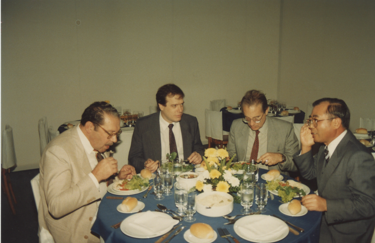 99 FOTOS - Fotos + slides Jica/ 80 anos de imigração japonesa IPT. 99 fotos (Fotos encaixadas em papel cartão com abertura para moldura. 14 cartões com 3 fotos em cada, total de 42 fotos mais 7 fotos avulsas, total de 49) . Não contém slides). Fotos 1 a 3 – 13x9cm. Coloridas. Almoço. Confraternização. “Despedida do cônsul Norio. 27/05/87”. Folha 1. Maio de 1987. Fotos 4 a 6 - 13x9cm. Coloridas. Almoço. Confraternização. “Despedida do cônsul Norio. 27/05/87”. Folha 2. Maio de 1987. Fotos 7 e 8 - 13x9cm. Coloridas. Pessoas em oficina prática. “Curso cerâmica 1989”. Folha 3. 1989. Fotos 9 e 10 - 13x9cm. Coloridas. Pessoas acompanham aula. “Curso cerâmica 1989”. Folha 4. 1989. Fotos 11 e 12 - 13x9cm. Coloridas. Homens em bancada de abertura de congresso. “Curso cerâmica 1989”. Folha 5. 1989. Fotos 13 e 14 - 13x9cm. Coloridas. Pessoas acompanham aula e mulher cumprimenta outra mulher em mesa de congresso. “Curso cerâmica 1989”. Folha 6. 1989. Foto 15 - 13x9cm. Coloridas. Homens em bancada de abertura de congresso. “Curso cerâmica 1989”. Folha 7. 1989. Fotos 16 a 18 - 13x9cm. Coloridas. Homens em bancada de abertura de congresso. Pessoas assistindo aula. Aula prática de oficina. “Curso cerâmica 1989. Jica”. Folha 8. 1989. Fotos 19 a 21 – 13x9cm. Coloridas. Fotos do almoço de confraternização. “Almoço despedida do consul Norio Kovaguchi. 27/05/87”. Folha 9. Maio de 1987. Fotos 22 e 23 – 13x9cm. Coloridas. Homenagem e despedida. “Encerramento do II curso de cerâmica IPT Jica. Hotel Nikkey. 30/06/89”. Folha 10. Junho de 1989. Fotos 24 e 25 – 13x9cm. Coloridas. Visita e aula. “Visita Dimet. Prof. Matsubala. 1991”. Folha 11. 1991. Fotos 26 e 27 - 13x9cm. Coloridas. Aulas. “Curso de cerâmica. Jica. 88”. Folha 12. 1988. Fotos 28 e 29 - 13x9cm. Coloridas. Aulas. “Curso de cerâmica. Jica. Dezembro 88”. Folha 13”. Dezembro de 1988. Fotos 30 a 32 - 13x9cm. Coloridas. “Visita DIMET. Matsubara 1991”. Folha 14. 1991. 7 fotos avulsas de funcionários no IPT e fora de fins de 1980 e inicio de 1990. 5 FOTOS - Foto 1 – 18x12cm. P&B. Homens se cumprimentam em sala de reunião. Verso: “Nabner Celestino. Jul/92”. Junho de 1992. Foto 2 – 18x12cm. P&B. Pessoas em sala de reuniões. Foto 3 – 25x9cm. Colorido. Pessoas posam para foto em estação de esqui. Verso: 13.03.93.Nagano. Maculo, Rosária e Itigo.3”. Março de 1993. Foto 4 – 18x12cm. P&B. Homens plantam muda de arvore. Verso: “Jaika. 15/12/92”. Dezembro de 1992. Foto 5 – 24x18cm. P&B. Homens posam em volta de muda plantada. Verso: “ Jaiica 15/12/92”. Dezembro de 1992. Dimensão (cm): 18x12 / 18x12 / 25x9 / 18x12 / 24x18.E mais 60 fotos referentes ao evento IPT 80 anos.