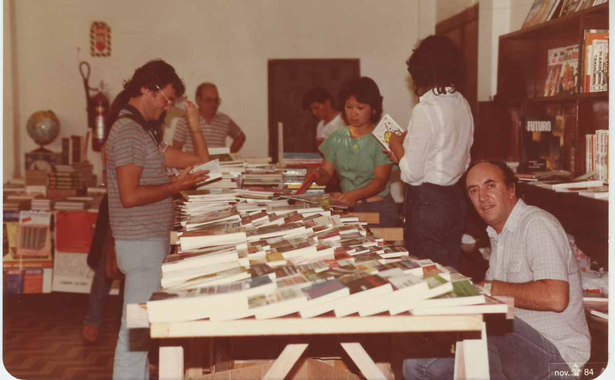 Documentos 01.002.0017.0030 Baixar ApresentaçãoNúmero de registro01.002.0017.0030Conteúdo32 FOTOS - Fotos 1 a 31 - 13x8cm. Coloridas. Expositores e autores interagem com público em feira do livro no saguão Adriano Marchin. Há autógrados, apresentação de coral e falas e stands.GrupoMemória InstitucionalSubgrupoMemória da ciênciaSérieRegistros fotográficosSuporteFotografiaGêneroIconográficoDataSem dataDimensão13x18 cmNível de descriçãoIndividual Metadados TipologiaRegistro fotográficoTécnica de registroFotografia analógicaFormatoAmpliação fotográficaNúmero de Itens do conjunto001IdiomaPortuguêsProcedênciaMemória Histórica IPT Conservação Estado de conservaçãoBomAcondicionamentoCaixa Filifold | Papel glassine Item anteriorRegistro fotográfico Próximo itemRegistro fotográfico