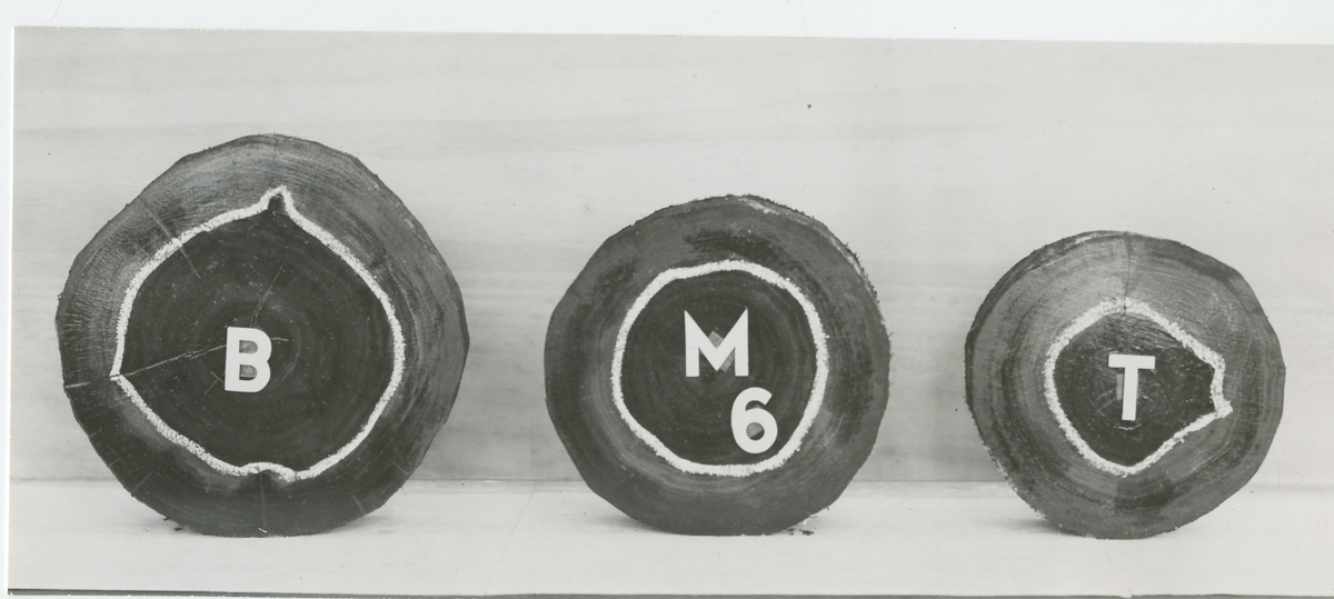 138 FOTOS. (+19 cópias). Foto 1 – Revelação de negativo. Linha horizontal. 4 imagens de um mesmo homem. Frente “Kodak 5063TX” P&B. 15,5x5,5cm. Foto 2 – Equipamento. Verso: “Foto. CR22. Ensaios Físicos e mecânicos. Maquina para ensaios. Pm-b”. P&B. 16x11cm. Foto 3 – Equipamento de vidro. Verso: “ 980”. P&B. 17x10,5cm. Foto 4 – Amostra vista de 4 formas. Frente: “ nº3”. Verso: “ Corpo de prova. Cenexos (?), para certificado oficial. 962”. P&B. 15x11cm. Foto 5 – 17x9cm. P&B. Amostra de 3 cortes de tronco. Verso: “964”. Foto 6 – 17x8cm. P&B. 5 amostras de madeira. Verso: “Foto. Corpo de provas. Expostos ao ataque de cupins (certificação de Brumosa (?)) Sr. Preservação de Mader. 963”. Foto 7 – 15x11cm. P&B. Duas peças de madeira. Frente: “1.2.S3”. Verso: “ 1004”. Foto 8 - 15x11cm. P&B. Duas peças de madeira. Frente: “1.2.D1”. Verso: “ 1005”. Foto 9 - 15x11cm. P&B. Duas peças de madeira. Frente: “1.2.D2”. Verso: “ 1006. Foto. Ensaio combustibilidade solidor E.Divisão.”. Foto 10 – 15x11cm. P&B. Duas peças de madeira. Frente: “1.2.D3”. Verso: “ 1007”. Foto 11 – 16,5x11cm. P&B. Três amostras de madeira. Verso: “Foto Corpo de prova anexo – (ensaio de cupim / luler(?).duratex s/a. 1008”. Foto 12 - 16,5x11cm. P&B. Três amostras de madeira. Frente: 1.7.0”. Verso: “Foto. Ensaio de atacabilidade de cupins. Ilegível. 1009”. Foto 13 - 16,5x11cm. P&B. Quatro amostras de madeira. Frente: “2.6.7.8”. Verso: “Foto 1010”. Foto 14 - 16,5x11cm. P&B. Três amostras de madeira. Frente: “5.6.8”. Verso: “Foto. Ensaio de atacabilidade de cupins. Ilegível. 1011”. Foto 15 - 16,5x11cm. P&B. Três amostras de madeira. Frente: 2.4.9”. Verso: “Foto. Ensaio de atacabilidade de cupins. Ilegível. 1012”. Foto 16 - 16,5x11cm. P&B. Quatro amostras de madeira. Frente: “1.2.5.7”. Verso: “Foto 1013”. Foto 17 - 16,5x11cm. P&B. Quatro amostras de madeira. Frente: “2.3.4.6”. Verso: “Foto ensaio sobre resistência a cupim. Ilegível. Duratex s/a. 1014. 1”. Foto 18 - 16,5x11cm. P&B. Quatro amostras de madeira. Frente: “1.8.5.7”. Verso: “1015”. Foto 19 - 16,5x11cm. P&B. Seis amostras de madeira. Frente: “1/J-T. 2/J-T. 3/J-F. 6/J-F. 3/J-Bb. 6/J-Bb. ”. Verso: “1018”. Foto 20 – Cópia da foto 19. Foto 21 - 16,5x11cm. P&B. Seis amostras de madeira. Frente: “1/C-T. 2/C-T. 1/1C-F. 2/1C-F. 1/1C-B. 2/1C-B”. Verso: “1017”. Foto 22 - 16,5x11cm. P&B. Seis amostras de madeira. Frente: “1/2C-B. 2/2C-B. 1/2C-F. 2/2C-F. 1/2C-T. 2/2C-T.”. Verso: “Foto. Corpo de provas atacado por cupins ent. Duratex s/c” 1016. 3 ilegível. Foto 23 - 16,5x11cm. P&B. Quatro amostras de madeira. Frente: “1.8.5.7”. Verso: “Foto Ensaio ilegível. 1015”. Foto 24 – 16x10cm. P&B. Três amostras de madeira. Frente: “S-1. S-2. S-3”. Verso: “Corpos de provas atacados por cupins. Duratex. 1019. 15-9-70”. Data provável: 15-9-1970. Foto 25 - 16x10cm. P&B. Três amostras de madeira. Frente: “B-1. B-2. B-3.”. Verso: “Foto corpos de provas atacados por cupins. 1020. Ilegível. 10-9-70”. Data provável: 15-9-1970. Foto 26. Cópia foto 25. Foto 27 – 16x10cm. P&B. Três amostras de madeira. Frente: “T-1. T-2. T-3.”. Verso: “1021.”. Foto 28 - 16x10cm. P&B. Três amostras de madeira. Frente: “4217/8. 4217/7. 421/9”. Verso: “Foto ensaio de atacabilidade de cupins. 1022. Ilegível. Duratex s/a”. Foto 29 – 16x10cm. P&B. Três amostras de madeira. Frente: “421/1. 4217/2. 4217/6. Verso: “Foto Ensaio de atacabilidade de cupins. 1023. Ilegível. Duratex s/a”. Foto 30 – 16x10cm. P&B. Três amostras de madeira. Frente: “421/3. 4217/4. 4217/8”. Verso: “Foto Ensaio de atacabilidade de cupins. 1024. Ilegível. Duratex s/a”. Foto 31 – Cópia da foto 30. Foto 32 – 16x10cm. P&B. Três amostras de madeira. Frente: “B.M.T” Verso: “Foto Poste para ensaio de penetração de preservativos. 1025”. Foto 33 – Cópia foto 32. Foto 34 – 15x7cm. P&B. Quatro frascos de vidro com tampas com amostras. Verso: “Foto conjunto de frascos contendo material atacado. Ensaio placa 5aa. MD. 951”. Foto 35 – 16x10cm. P&B. Dezesseis amostras. Frente: “1.2”. Verso: “ D.m. 950. Foto conjunto de placa Petri. Ensaio de tintas. Resistência de bolory(?). Paca prema s/a”. Foto 36 – 17x10. P&B. Doze amostras. Frente: “ Testemunhas. Extrato. Polyporus fumosus. Fomes connatus. Lenzites trabea. 1.2”. Verso: “957. Estrtativos de madeira com atividades antifúgicas [sic]”. Foto 37 – Cópia da foto 36. Foto 38 – Cópia da foto 36. Foto 39 – 17x9cm. P&B. Seis amostras. Frente: “Polyporus Fumosus. Fomes Cannatus. Lenzites Trabea. Extrato. Testemunhas”. Verso: Foto 958. Progeto [sic] sobre estudos de estudos de extrativos com atividade antifúngica”. Foto 40 – 17x9cm. P&B. Seis amostras. Frente: “Polyporus Fumosus. Fomes Cannatus. Lenzites Trabea. Extrato. Testemunhas”. Verso: “Foto 959”. Foto 41 – Cópia foto 40. Foto 42 – 17x9cm. P&B. Seis amostras. Frente: “Polyporus Fumosus. Fomes Cannatus. Lenzites Trabea. Extrato. Testemunhas”. Verso: “Foto 956”. Foto 43 – 16x10cm. P&B. Nove amostras. Frente” 1.2.Testemunhas.Polyporus fumosus. Fomes Connatus. Lenzites Straita”. Verso: “960. Foto. Estrativos de madeira com atividade autifugica [sic]”. Foto 44 – Cópia da foto 43. Foto 45 – 16x10cm. Quatro amostras. Frente: “Lenzites trabea. Fomes connatus. Polyporus fumosus. Extrato. Testemunhas”. Verso “961”. Foto 46 – Cópia da foto 45. Foto 47 – 16x10,5cm. Doze amostras. Frente: “Lenzites trabea. Fomes connatus. Plyporus fumosus”. Verso: “Foto ensaio biológico de estrato de madeira. (Progeto [sic] autifingicos de madeira nacional. Extrativo de madeiras. 1031”. Foto 48. 16x10,5cm. P&B. Sete amostras. Verso: “Foto. Ensaio de resistência ao ataque de cupins. Relatório de Duratex s/a. S madeira. 983”. Foto 