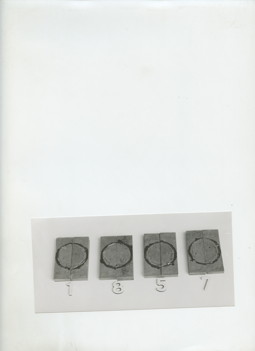 138 FOTOS. (+19 cópias). Foto 1 – Revelação de negativo. Linha horizontal. 4 imagens de um mesmo homem. Frente “Kodak 5063TX” P&B. 15,5x5,5cm. Foto 2 – Equipamento. Verso: “Foto. CR22. Ensaios Físicos e mecânicos. Maquina para ensaios. Pm-b”. P&B. 16x11cm. Foto 3 – Equipamento de vidro. Verso: “ 980”. P&B. 17x10,5cm. Foto 4 – Amostra vista de 4 formas. Frente: “ nº3”. Verso: “ Corpo de prova. Cenexos (?), para certificado oficial. 962”. P&B. 15x11cm. Foto 5 – 17x9cm. P&B. Amostra de 3 cortes de tronco. Verso: “964”. Foto 6 – 17x8cm. P&B. 5 amostras de madeira. Verso: “Foto. Corpo de provas. Expostos ao ataque de cupins (certificação de Brumosa (?)) Sr. Preservação de Mader. 963”. Foto 7 – 15x11cm. P&B. Duas peças de madeira. Frente: “1.2.S3”. Verso: “ 1004”. Foto 8 - 15x11cm. P&B. Duas peças de madeira. Frente: “1.2.D1”. Verso: “ 1005”. Foto 9 - 15x11cm. P&B. Duas peças de madeira. Frente: “1.2.D2”. Verso: “ 1006. Foto. Ensaio combustibilidade solidor E.Divisão.”. Foto 10 – 15x11cm. P&B. Duas peças de madeira. Frente: “1.2.D3”. Verso: “ 1007”. Foto 11 – 16,5x11cm. P&B. Três amostras de madeira. Verso: “Foto Corpo de prova anexo – (ensaio de cupim / luler(?).duratex s/a. 1008”. Foto 12 - 16,5x11cm. P&B. Três amostras de madeira. Frente: 1.7.0”. Verso: “Foto. Ensaio de atacabilidade de cupins. Ilegível. 1009”. Foto 13 - 16,5x11cm. P&B. Quatro amostras de madeira. Frente: “2.6.7.8”. Verso: “Foto 1010”. Foto 14 - 16,5x11cm. P&B. Três amostras de madeira. Frente: “5.6.8”. Verso: “Foto. Ensaio de atacabilidade de cupins. Ilegível. 1011”. Foto 15 - 16,5x11cm. P&B. Três amostras de madeira. Frente: 2.4.9”. Verso: “Foto. Ensaio de atacabilidade de cupins. Ilegível. 1012”. Foto 16 - 16,5x11cm. P&B. Quatro amostras de madeira. Frente: “1.2.5.7”. Verso: “Foto 1013”. Foto 17 - 16,5x11cm. P&B. Quatro amostras de madeira. Frente: “2.3.4.6”. Verso: “Foto ensaio sobre resistência a cupim. Ilegível. Duratex s/a. 1014. 1”. Foto 18 - 16,5x11cm. P&B. Quatro amostras de madeira. Frente: “1.8.5.7”. Verso: “1015”. Foto 19 - 16,5x11cm. P&B. Seis amostras de madeira. Frente: “1/J-T. 2/J-T. 3/J-F. 6/J-F. 3/J-Bb. 6/J-Bb. ”. Verso: “1018”. Foto 20 – Cópia da foto 19. Foto 21 - 16,5x11cm. P&B. Seis amostras de madeira. Frente: “1/C-T. 2/C-T. 1/1C-F. 2/1C-F. 1/1C-B. 2/1C-B”. Verso: “1017”. Foto 22 - 16,5x11cm. P&B. Seis amostras de madeira. Frente: “1/2C-B. 2/2C-B. 1/2C-F. 2/2C-F. 1/2C-T. 2/2C-T.”. Verso: “Foto. Corpo de provas atacado por cupins ent. Duratex s/c” 1016. 3 ilegível. Foto 23 - 16,5x11cm. P&B. Quatro amostras de madeira. Frente: “1.8.5.7”. Verso: “Foto Ensaio ilegível. 1015”. Foto 24 – 16x10cm. P&B. Três amostras de madeira. Frente: “S-1. S-2. S-3”. Verso: “Corpos de provas atacados por cupins. Duratex. 1019. 15-9-70”. Data provável: 15-9-1970. Foto 25 - 16x10cm. P&B. Três amostras de madeira. Frente: “B-1. B-2. B-3.”. Verso: “Foto corpos de provas atacados por cupins. 1020. Ilegível. 10-9-70”. Data provável: 15-9-1970. Foto 26. Cópia foto 25. Foto 27 – 16x10cm. P&B. Três amostras de madeira. Frente: “T-1. T-2. T-3.”. Verso: “1021.”. Foto 28 - 16x10cm. P&B. Três amostras de madeira. Frente: “4217/8. 4217/7. 421/9”. Verso: “Foto ensaio de atacabilidade de cupins. 1022. Ilegível. Duratex s/a”. Foto 29 – 16x10cm. P&B. Três amostras de madeira. Frente: “421/1. 4217/2. 4217/6. Verso: “Foto Ensaio de atacabilidade de cupins. 1023. Ilegível. Duratex s/a”. Foto 30 – 16x10cm. P&B. Três amostras de madeira. Frente: “421/3. 4217/4. 4217/8”. Verso: “Foto Ensaio de atacabilidade de cupins. 1024. Ilegível. Duratex s/a”. Foto 31 – Cópia da foto 30. Foto 32 – 16x10cm. P&B. Três amostras de madeira. Frente: “B.M.T” Verso: “Foto Poste para ensaio de penetração de preservativos. 1025”. Foto 33 – Cópia foto 32. Foto 34 – 15x7cm. P&B. Quatro frascos de vidro com tampas com amostras. Verso: “Foto conjunto de frascos contendo material atacado. Ensaio placa 5aa. MD. 951”. Foto 35 – 16x10cm. P&B. Dezesseis amostras. Frente: “1.2”. Verso: “ D.m. 950. Foto conjunto de placa Petri. Ensaio de tintas. Resistência de bolory(?). Paca prema s/a”. Foto 36 – 17x10. P&B. Doze amostras. Frente: “ Testemunhas. Extrato. Polyporus fumosus. Fomes connatus. Lenzites trabea. 1.2”. Verso: “957. Estrtativos de madeira com atividades antifúgicas [sic]”. Foto 37 – Cópia da foto 36. Foto 38 – Cópia da foto 36. Foto 39 – 17x9cm. P&B. Seis amostras. Frente: “Polyporus Fumosus. Fomes Cannatus. Lenzites Trabea. Extrato. Testemunhas”. Verso: Foto 958. Progeto [sic] sobre estudos de estudos de extrativos com atividade antifúngica”. Foto 40 – 17x9cm. P&B. Seis amostras. Frente: “Polyporus Fumosus. Fomes Cannatus. Lenzites Trabea. Extrato. Testemunhas”. Verso: “Foto 959”. Foto 41 – Cópia foto 40. Foto 42 – 17x9cm. P&B. Seis amostras. Frente: “Polyporus Fumosus. Fomes Cannatus. Lenzites Trabea. Extrato. Testemunhas”. Verso: “Foto 956”. Foto 43 – 16x10cm. P&B. Nove amostras. Frente” 1.2.Testemunhas.Polyporus fumosus. Fomes Connatus. Lenzites Straita”. Verso: “960. Foto. Estrativos de madeira com atividade autifugica [sic]”. Foto 44 – Cópia da foto 43. Foto 45 – 16x10cm. Quatro amostras. Frente: “Lenzites trabea. Fomes connatus. Polyporus fumosus. Extrato. Testemunhas”. Verso “961”. Foto 46 – Cópia da foto 45. Foto 47 – 16x10,5cm. Doze amostras. Frente: “Lenzites trabea. Fomes connatus. Plyporus fumosus”. Verso: “Foto ensaio biológico de estrato de madeira. (Progeto [sic] autifingicos de madeira nacional. Extrativo de madeiras. 1031”. Foto 48. 16x10,5cm. P&B. Sete amostras. Verso: “Foto. Ensaio de resistência ao ataque de cupins. Relatório de Duratex s/a. S madeira. 983”. Foto 