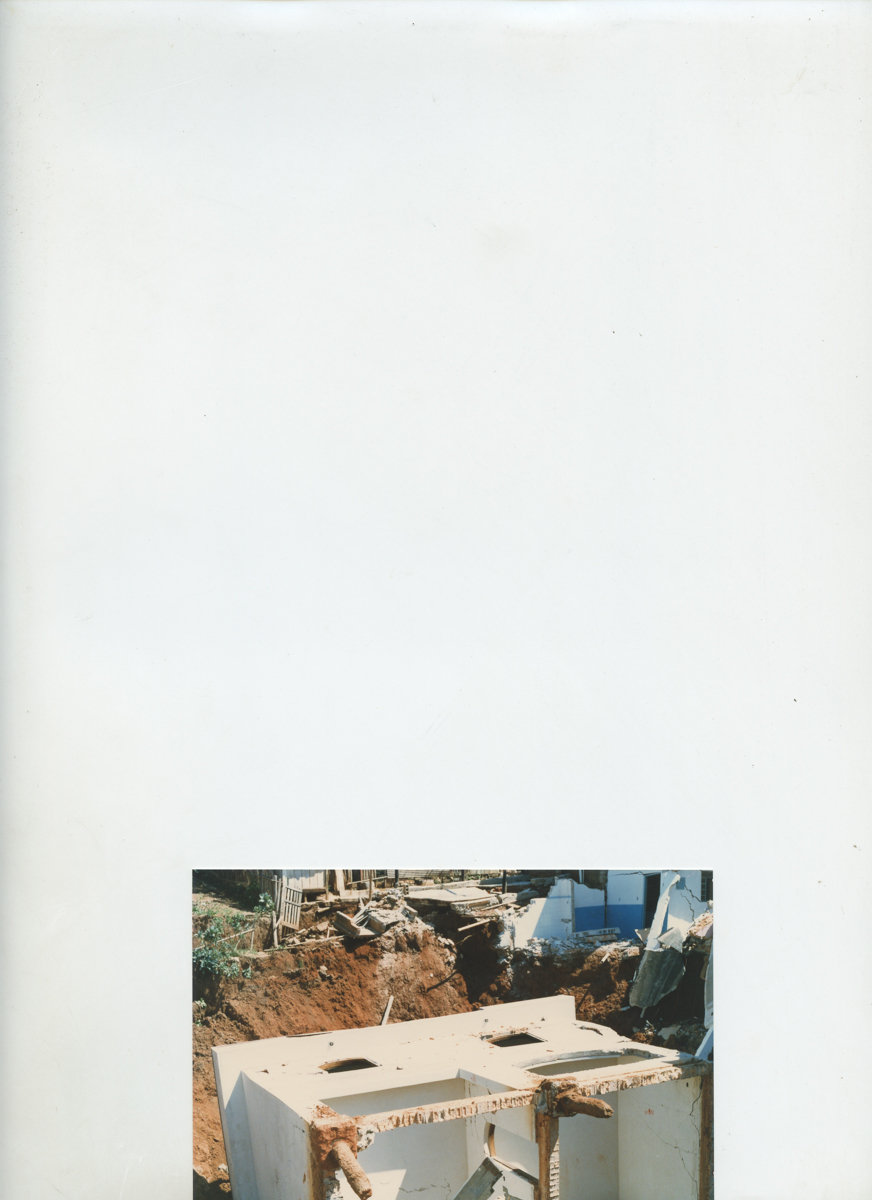 54 FOTOS - *Primeiro quadrante superior – 6 fotos - Foto 1 a 6 – 13x8cm. Coloridas. Fotos de um desmoronamento de casa. Verso das fotos indica: “Buraco de Cajamar – SP. 12/9/86”. *Segundo quadrante superior – 9 fotos - Fotos 7 a 15 – 13x8cm. Coloridas. Fotos do desmoronamento de estrutura civil. Vários ângulos do local. Verso das fotos indica: “Buraco de Cajamar – SP. 12/9/86”. - *Primeiro quadrante inferior – 8 foto Fotos 16 a 23 – 13x8cm. Coloridas. Além das imagens do desmoronamento da estrutura trás duas fotos da população retirando seus pertences. Verso das fotos indica: “Buraco de Cajamar – SP. 12/9/86”. - *Segundo quadrante inferior – 11 fotos Fotos 24 a 34 – 13x8cm. Coloridas. Além das imagens do desmoronamento da estrutura trás duas fotos da população retirando seus pertences. Verso das fotos indica: “Buraco de Cajamar – SP. 12/9/86”.
