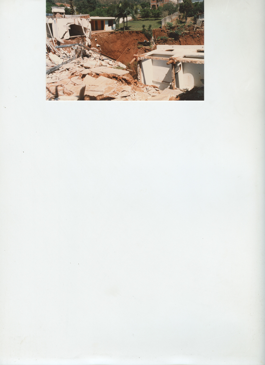 54 FOTOS - *Primeiro quadrante superior – 6 fotos - Foto 1 a 6 – 13x8cm. Coloridas. Fotos de um desmoronamento de casa. Verso das fotos indica: “Buraco de Cajamar – SP. 12/9/86”. *Segundo quadrante superior – 9 fotos - Fotos 7 a 15 – 13x8cm. Coloridas. Fotos do desmoronamento de estrutura civil. Vários ângulos do local. Verso das fotos indica: “Buraco de Cajamar – SP. 12/9/86”. - *Primeiro quadrante inferior – 8 foto Fotos 16 a 23 – 13x8cm. Coloridas. Além das imagens do desmoronamento da estrutura trás duas fotos da população retirando seus pertences. Verso das fotos indica: “Buraco de Cajamar – SP. 12/9/86”. - *Segundo quadrante inferior – 11 fotos Fotos 24 a 34 – 13x8cm. Coloridas. Além das imagens do desmoronamento da estrutura trás duas fotos da população retirando seus pertences. Verso das fotos indica: “Buraco de Cajamar – SP. 12/9/86”.