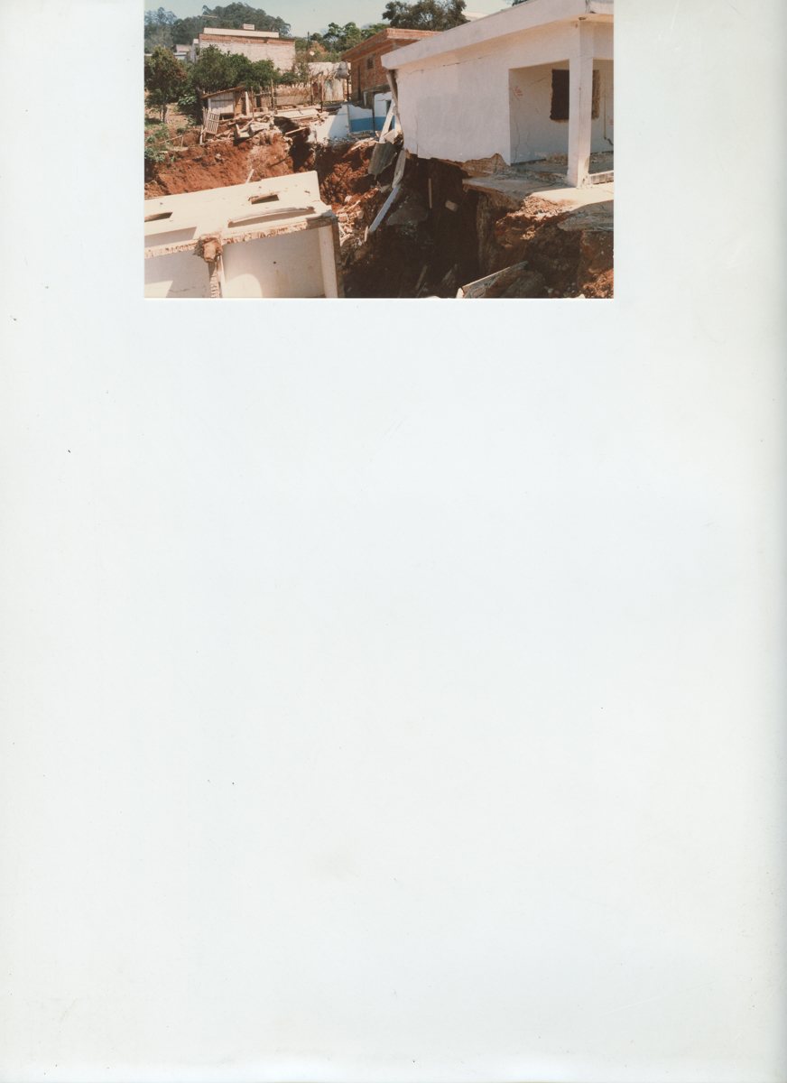 54 FOTOS - *Primeiro quadrante superior – 6 fotos - Foto 1 a 6 – 13x8cm. Coloridas. Fotos de um desmoronamento de casa. Verso das fotos indica: “Buraco de Cajamar – SP. 12/9/86”. *Segundo quadrante superior – 9 fotos - Fotos 7 a 15 – 13x8cm. Coloridas. Fotos do desmoronamento de estrutura civil. Vários ângulos do local. Verso das fotos indica: “Buraco de Cajamar – SP. 12/9/86”. - *Primeiro quadrante inferior – 8 foto Fotos 16 a 23 – 13x8cm. Coloridas. Além das imagens do desmoronamento da estrutura trás duas fotos da população retirando seus pertences. Verso das fotos indica: “Buraco de Cajamar – SP. 12/9/86”. - *Segundo quadrante inferior – 11 fotos Fotos 24 a 34 – 13x8cm. Coloridas. Além das imagens do desmoronamento da estrutura trás duas fotos da população retirando seus pertences. Verso das fotos indica: “Buraco de Cajamar – SP. 12/9/86”.
