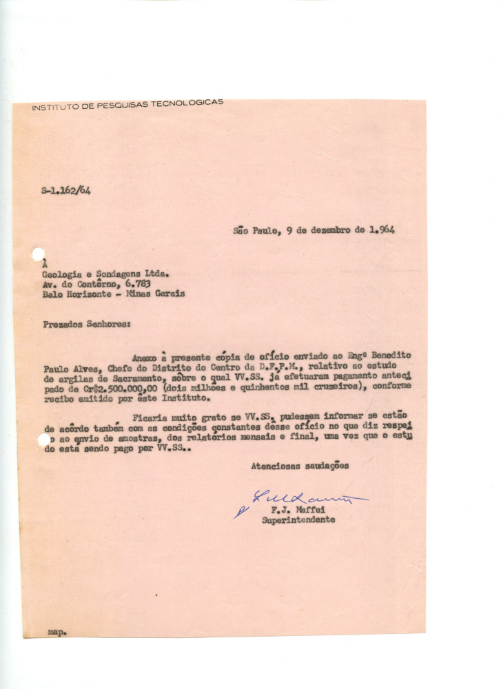 01.001.0013.0147 Baixar Número de registro01.001.0013.0147Conjunto de itens Conteúdo Correspondências diversas trocada entre o IPT e instituições, empresas e particulares. São encontrados pedidos de material, de ensaios químicos e físicos, consultas técnicas, pedidos de estágio, entre outros. GA a GI Grupo Memória Institucional Subgrupo Memória da ciência Data __/__/1934 - __/__/1967 Quantidade de documentos 282 documentos, 322 folhas Procedência Memória Histórica IPT Item anterior01.001.0013.0146 Próximo item01.001.0013.0148