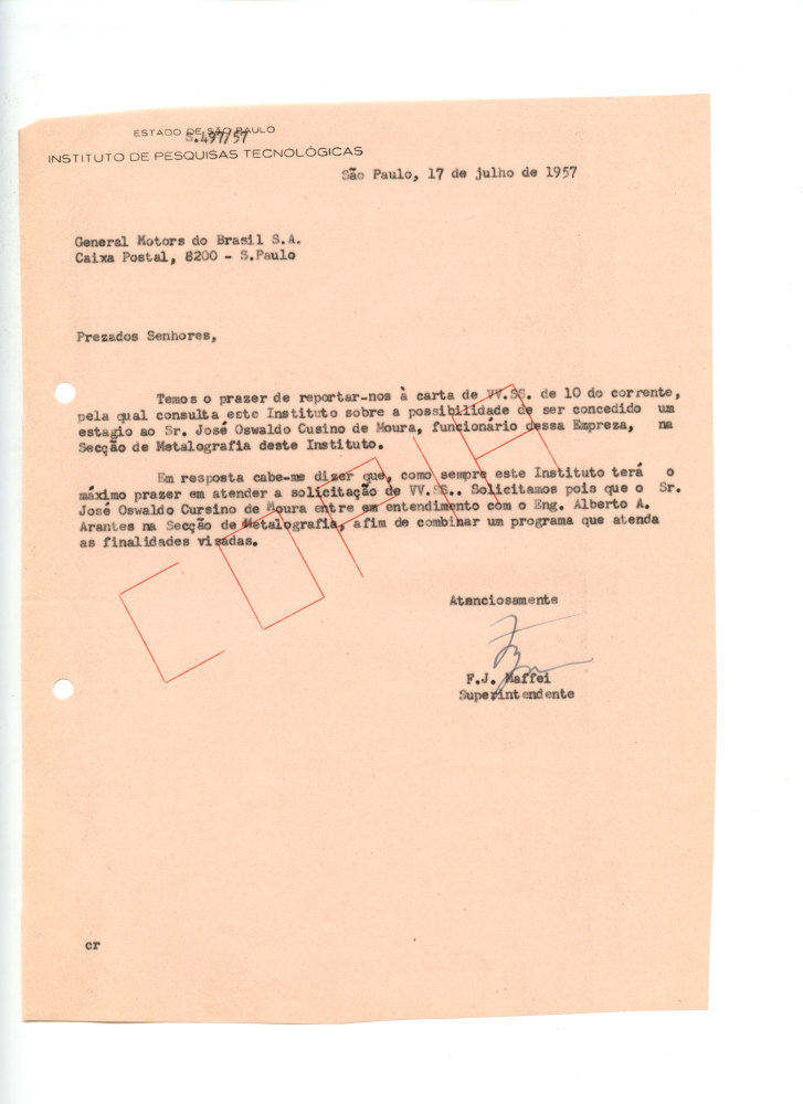 01.001.0013.0202 Baixar Número de registro01.001.0013.0202Conjunto de itens Conteúdo Correspondências diversas trocada entre o IPT e instituições, empresas e particulares. São encontrados pedidos de material, de ensaios químicos e físicos, consultas técnicas, pedidos de estágio, entre outros. GA a GI Grupo Memória Institucional Subgrupo Memória da ciência Data __/__/1934 - __/__/1967 Quantidade de documentos 282 documentos, 322 folhas Procedência Memória Histórica IPT Item anterior01.001.0013.0201 Próximo item01.001.0013.0203