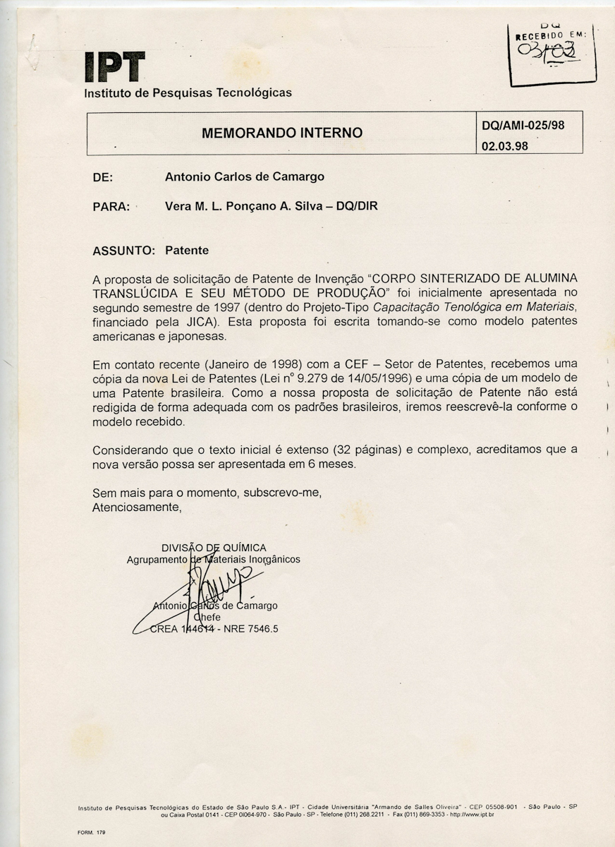 Correspondências do comitê da JICA (fax, cartas, memorandos, minutas, circular), atas de reuniões, relatórios de projetos e atividades desenvolvidas pelo comitê. Presidente/Diretor Superintendente: Fracisco de Assis Souza Dantas; Vice-Presidente/Coordenador da Divisão de Tecnologia de Transportes: Toshi-Ichi Tachibana; Secretária Executiva: Mari Tomita Katayama; Membros: Amantino Ramos de Freitas, Izabel Margarida Geve, Saburo Ikeda, Sussumo Niyama e Paulo Affonso Doin; Instruções normativas quanto a de recepção pelo IPT de um especialista técnico, enviado através da JICA, que não se encontrava vinculada a nenhum projeto custeado pela JICA; Roteiro da palestra para o simpósio Cooperação Técnica: um caminho para a harmonia da humanidade, palestra "Melhorias obtidas através de projetos para o desenvolvimento de tecnologias industriais e temas para futuras considerações"