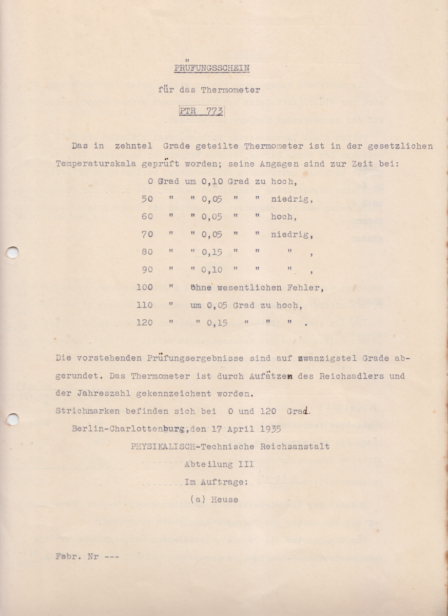 01.001.0044.0020_28129 Baixar 01.001.0044.0020_28229 Baixar 01.001.0044.0020_28129 01.001.0044.0020_28229 Número de registro01.001.0044.0020Conjunto de itens Conteúdo Normas de certificação para termômetros de vidro com tabela de termômetros e lista de termômetros que foram recebidos no IPT. Certificados de exame para termômetros PTR (em alemão) Grupo Metrologia Subgrupo Metrologia Mecânica, Elétrica e de Fluídos Data __/__/1945 - __/__/1962 Quantidade de documentos 22 documentos, 27 folhas Procedência Memória Histórica IPT Item anterior01.001.0044.0019 Próximo item01.001.0044.0021