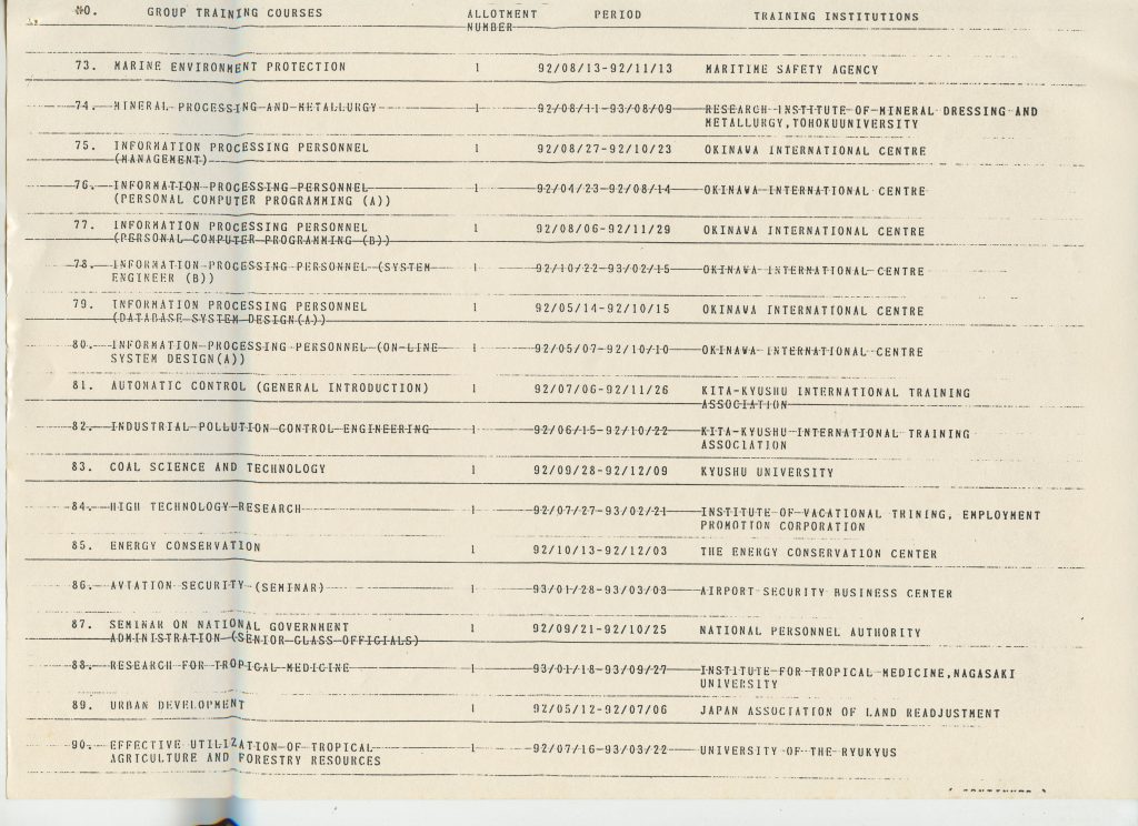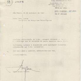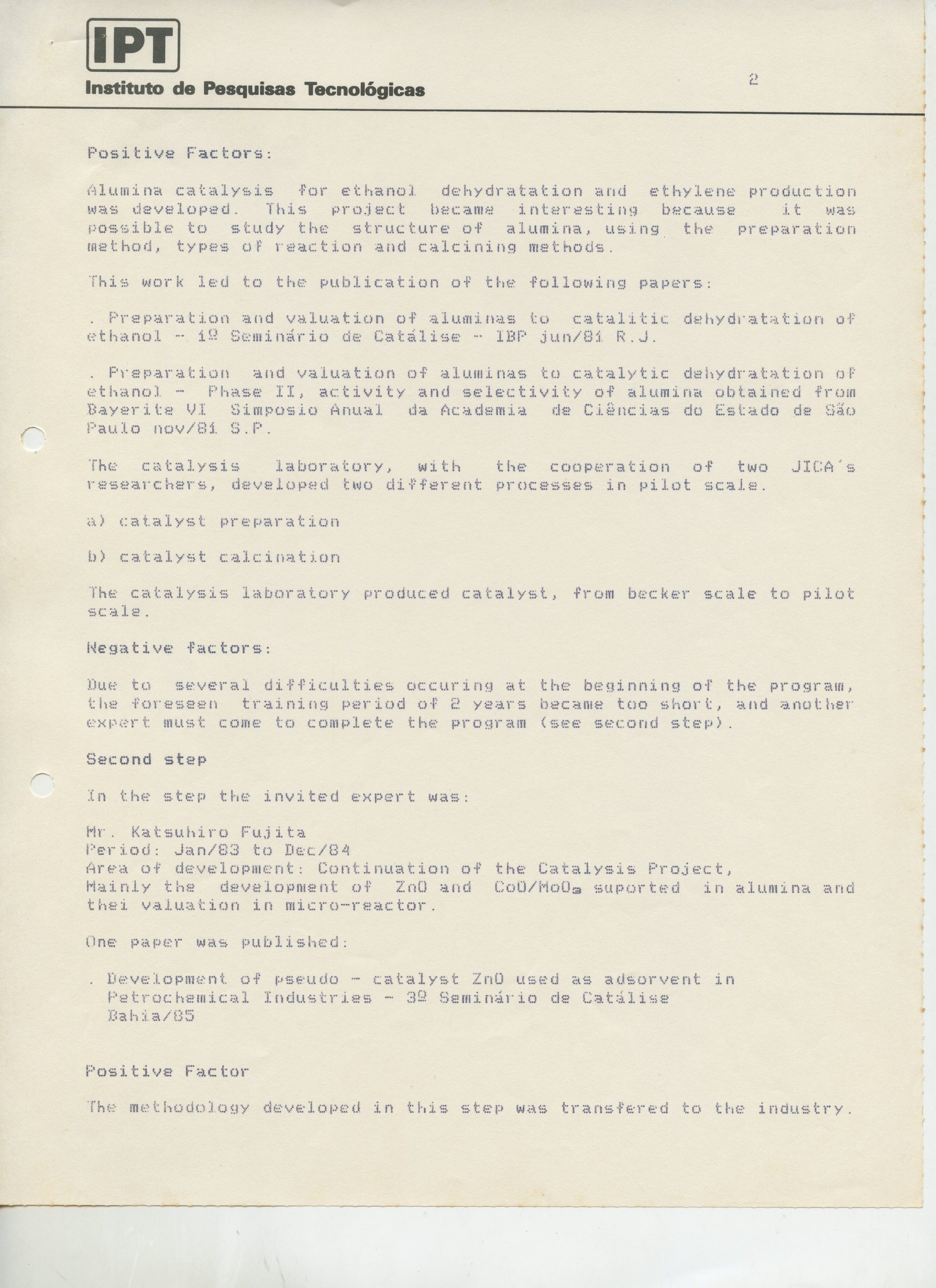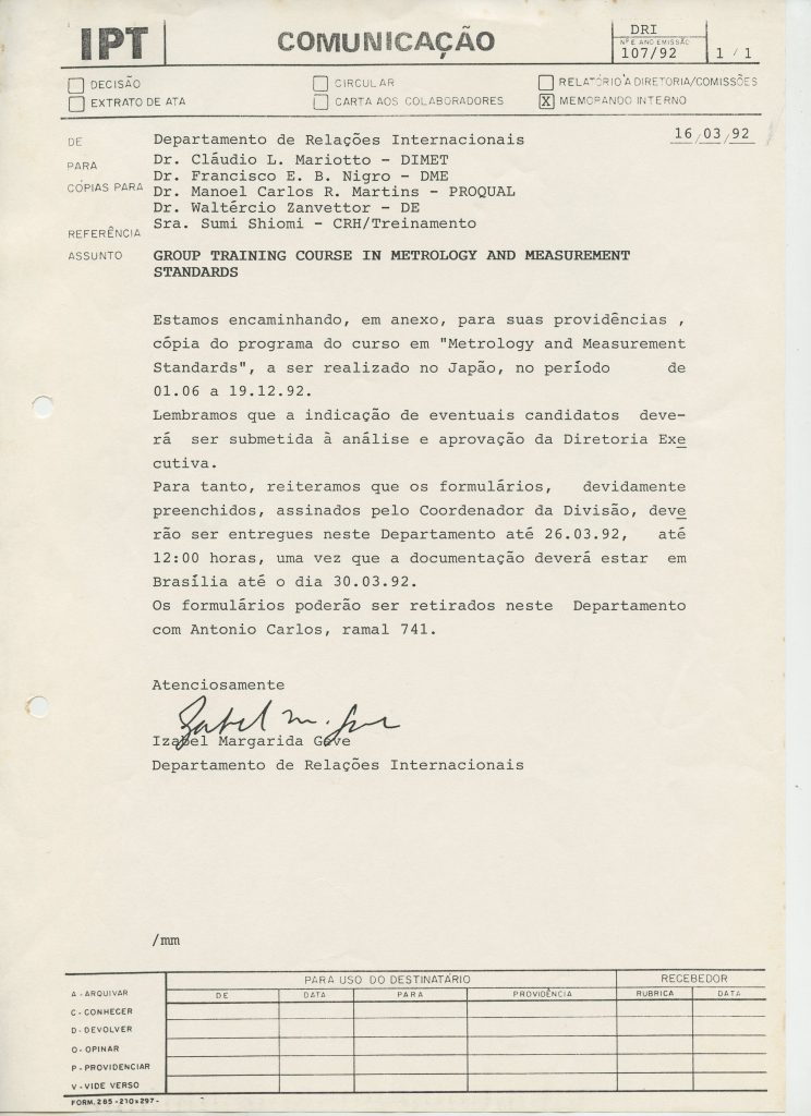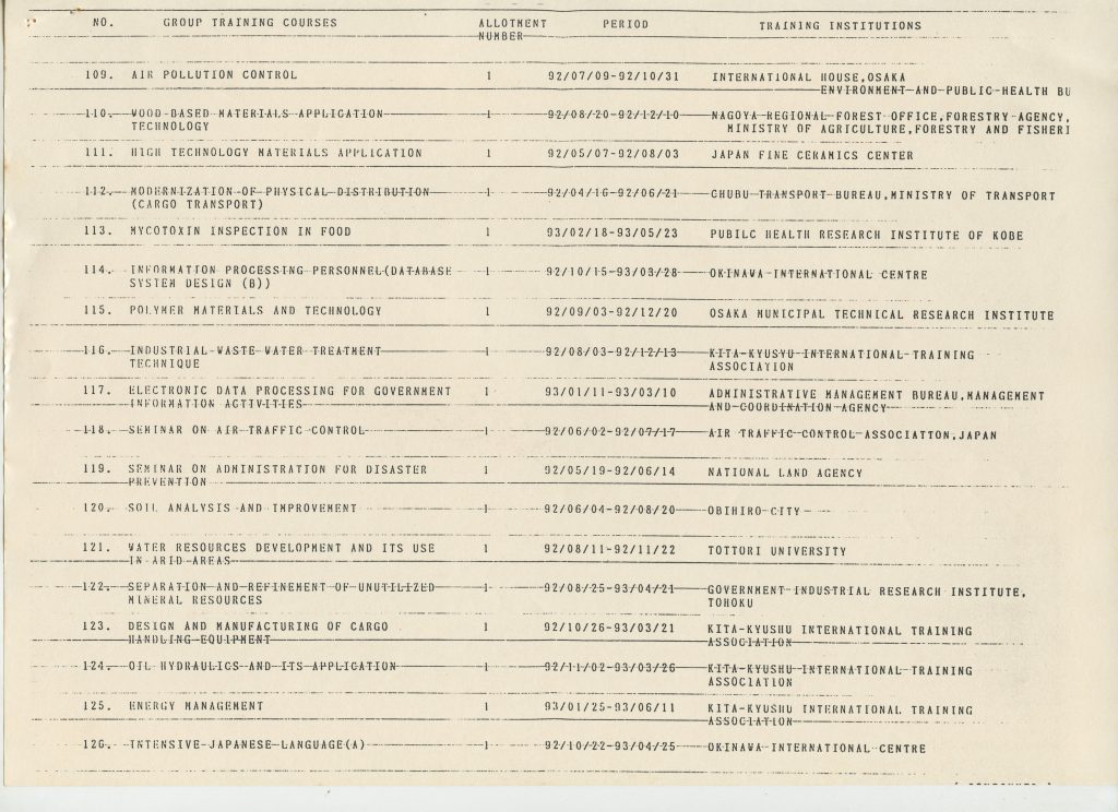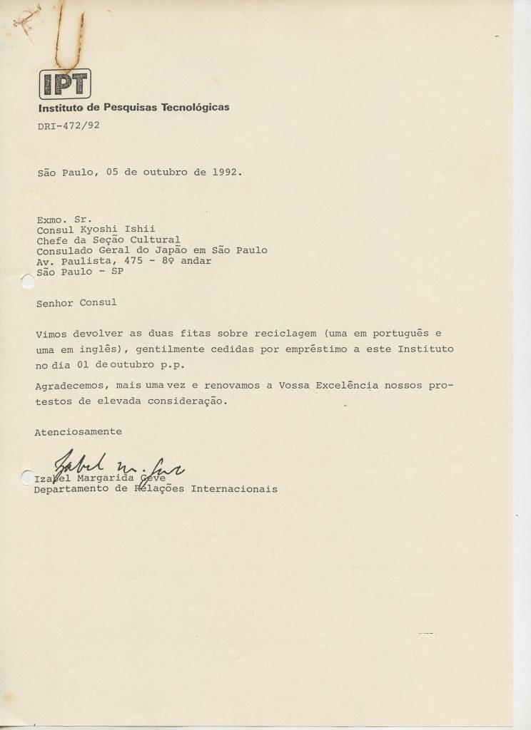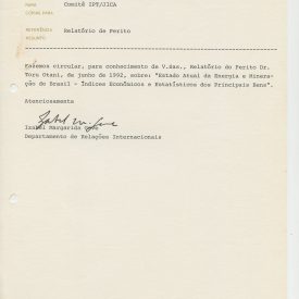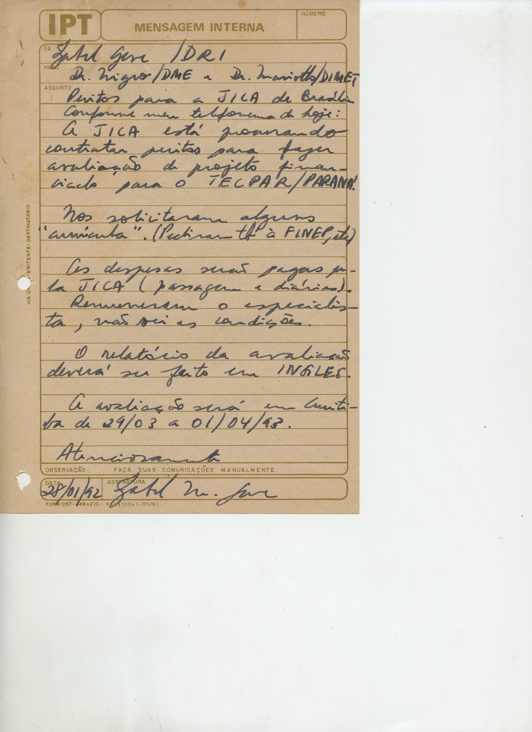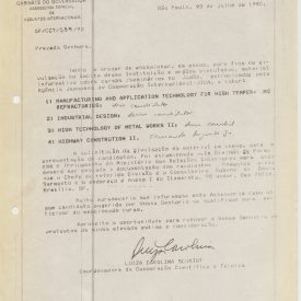 Correspondências gerais da JICA (fax, cartas, memorandos) sobre o comitê, seminários, cursos, relatórios, treinamentos e avaliações. Documentos sem relação e de assuntos diversos: bilhete solicitando doação a empresa Asahi Chemical Industry Co. Ltd., requisição de desembaraço aduaneiro de materiais e equipamentos, bilhete contendo telefone e endereço do Conselheiro Rubens de Souza Sarmento, folheto da campanha do agasalho, cópia de cartão de visita, e cartão de sugestão.