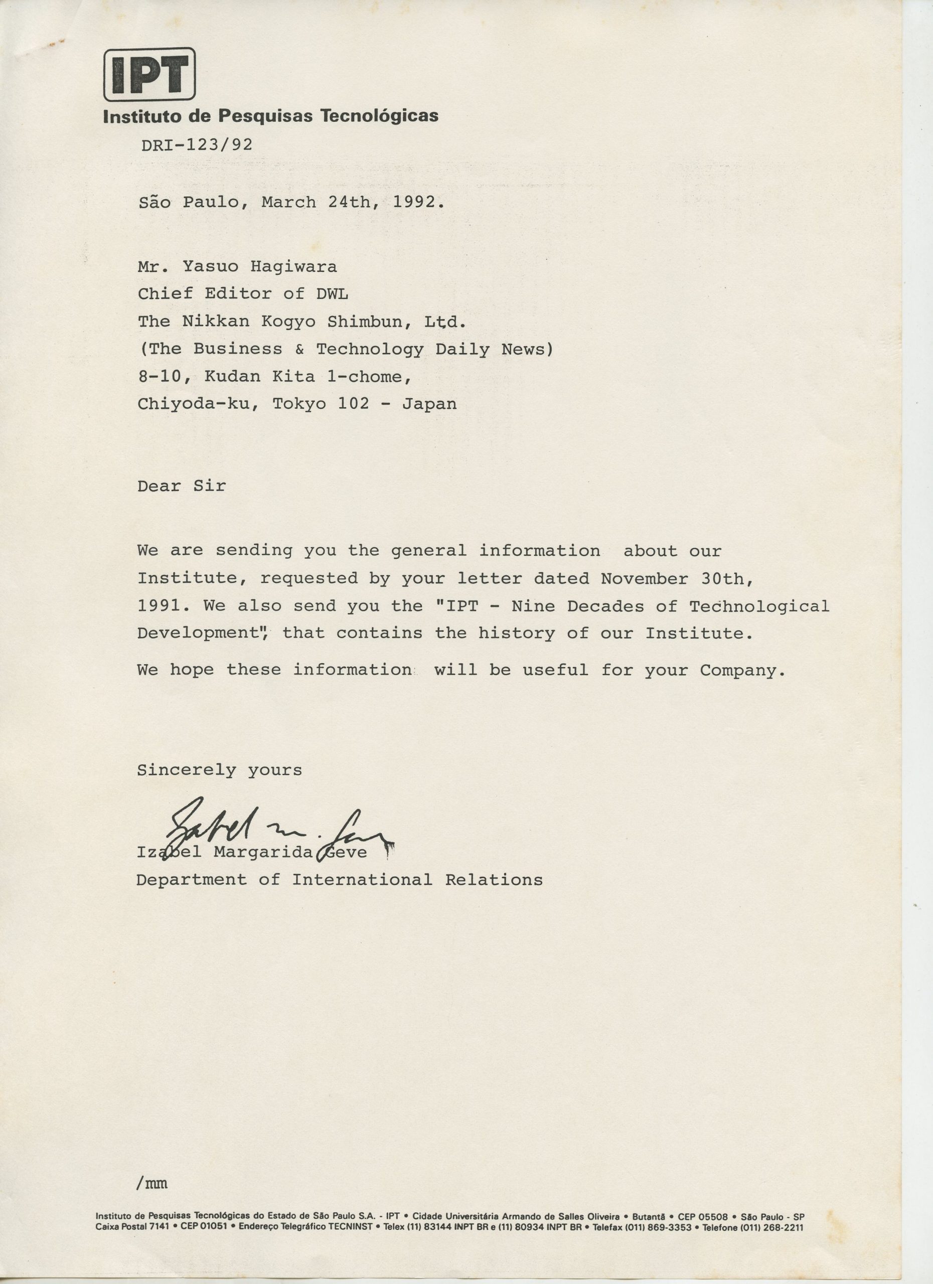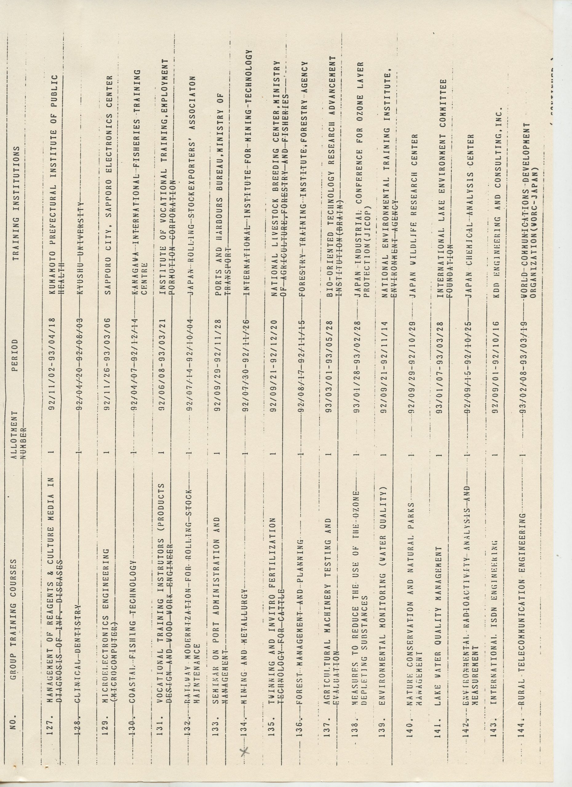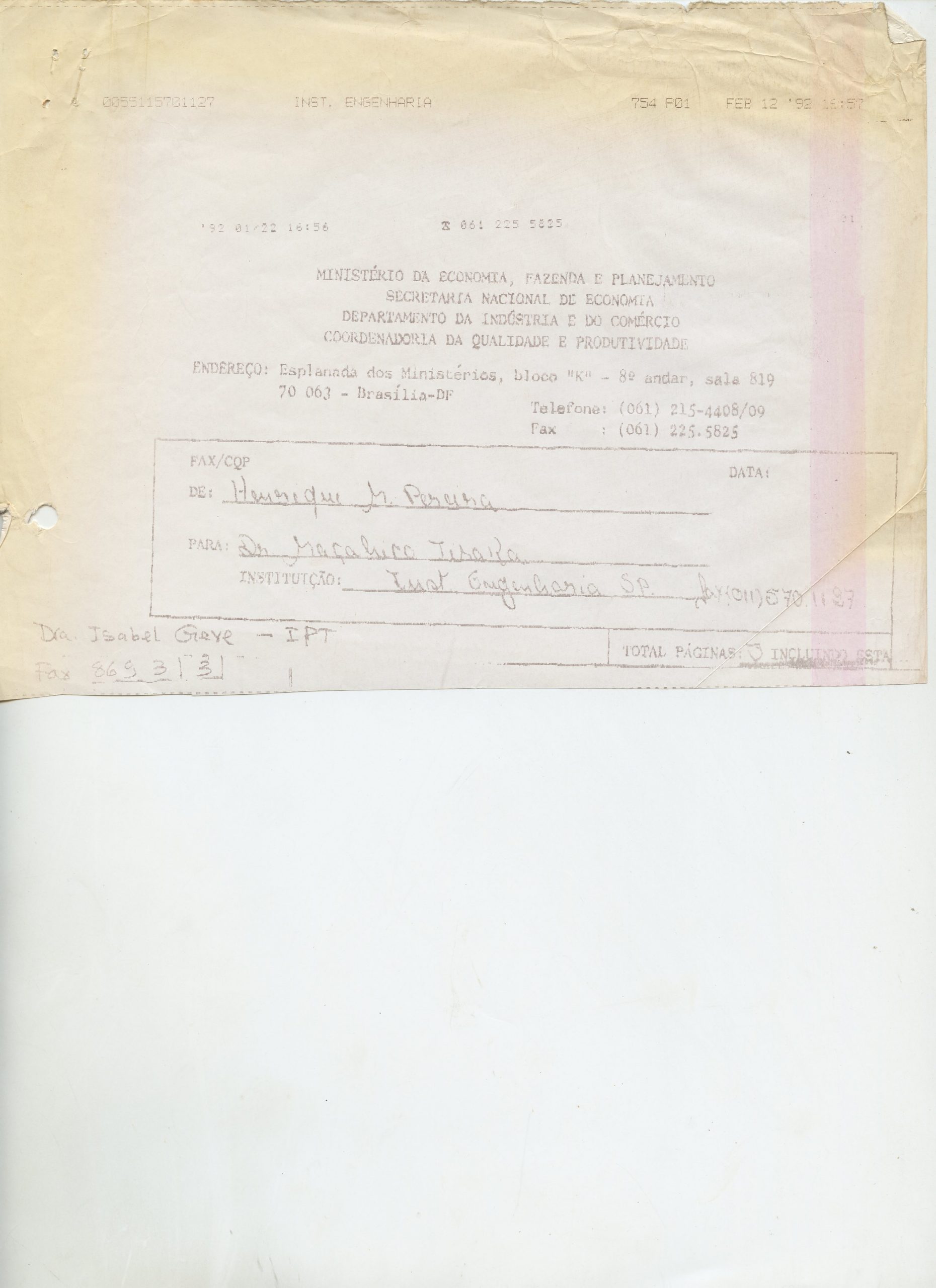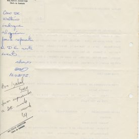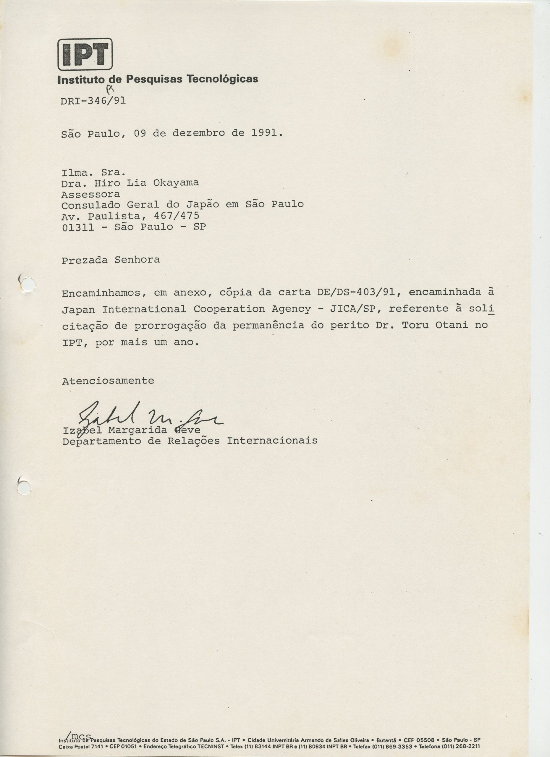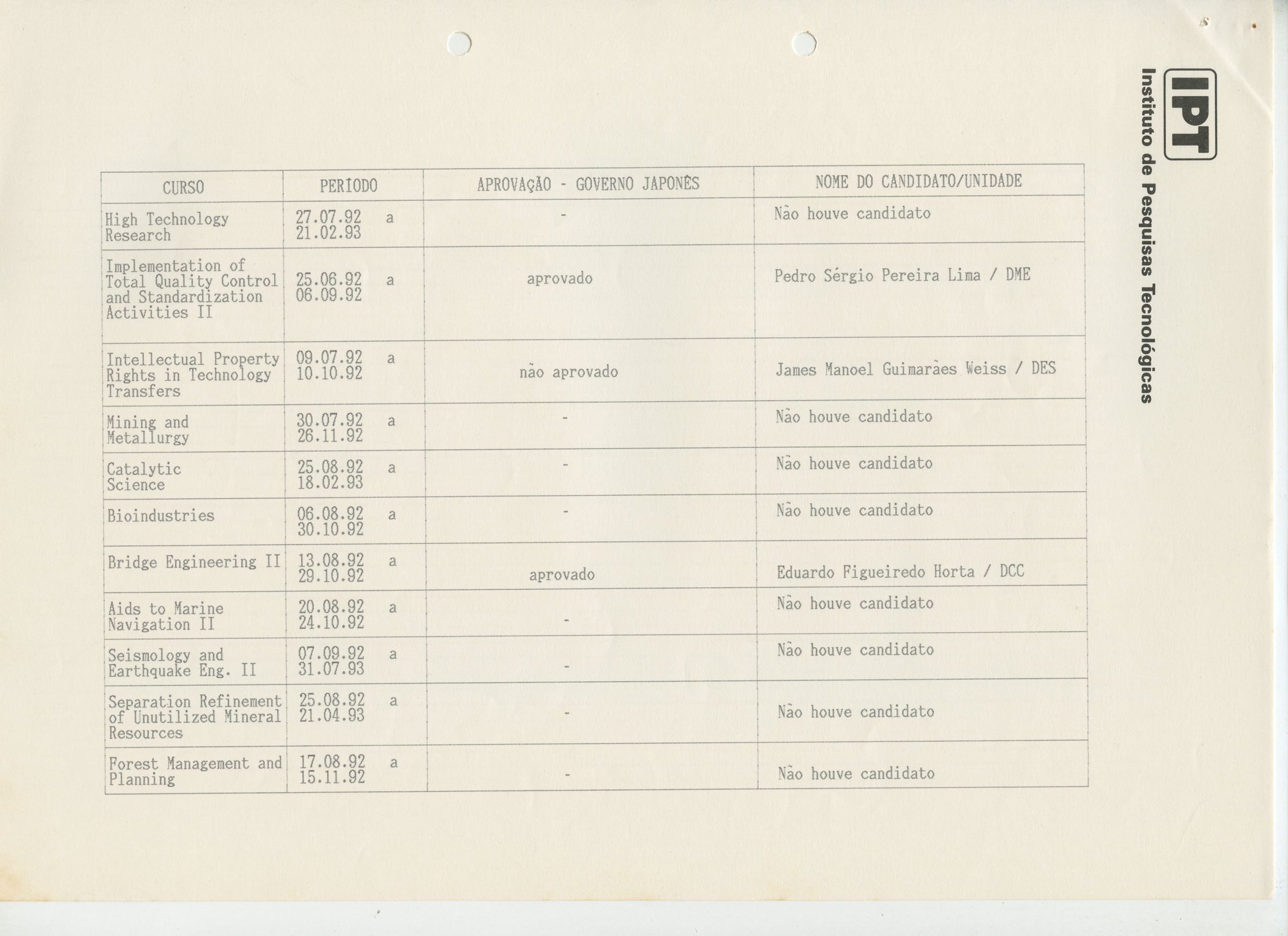 Correspondências gerais da JICA (fax, cartas, memorandos) sobre o comitê, seminários, cursos, relatórios, treinamentos e avaliações. Documentos sem relação e de assuntos diversos: bilhete solicitando doação a empresa Asahi Chemical Industry Co. Ltd., requisição de desembaraço aduaneiro de materiais e equipamentos, bilhete contendo telefone e endereço do Conselheiro Rubens de Souza Sarmento, folheto da campanha do agasalho, cópia de cartão de visita, e cartão de sugestão.