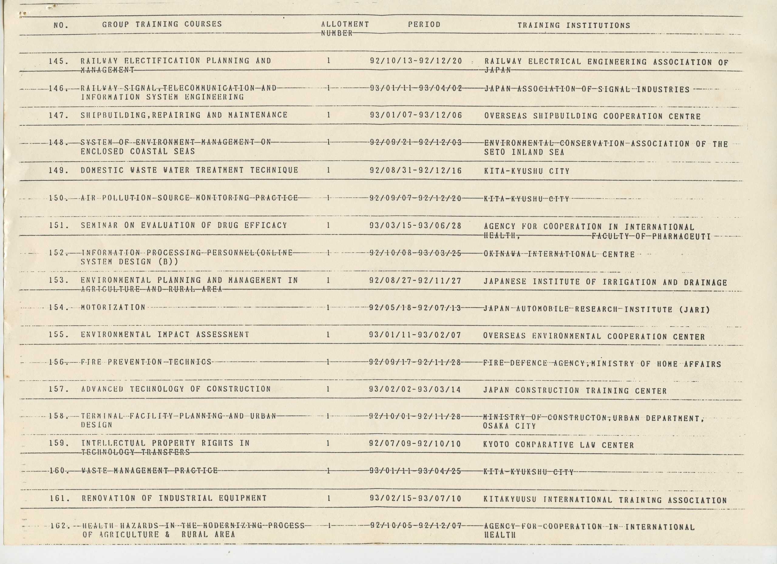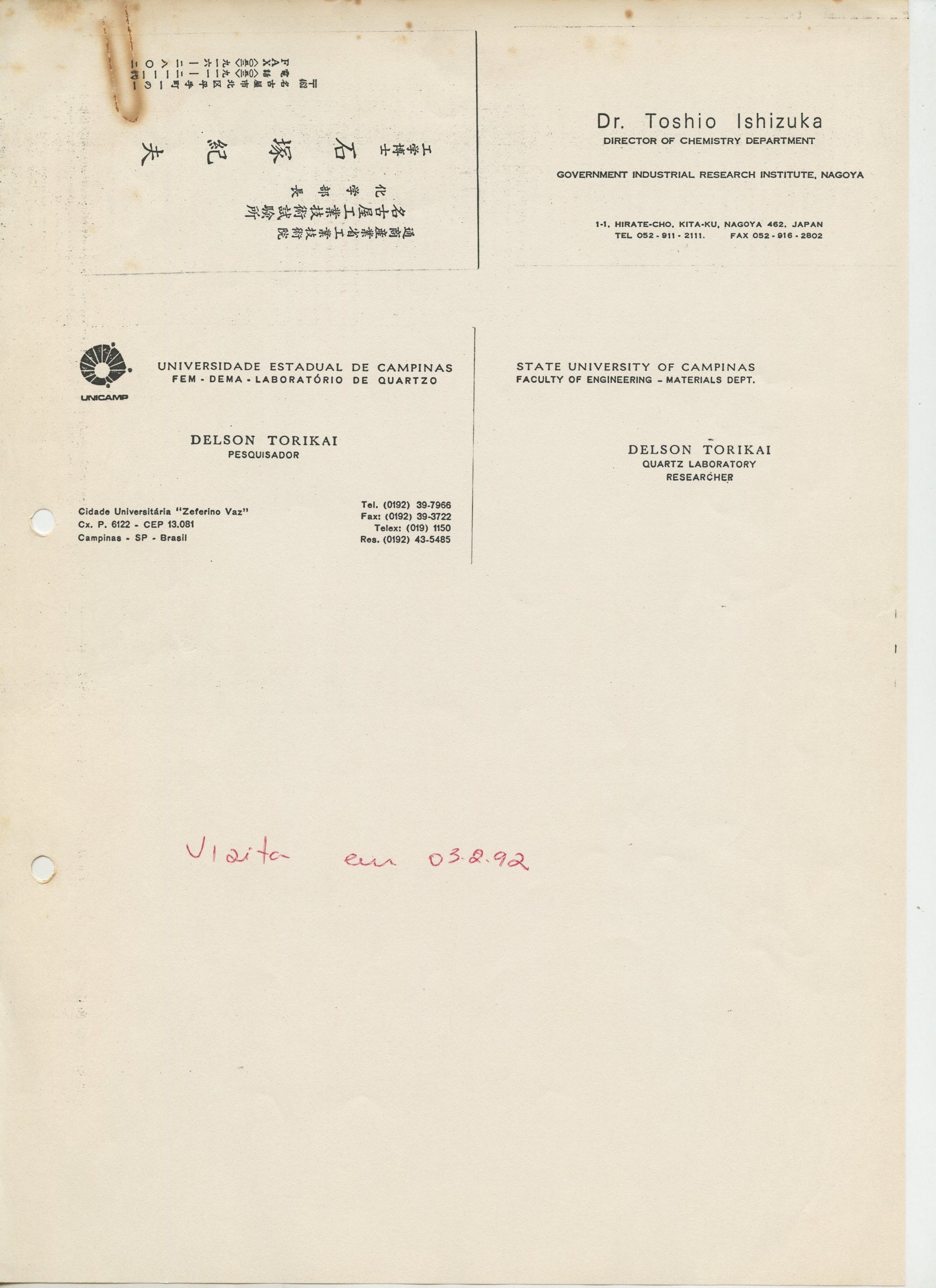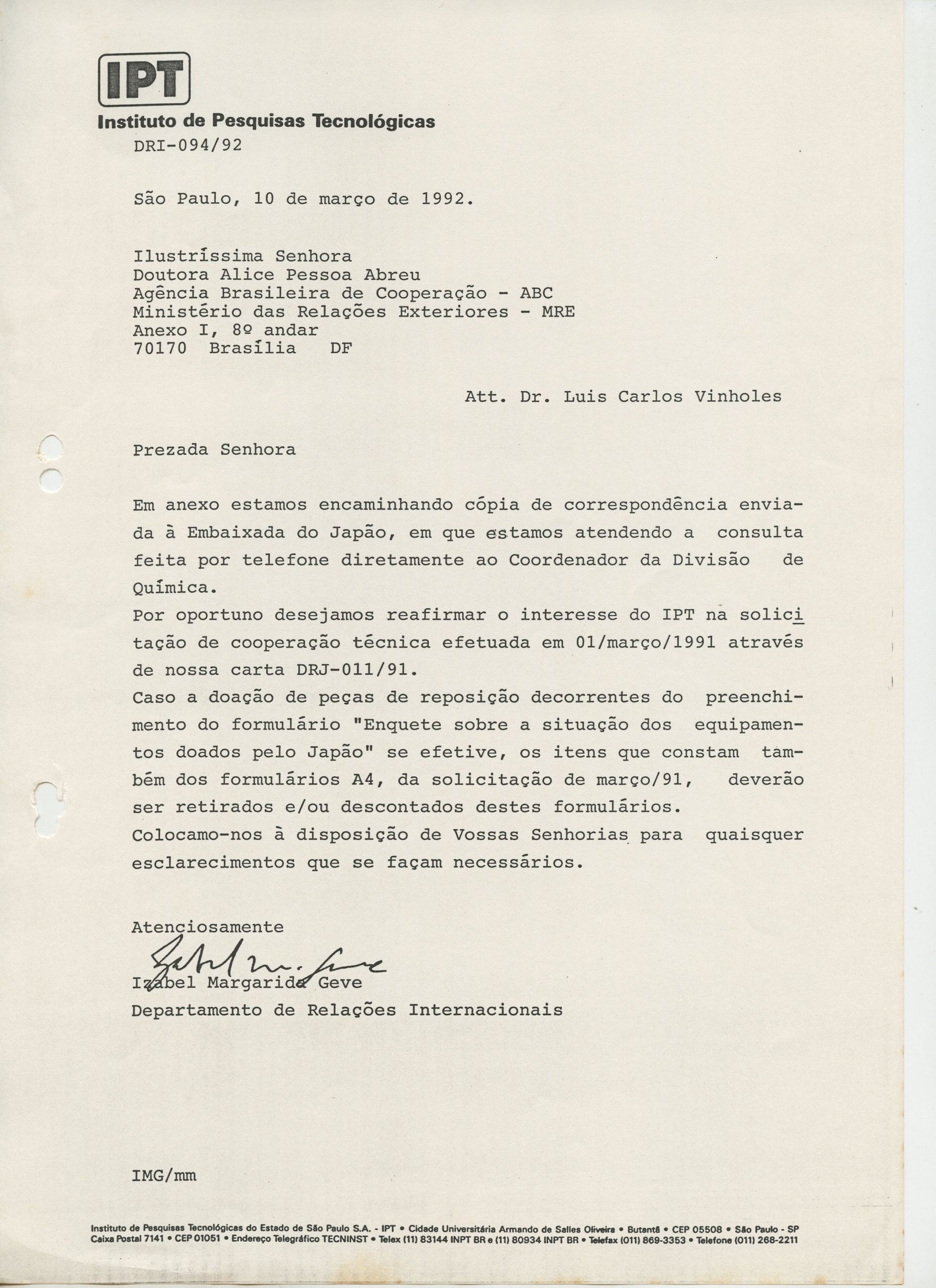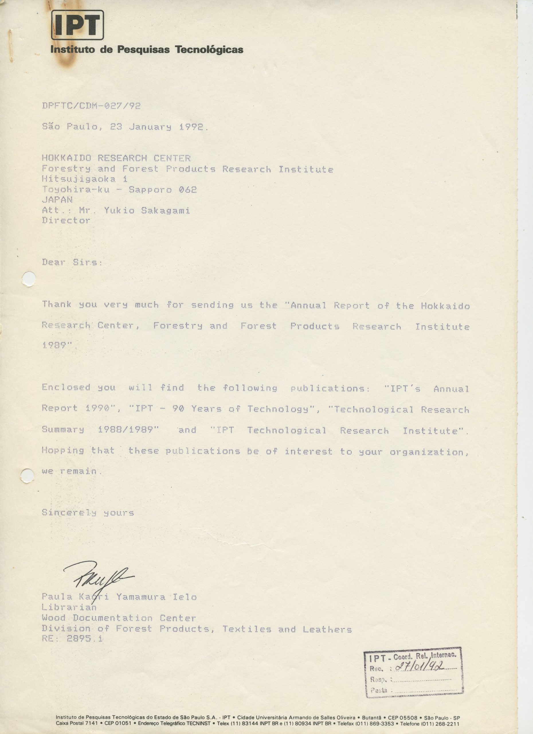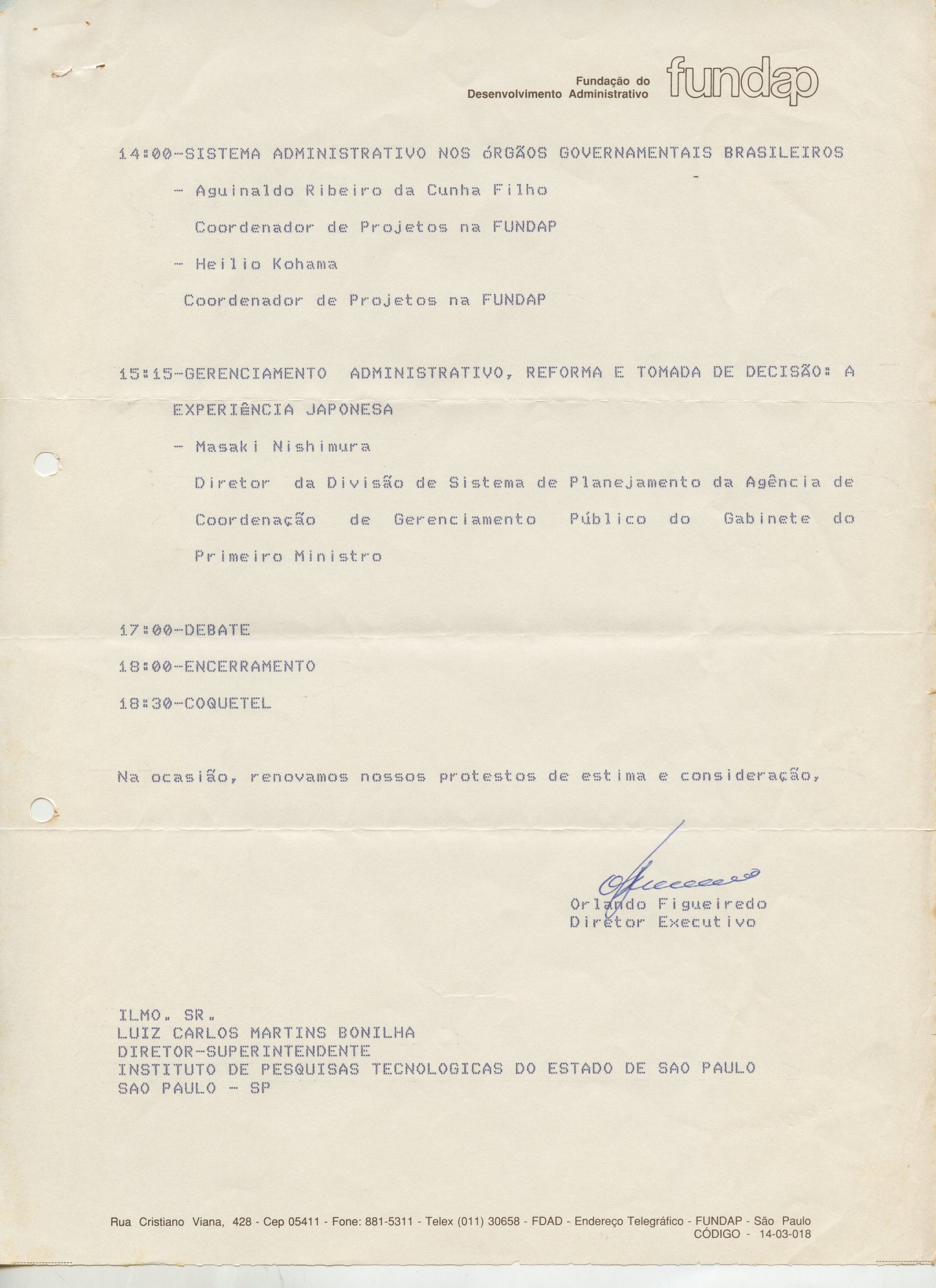 Correspondências gerais da JICA (fax, cartas, memorandos) sobre o comitê, seminários, cursos, relatórios, treinamentos e avaliações. Documentos sem relação e de assuntos diversos: bilhete solicitando doação a empresa Asahi Chemical Industry Co. Ltd., requisição de desembaraço aduaneiro de materiais e equipamentos, bilhete contendo telefone e endereço do Conselheiro Rubens de Souza Sarmento, folheto da campanha do agasalho, cópia de cartão de visita, e cartão de sugestão.